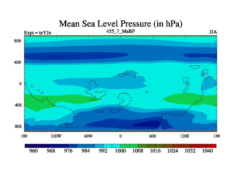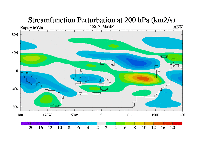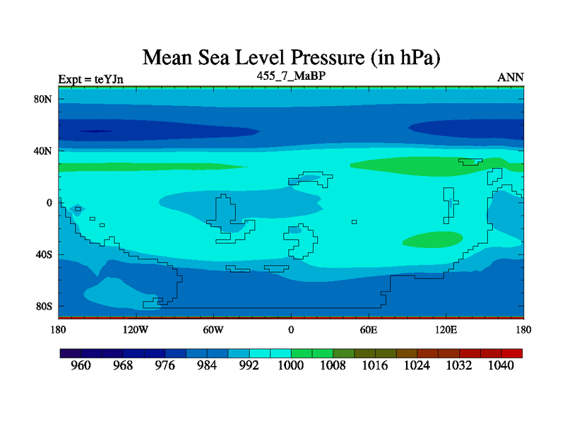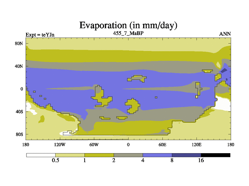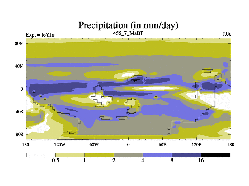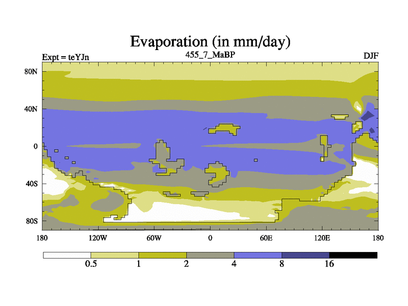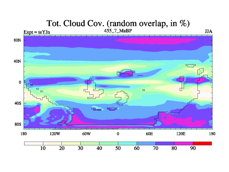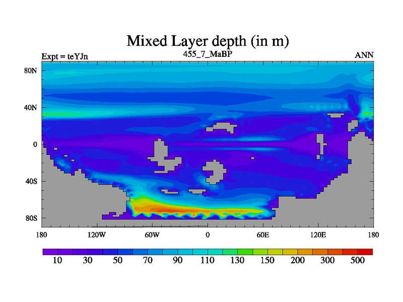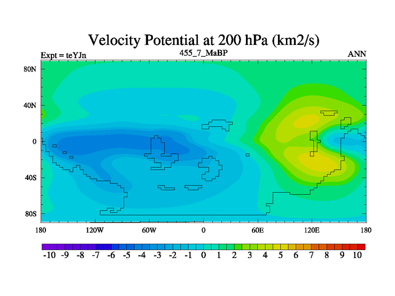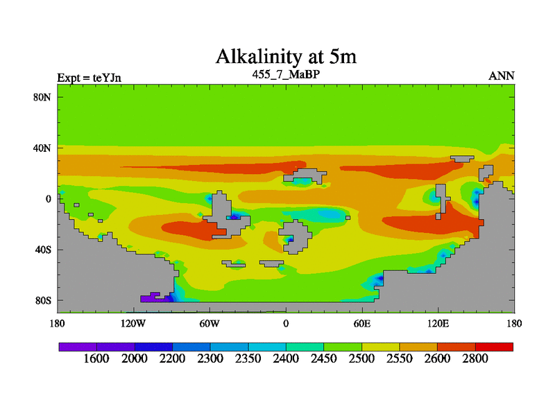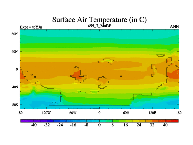 This is the 455.7 Ma simulation using the Scotese palaeogeographies and revised CCN etc. As teyfa3 but corrected orography problem over Antartartica. Now includes ocean biogeochemistry