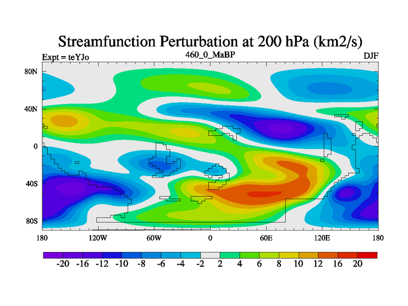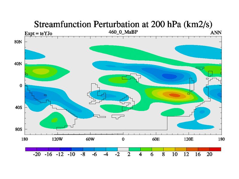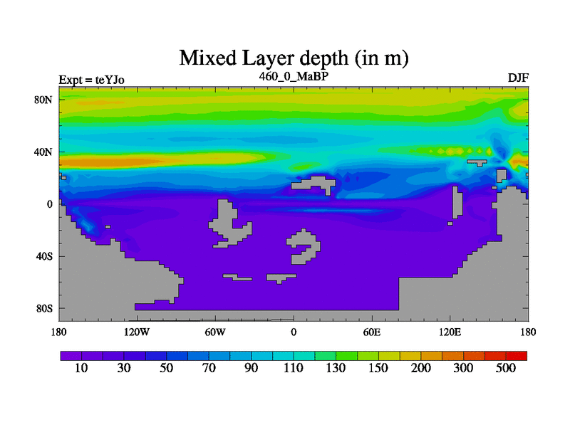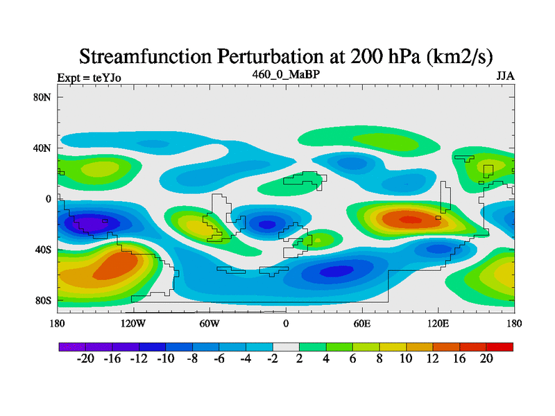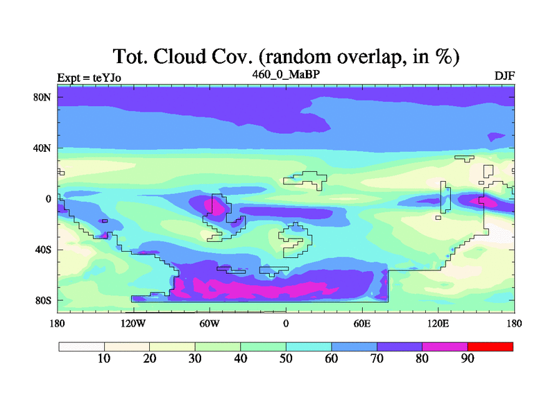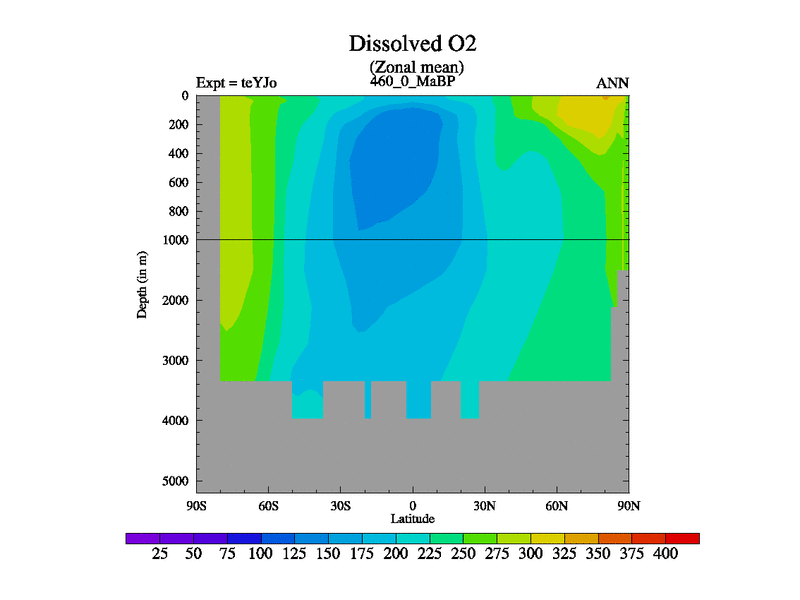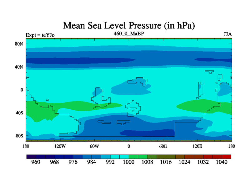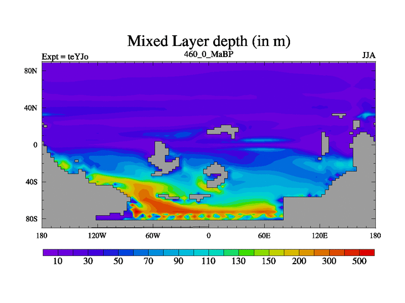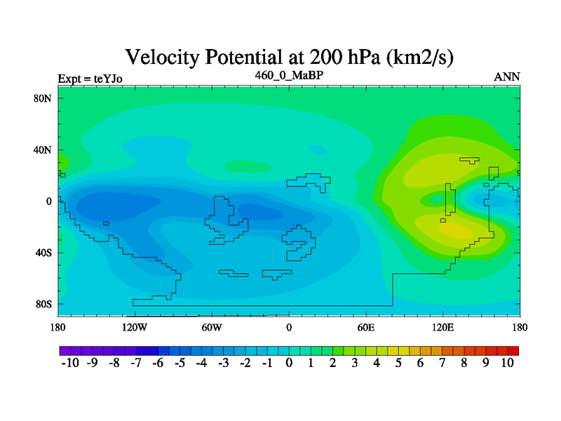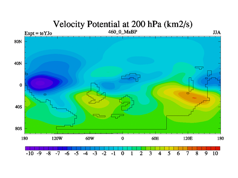 This is the 460.0 Ma simulation using the Scotese palaeogeographies and revised CCN etc. As teyfa3 but corrected orography problem over Antartartica. Now includes ocean biogeochemistry