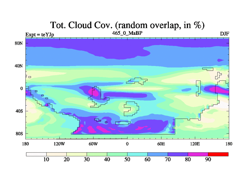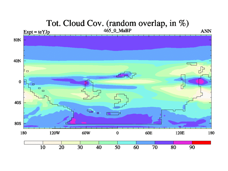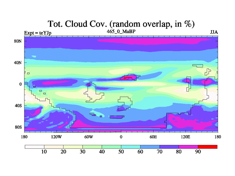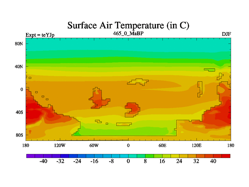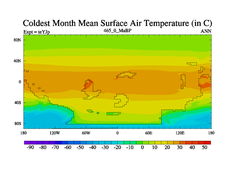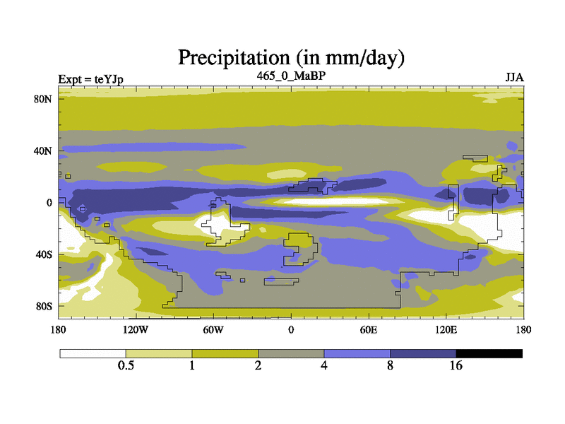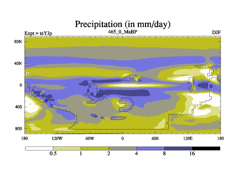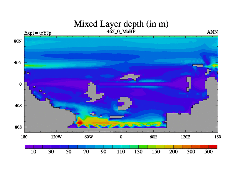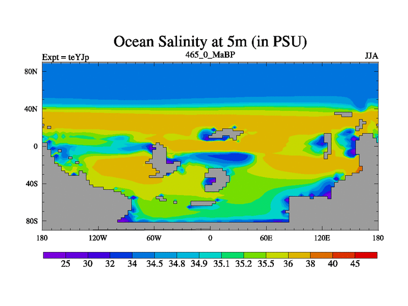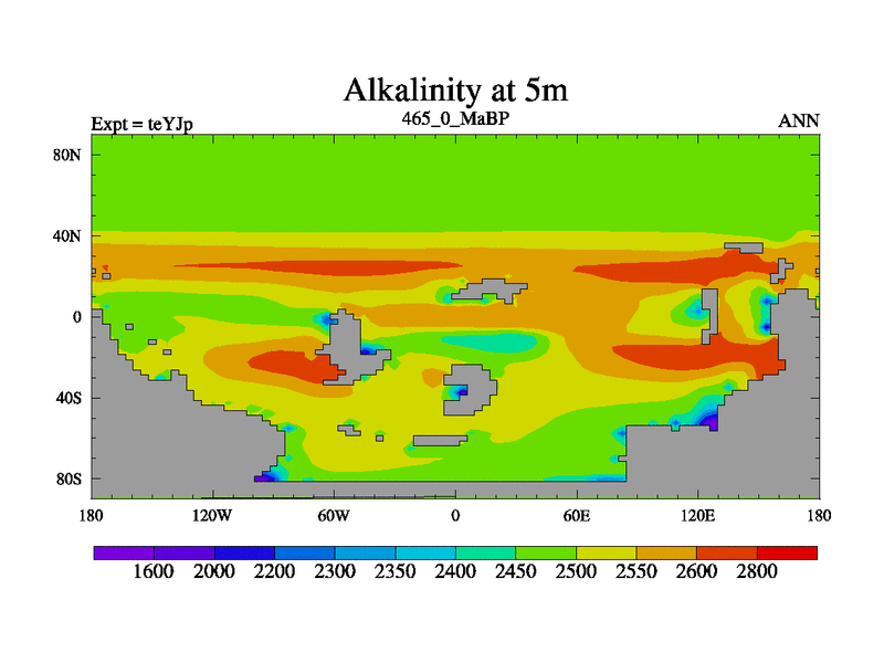 This is the 465.0 Ma simulation using the Scotese palaeogeographies and revised CCN etc. As teyfa3 but corrected orography problem over Antartartica. Now includes ocean biogeochemistry