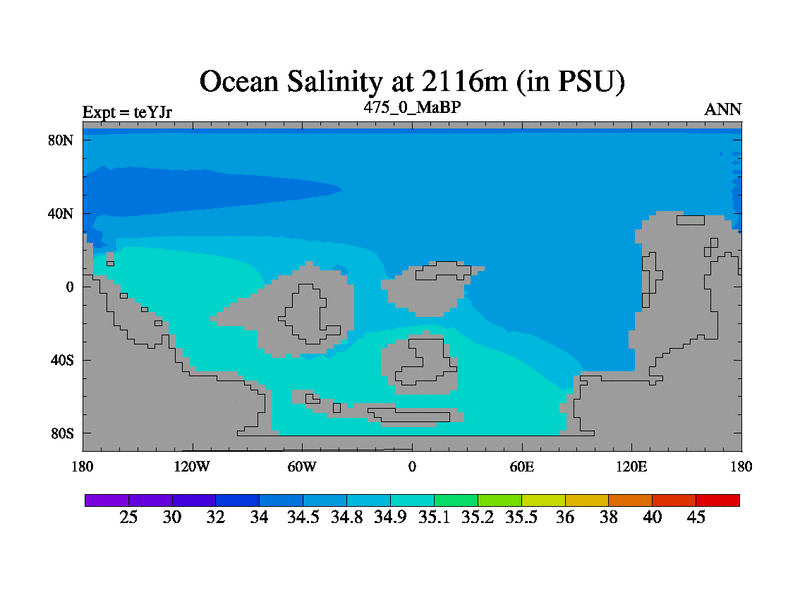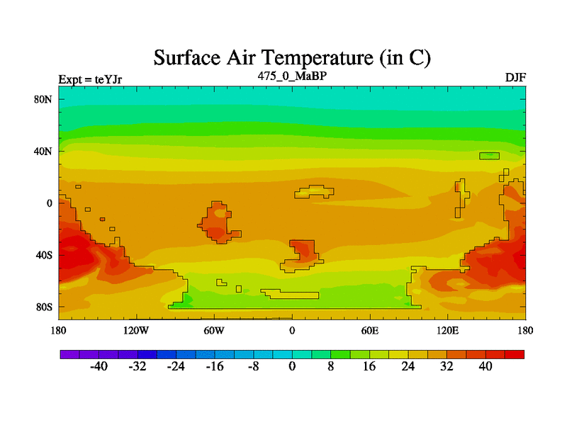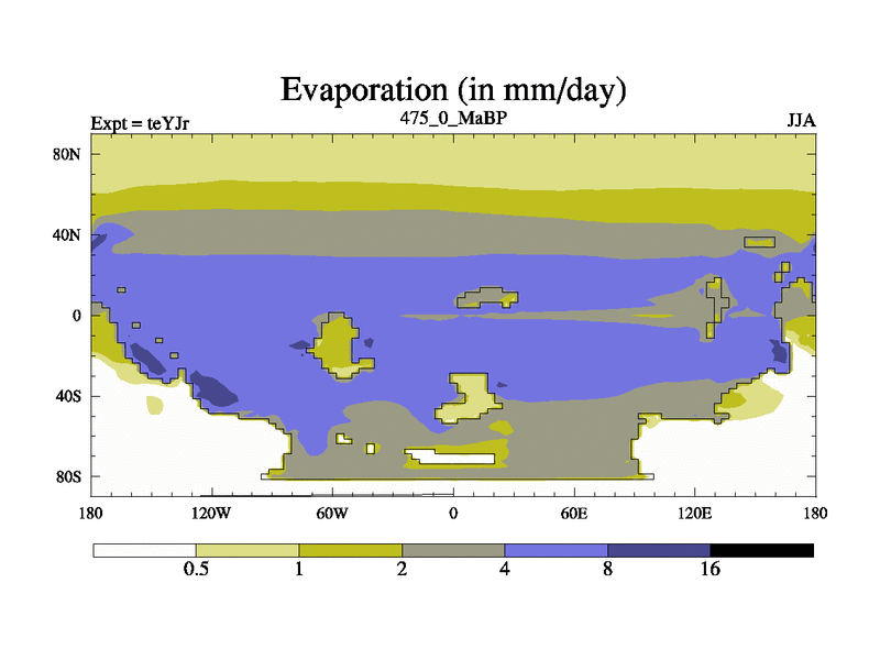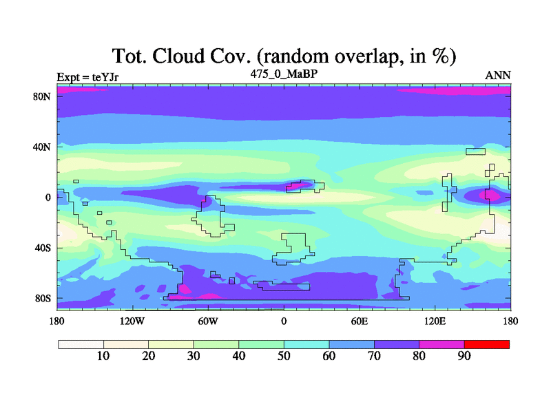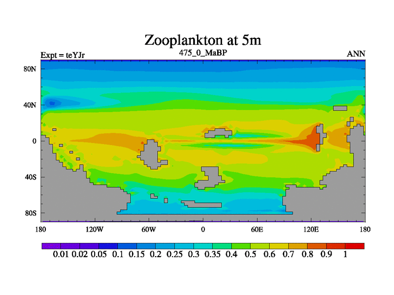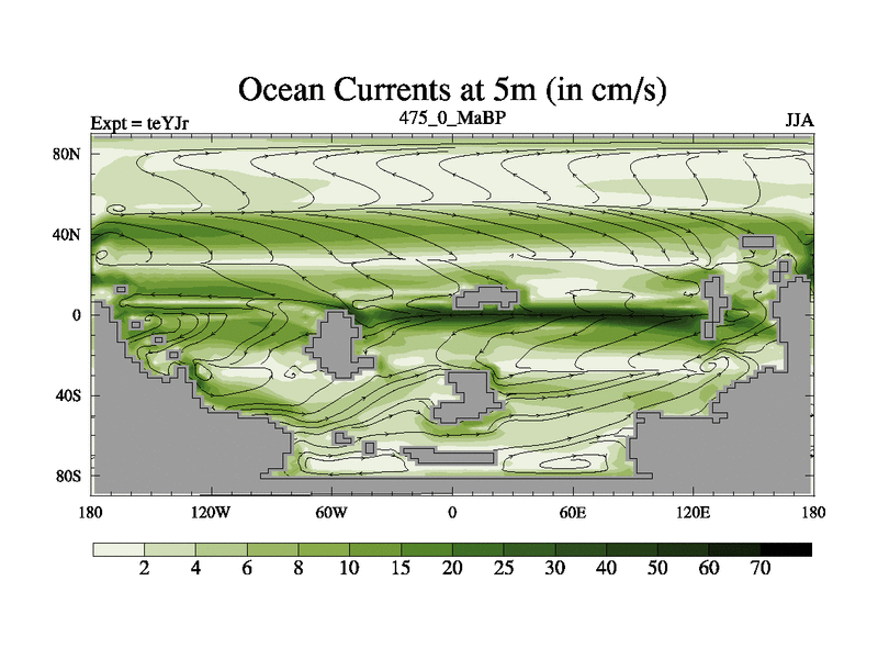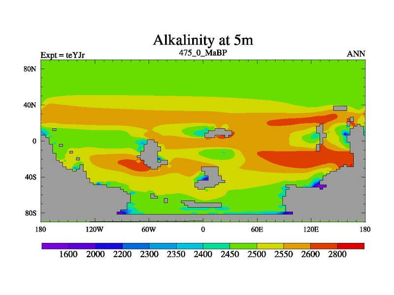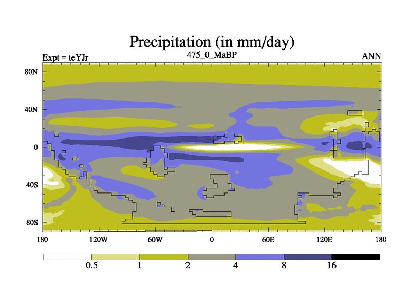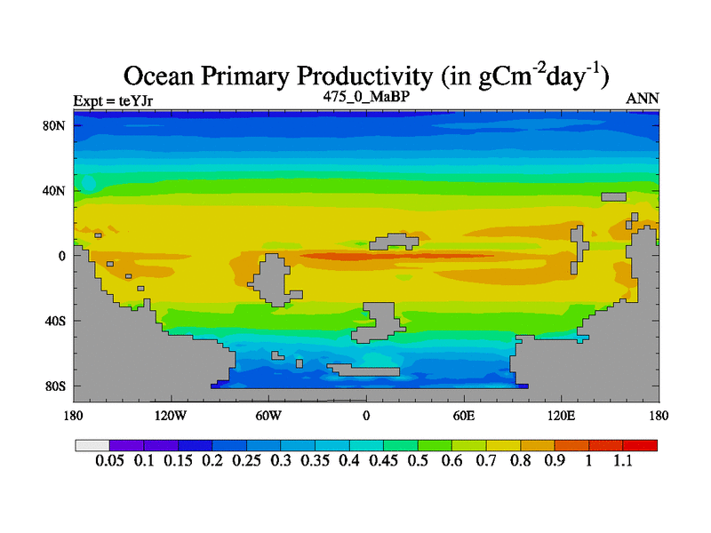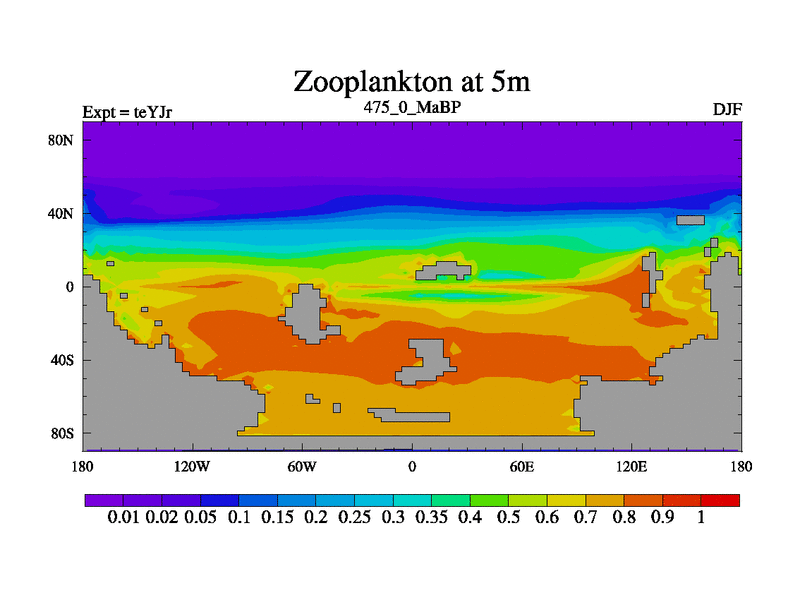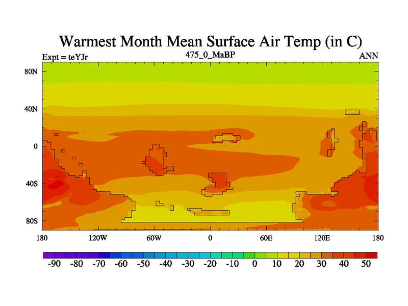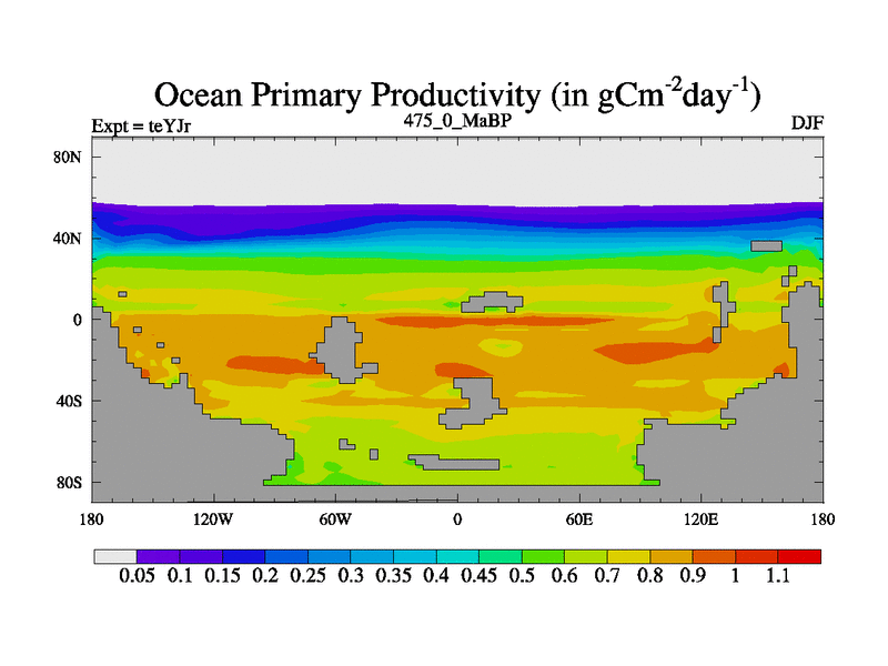 This is the 475.0 Ma simulation using the Scotese palaeogeographies and revised CCN etc. As teyfa3 but corrected orography problem over Antartartica. Now includes ocean biogeochemistry