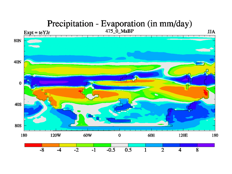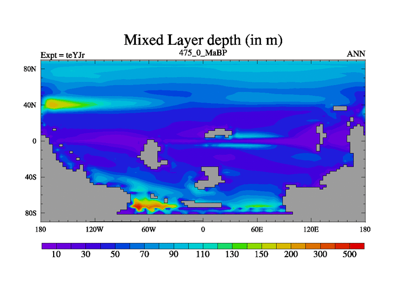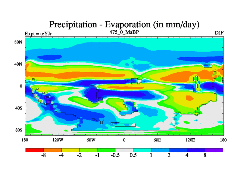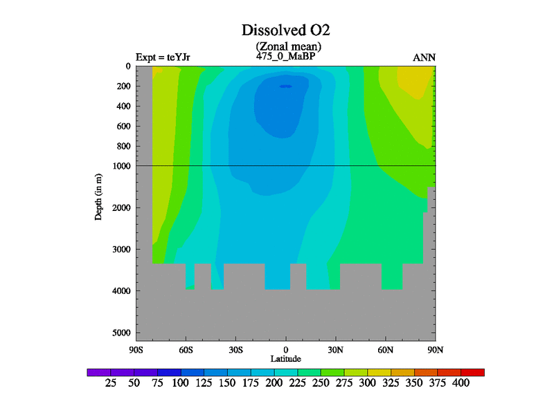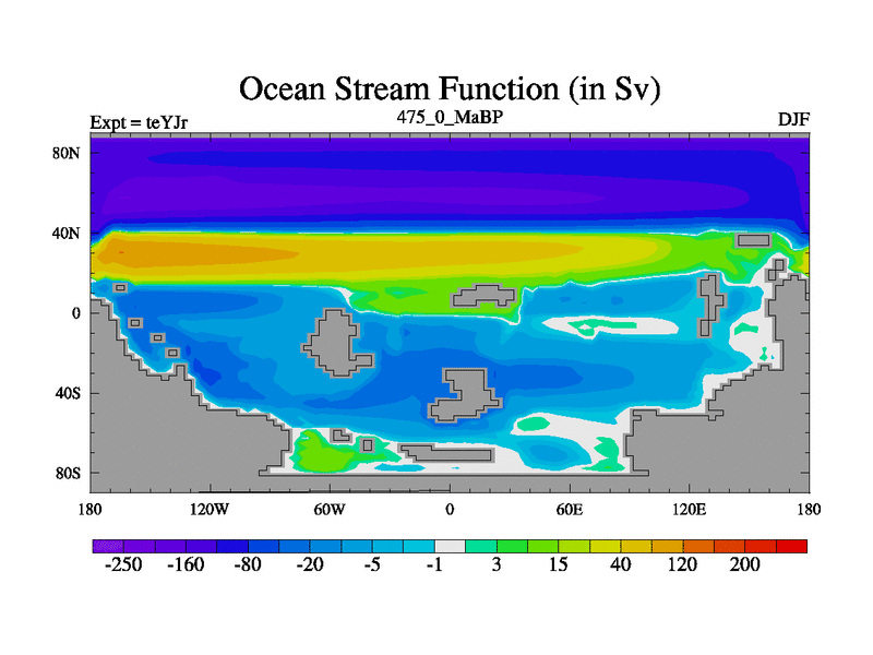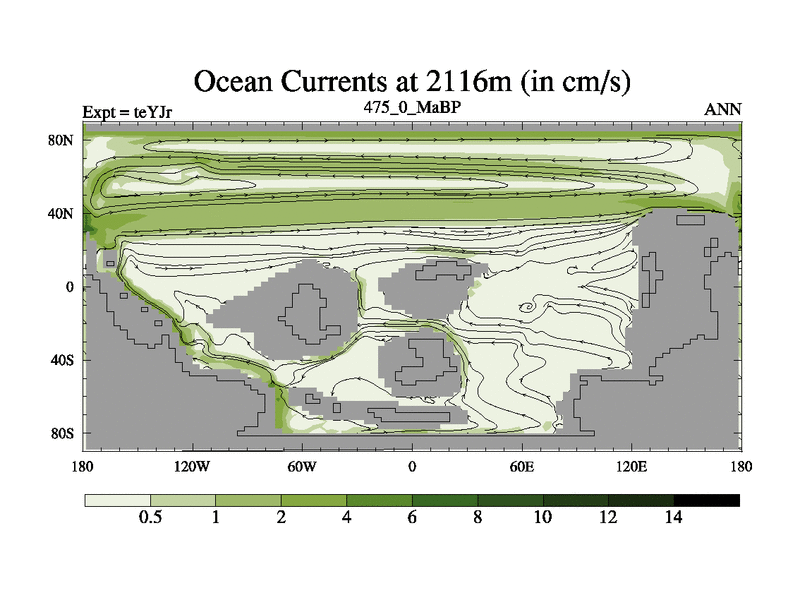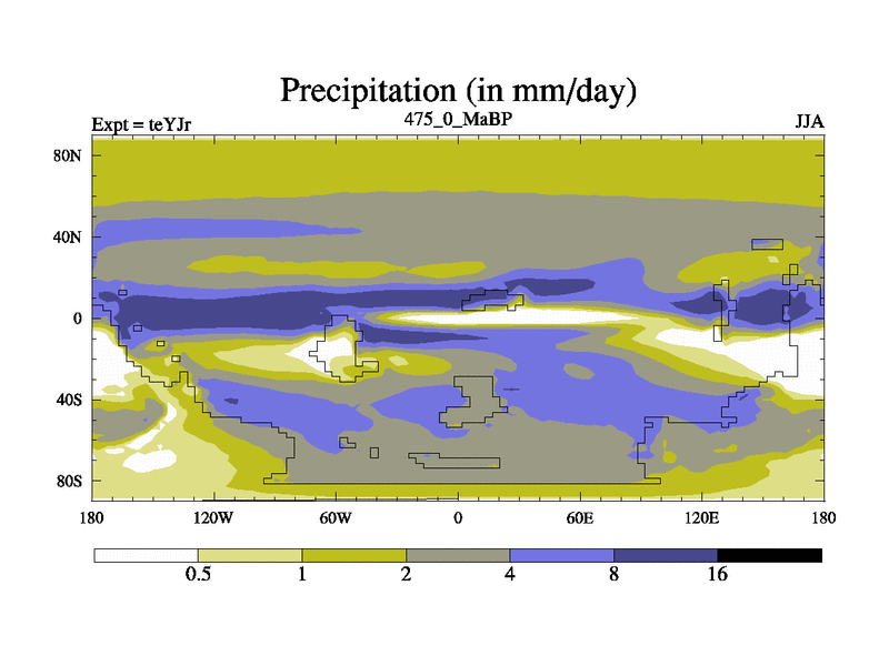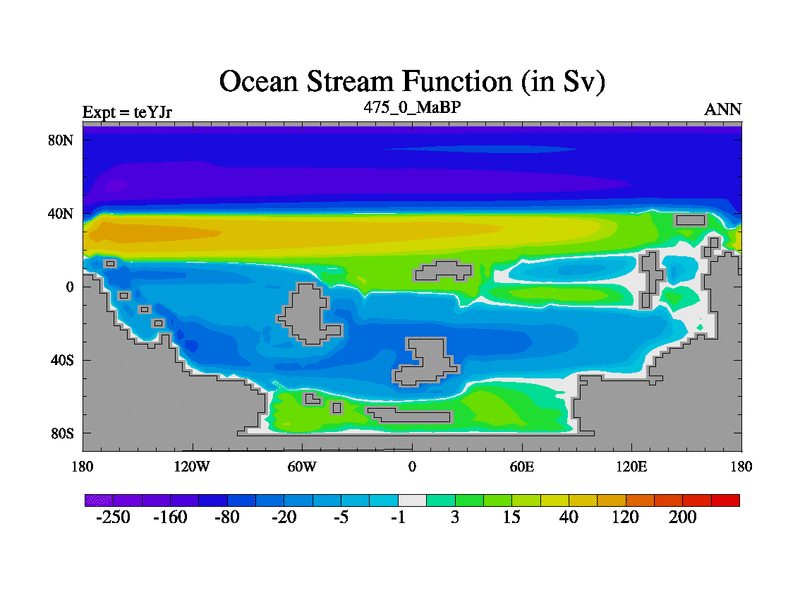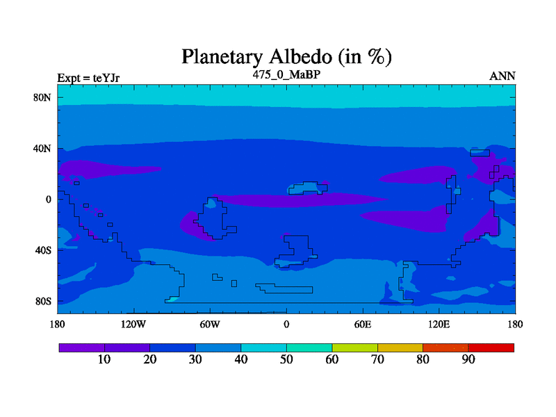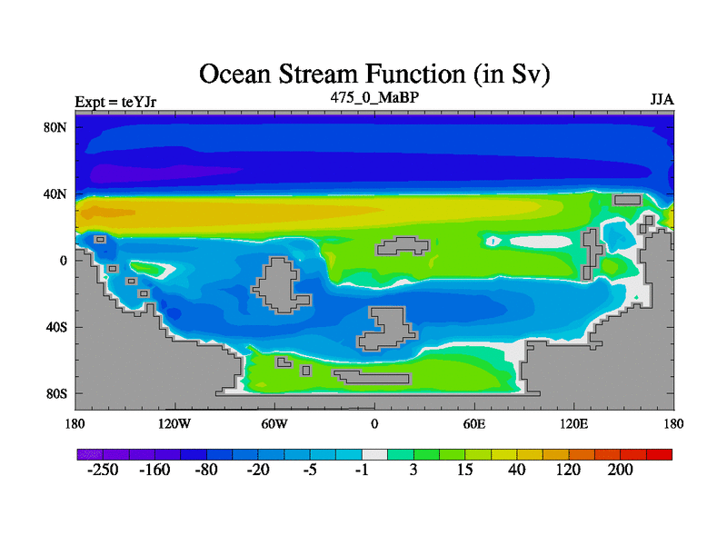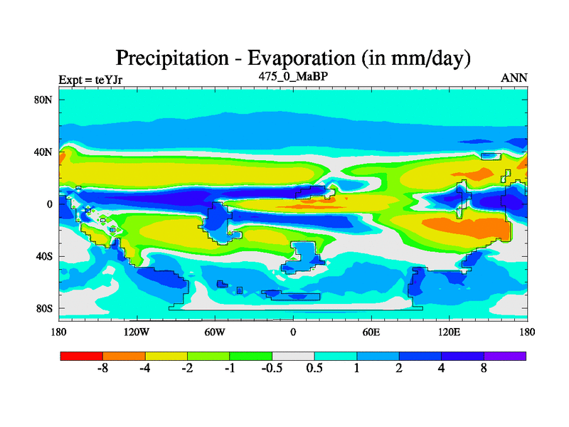 This is the 475.0 Ma simulation using the Scotese palaeogeographies and revised CCN etc. As teyfa3 but corrected orography problem over Antartartica. Now includes ocean biogeochemistry