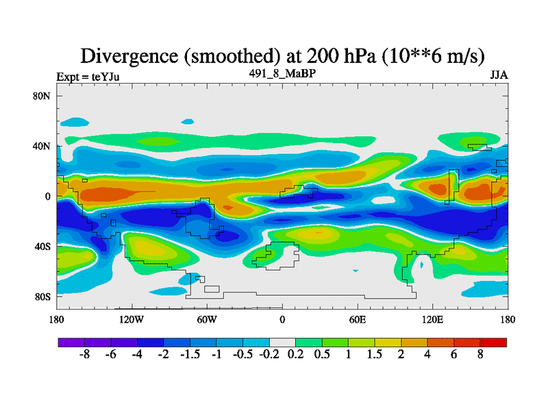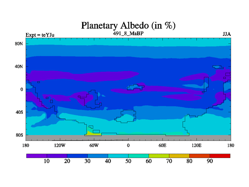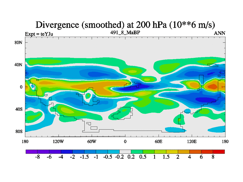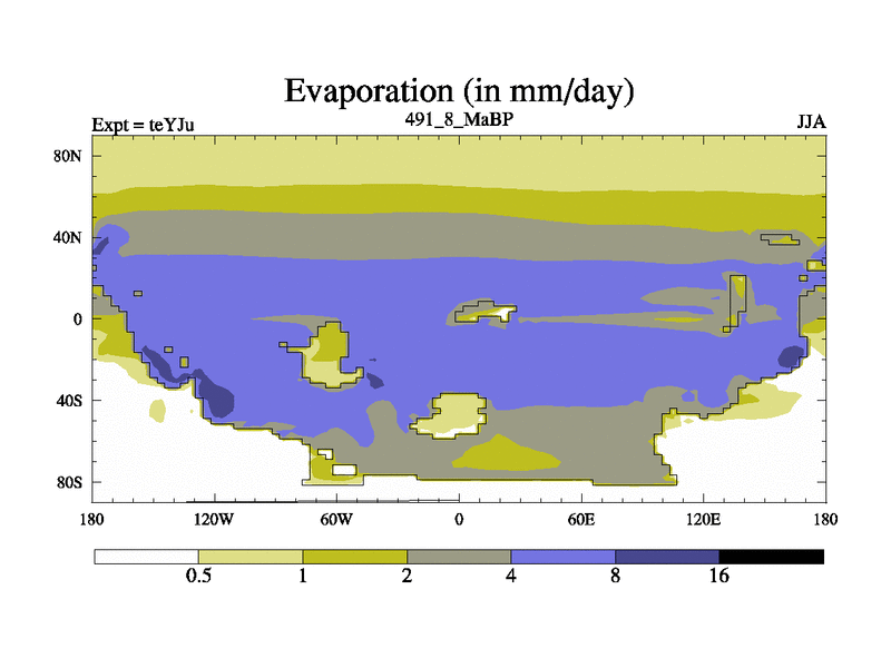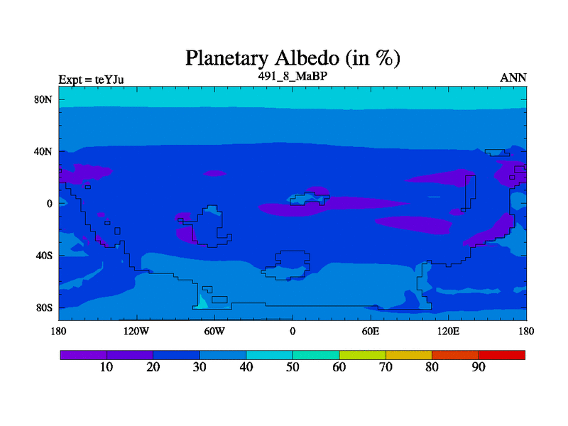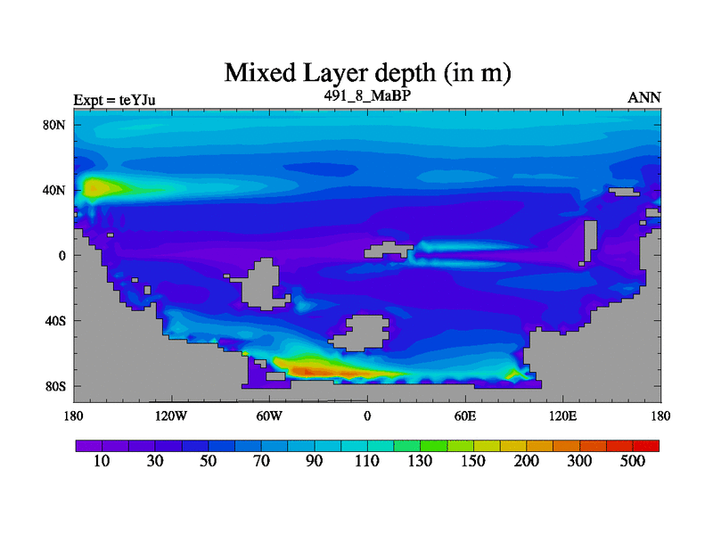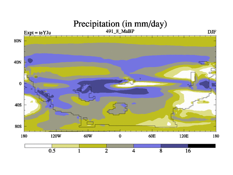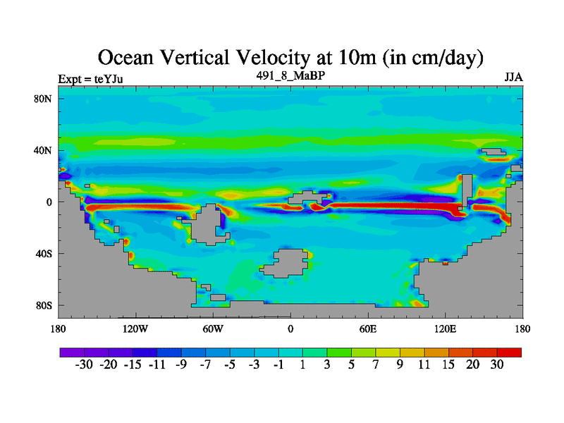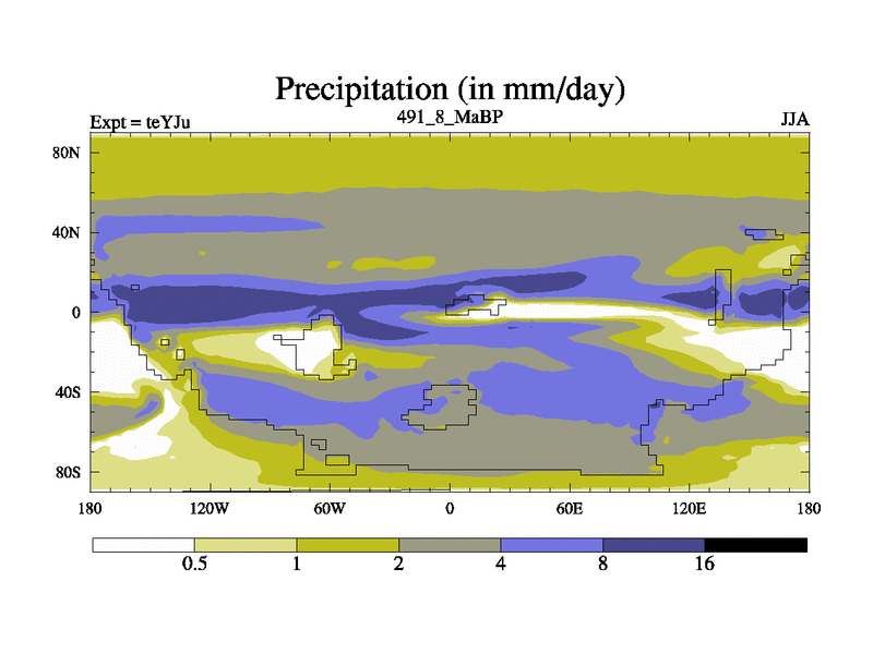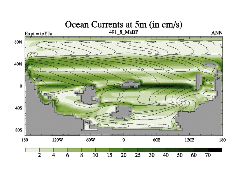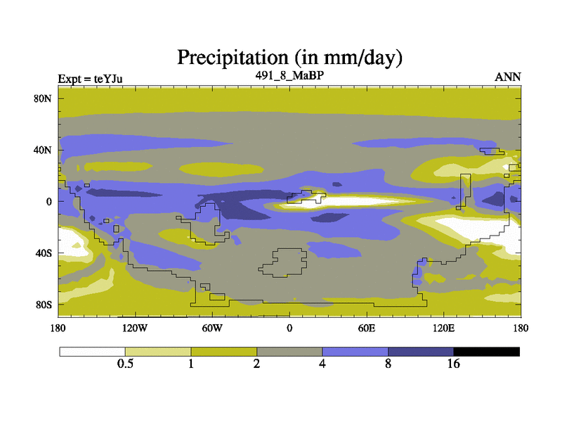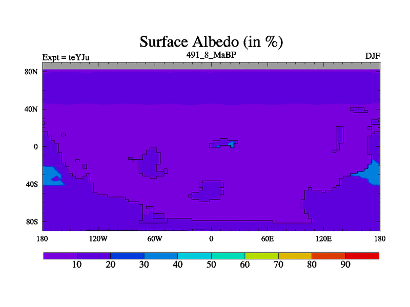 This is the 491.8 Ma simulation using the Scotese palaeogeographies and revised CCN etc. As teyfa3 but corrected orography problem over Antartartica. Now includes ocean biogeochemistry