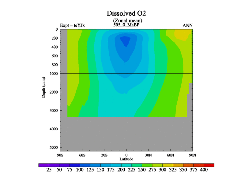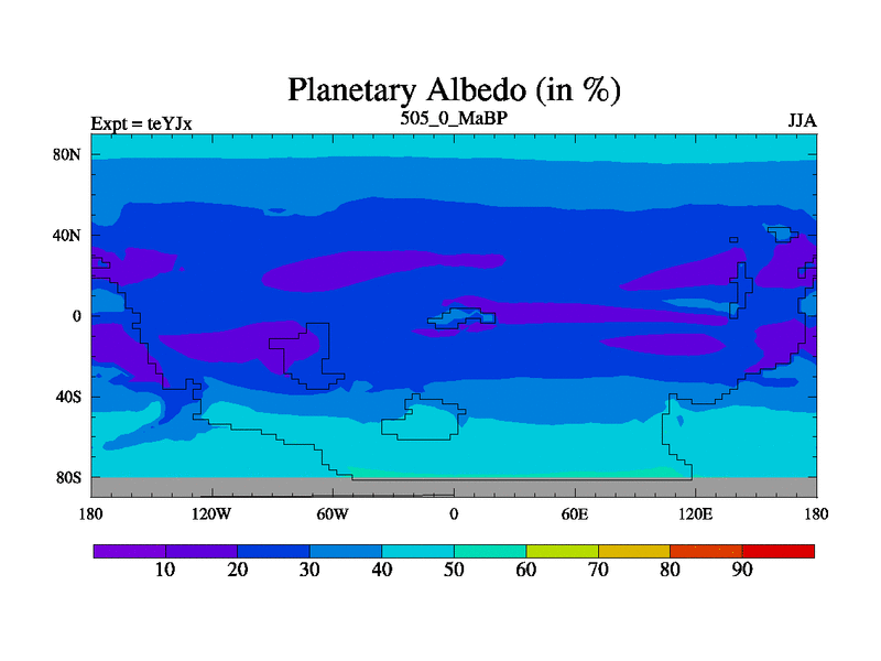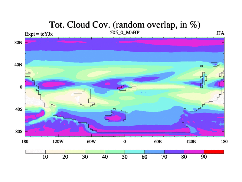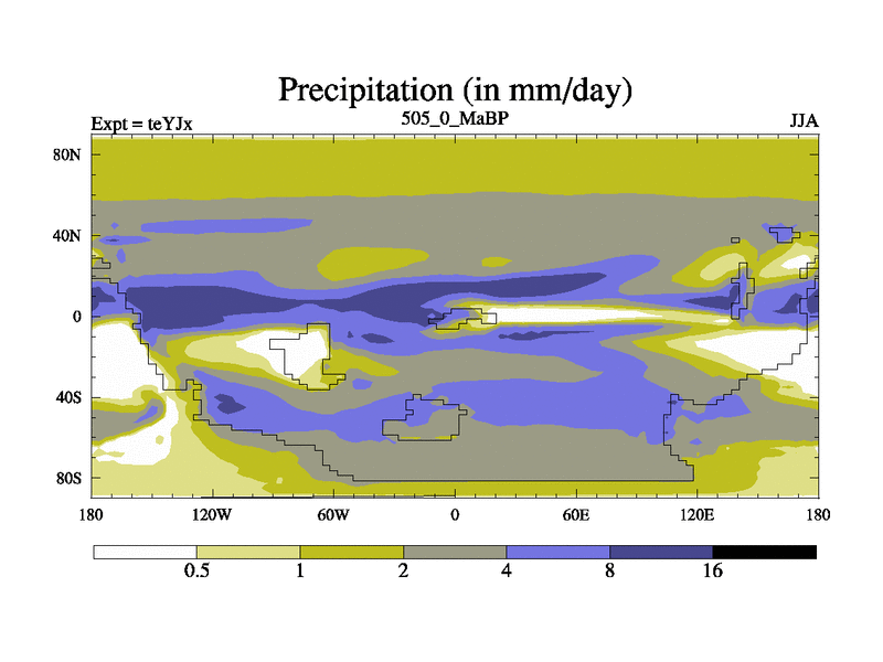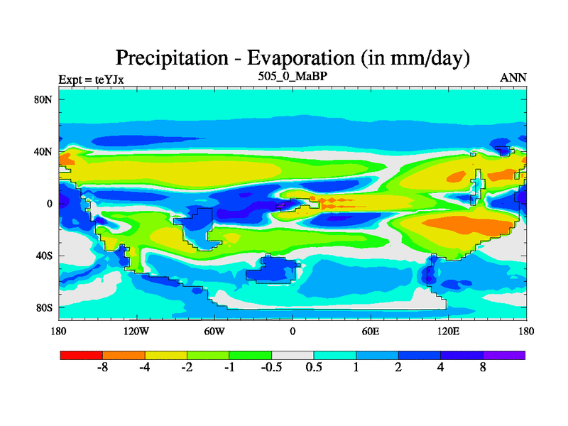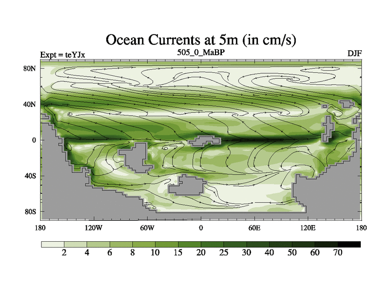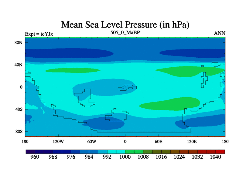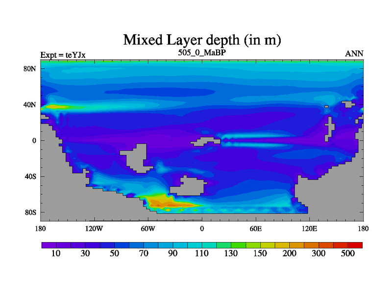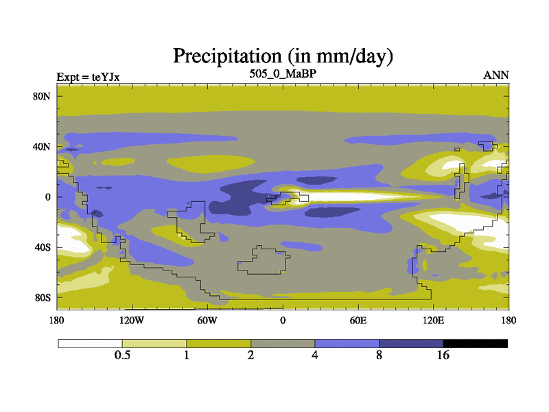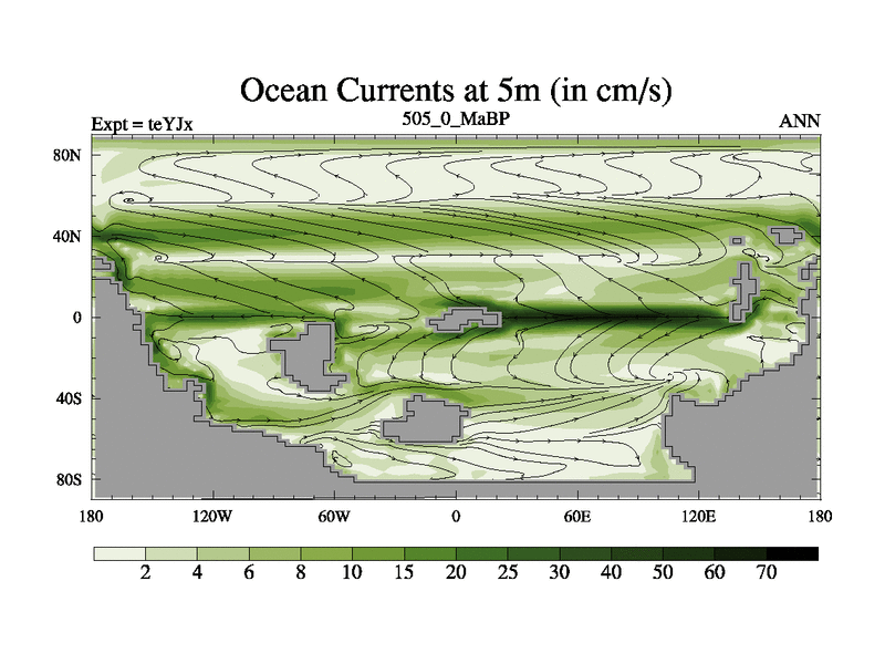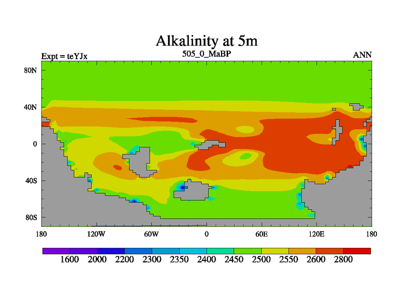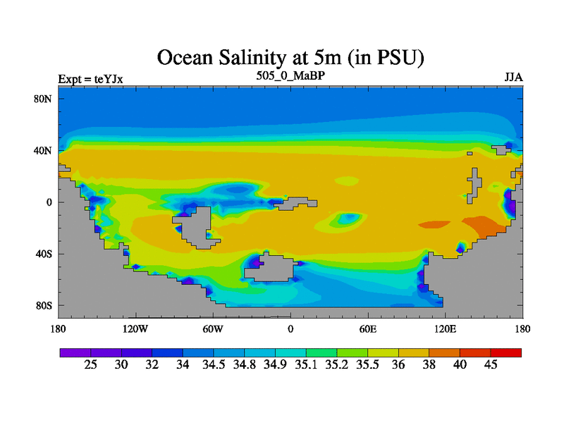 This is the 505.0 Ma simulation using the Scotese palaeogeographies and revised CCN etc. As teyfa3 but corrected orography problem over Antartartica. Now includes ocean biogeochemistry