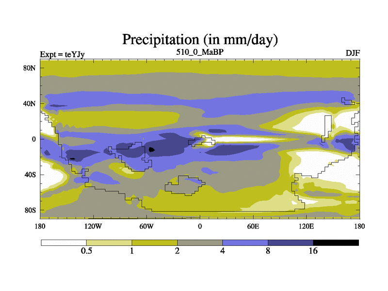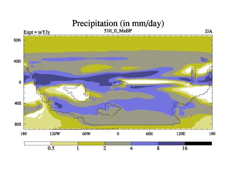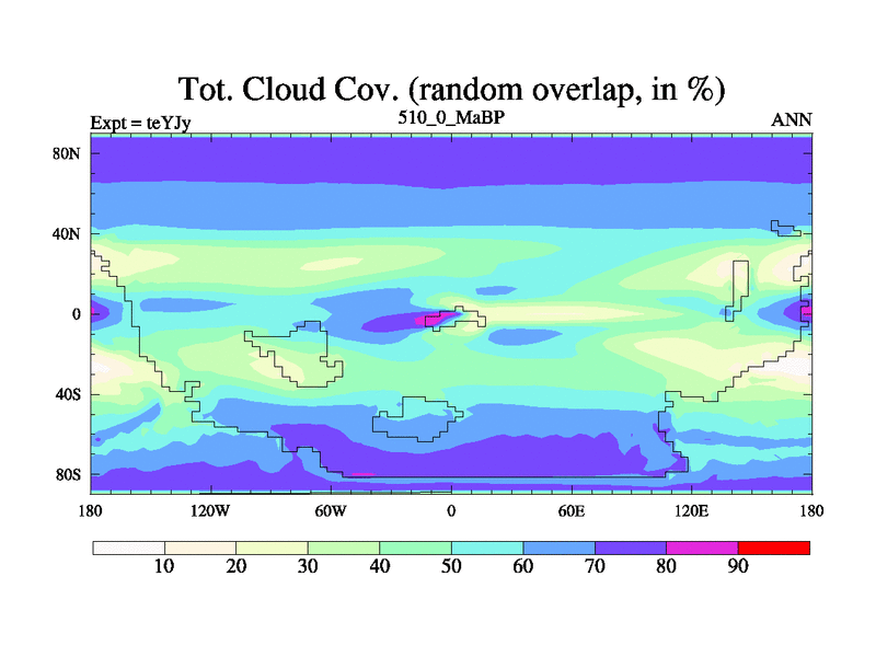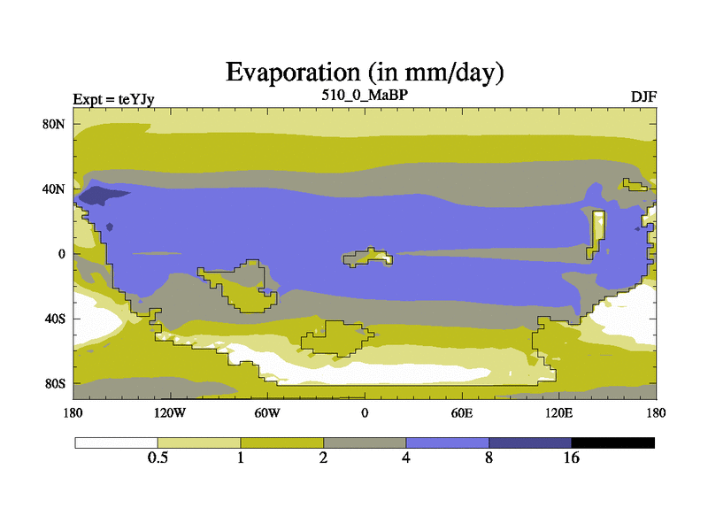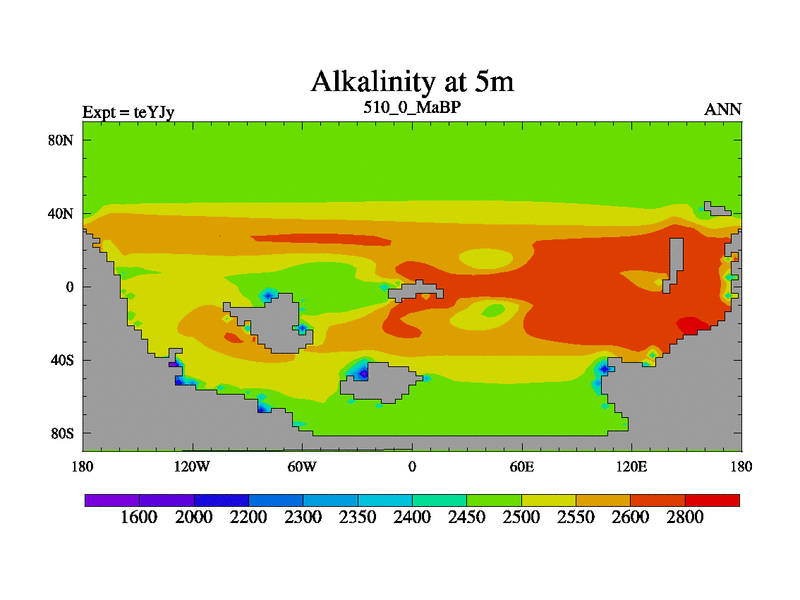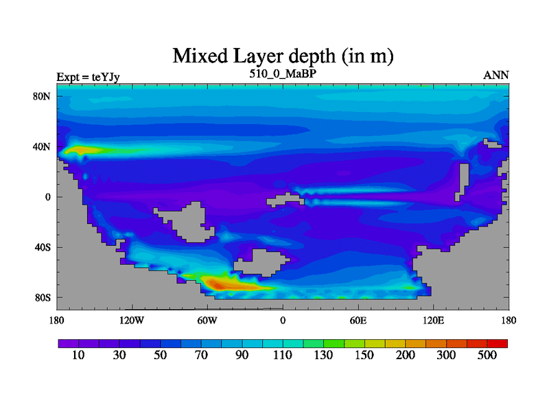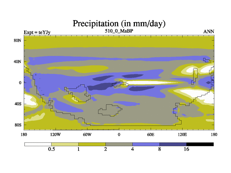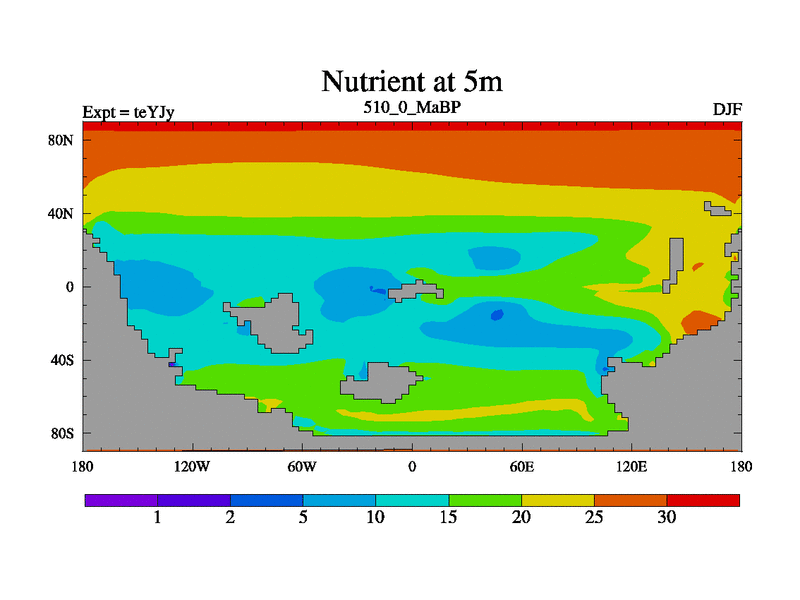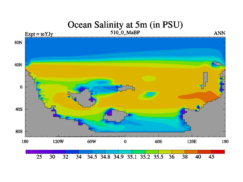 This is the 510.0 Ma simulation using the Scotese palaeogeographies and revised CCN etc. As teyfa3 but corrected orography problem over Antartartica. Now includes ocean biogeochemistry