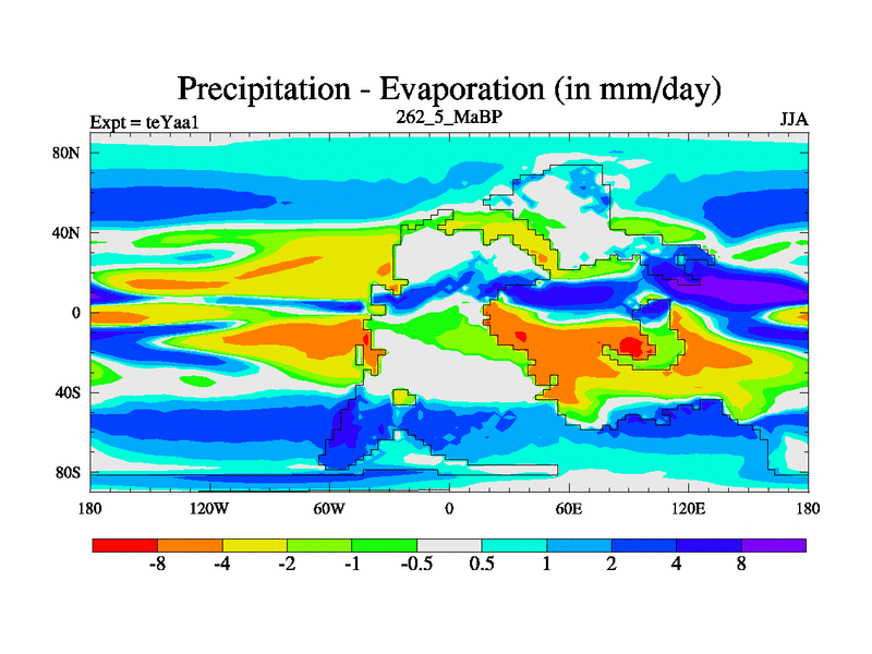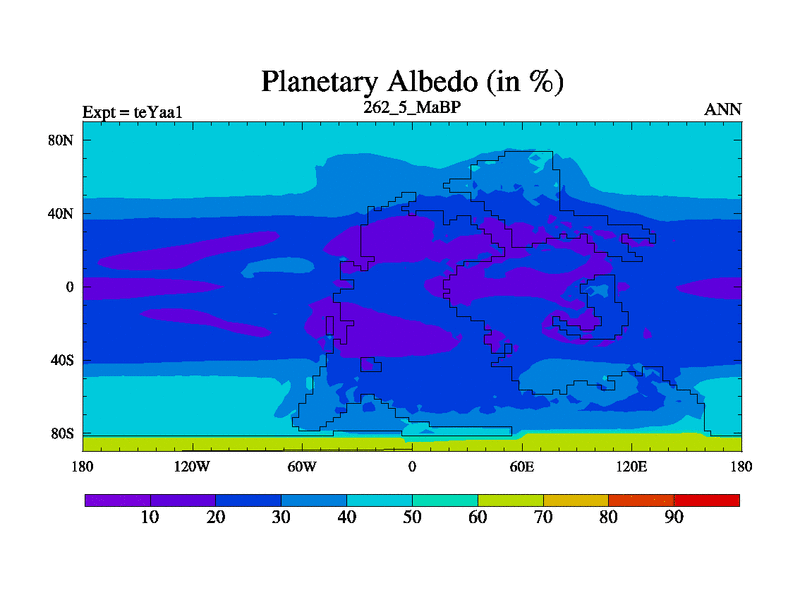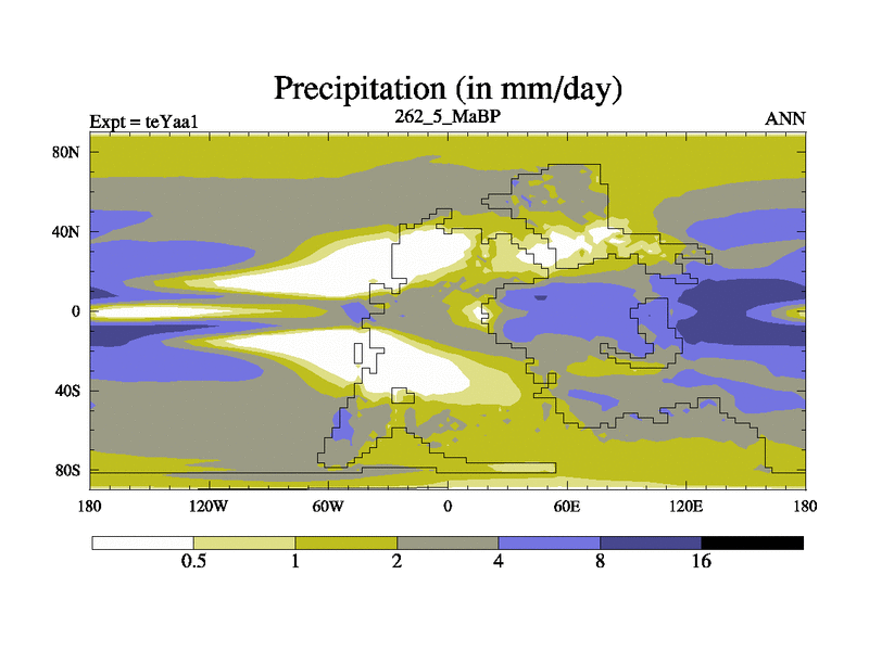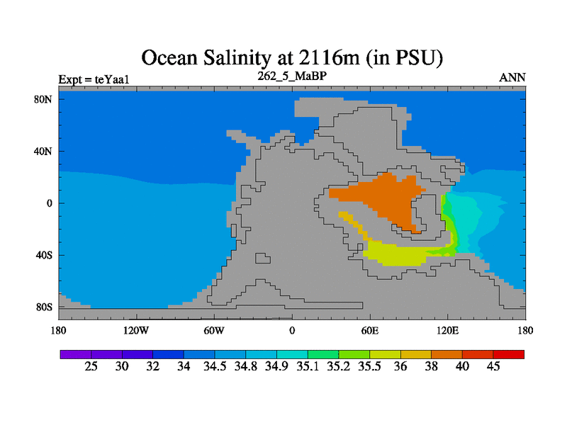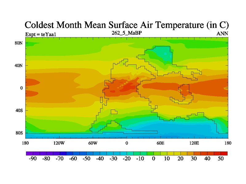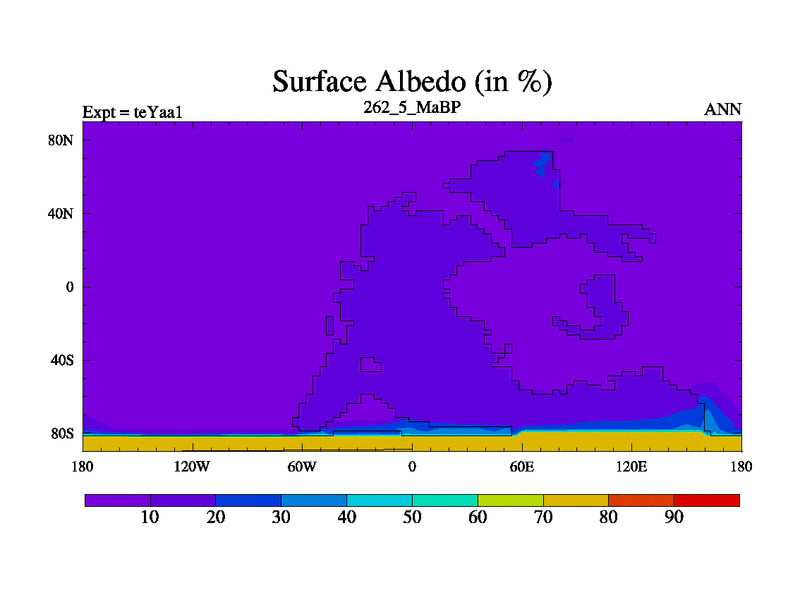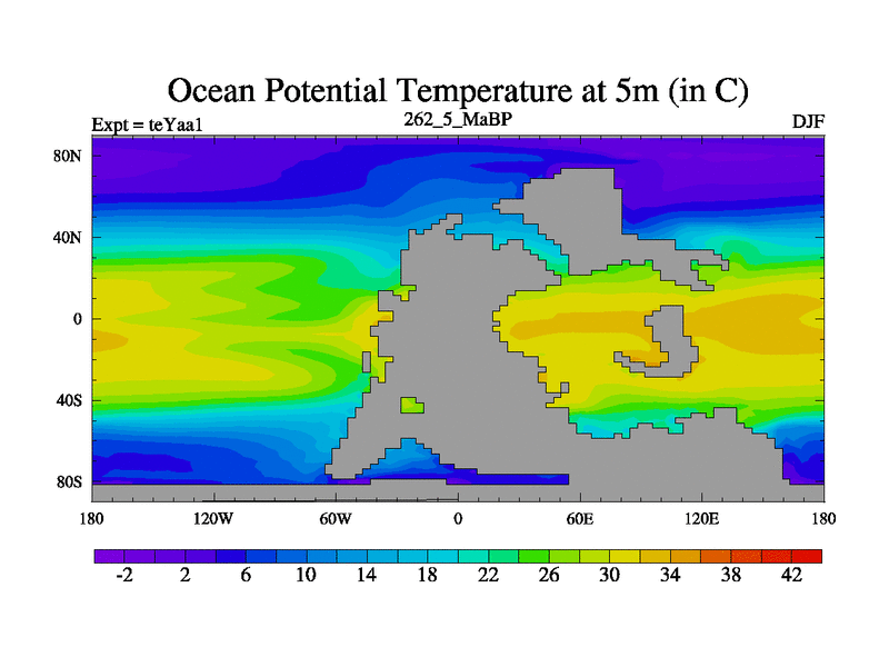 This is the 262.5 Ma simulation using the Scotese palaeogeographies. Extension of the tex[f..j] series.