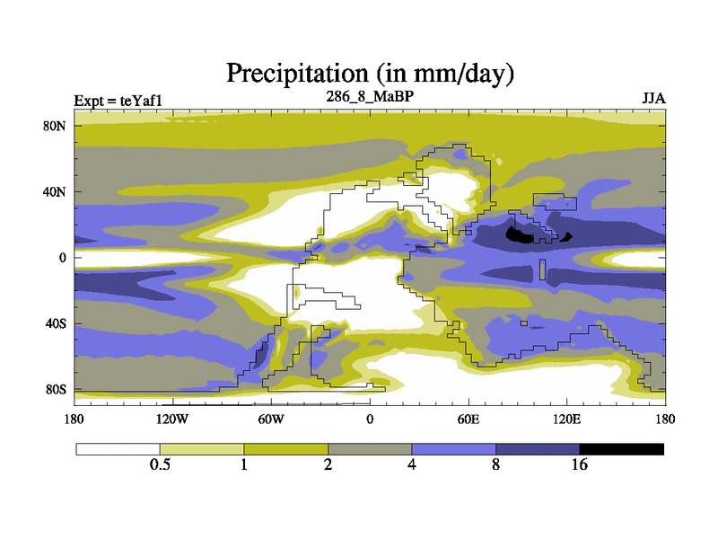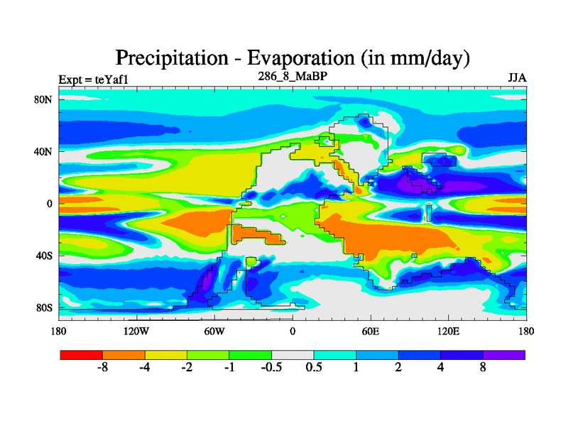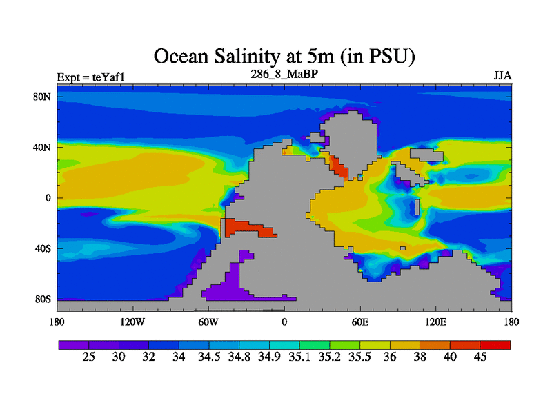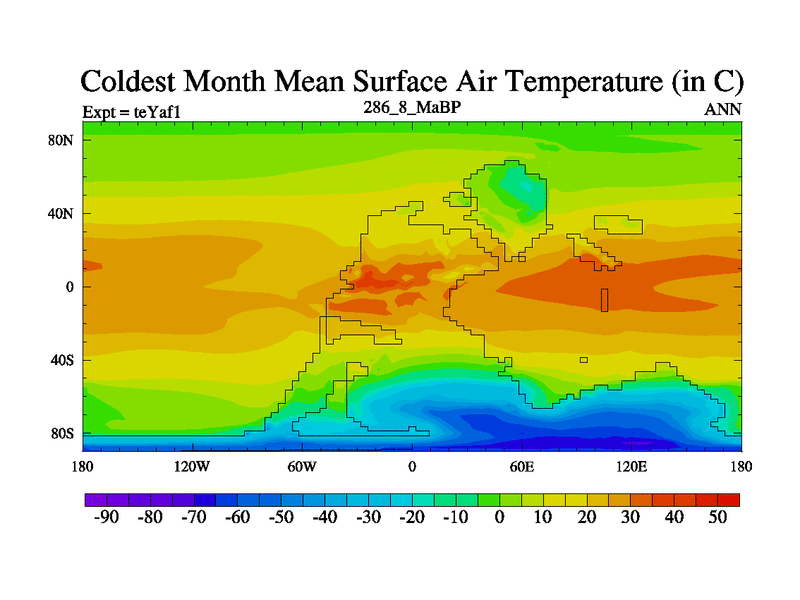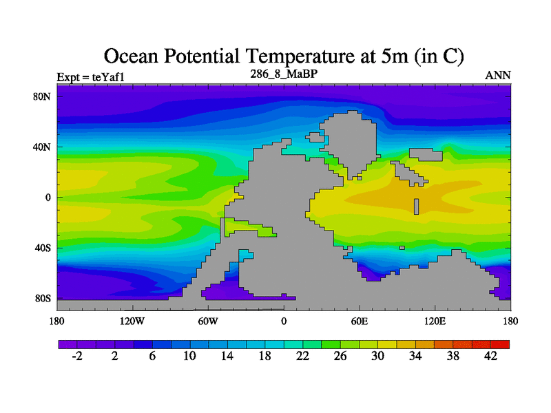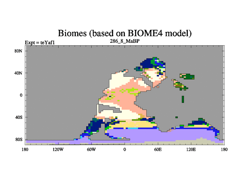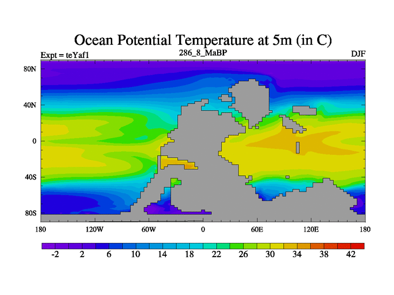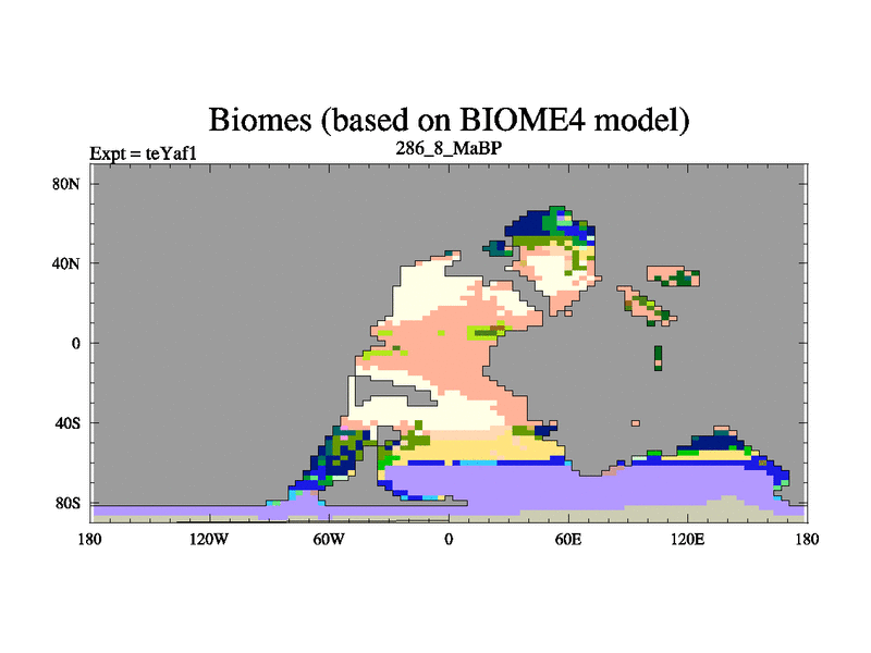 This is the 286.8 Ma simulation using the Scotese palaeogeographies. Extension of the tex[f..j] series.