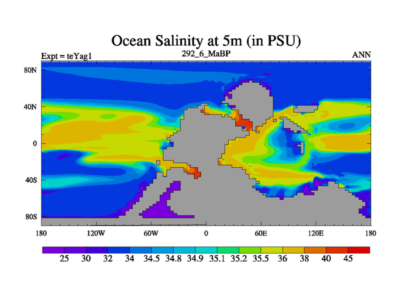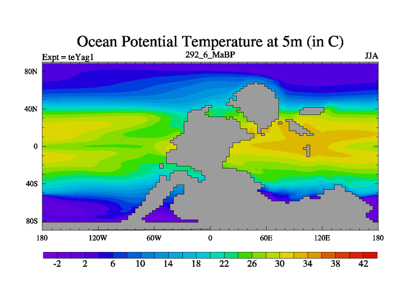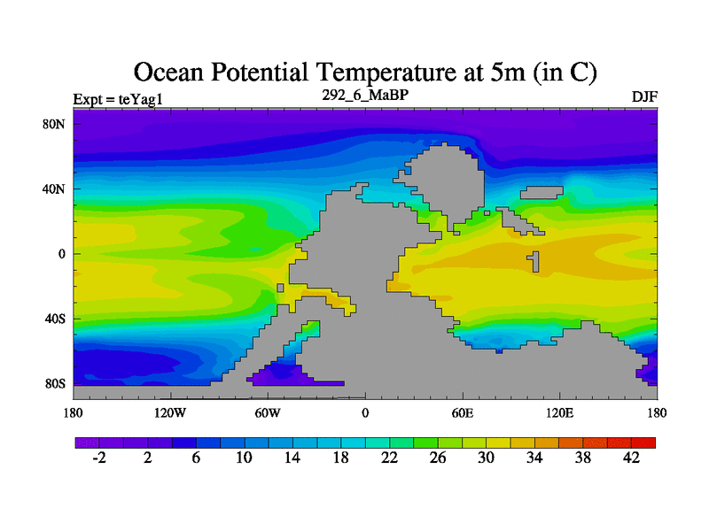 This is the 292.6 Ma simulation using the Scotese palaeogeographies. Extension of the tex[f..j] series.