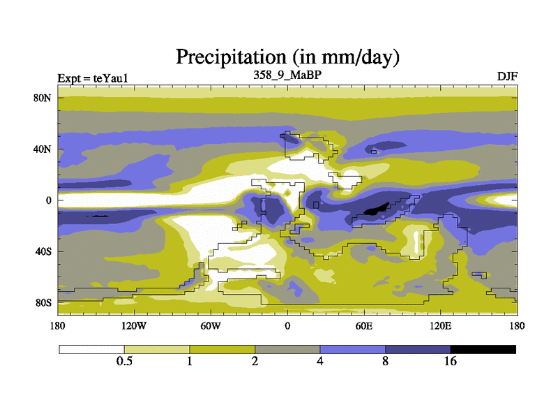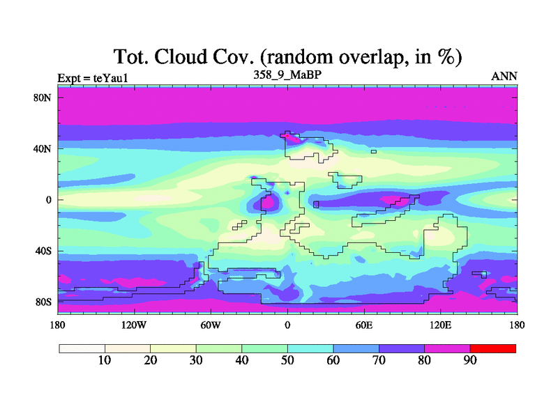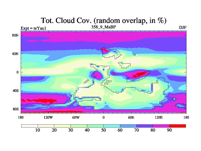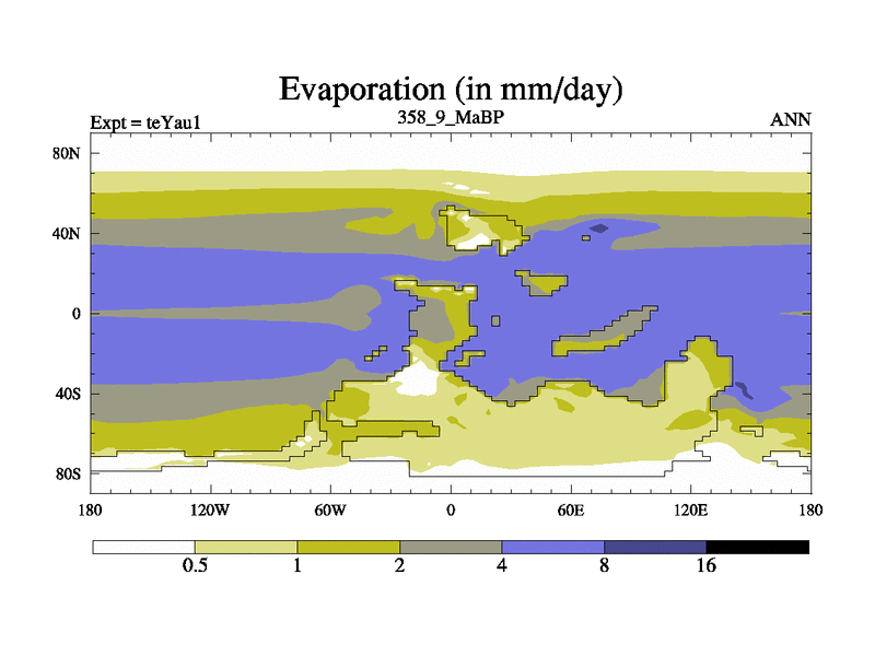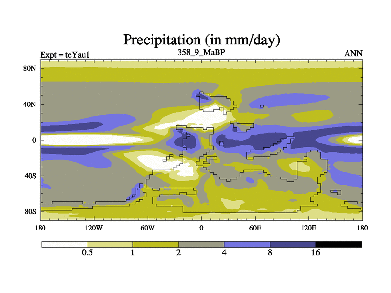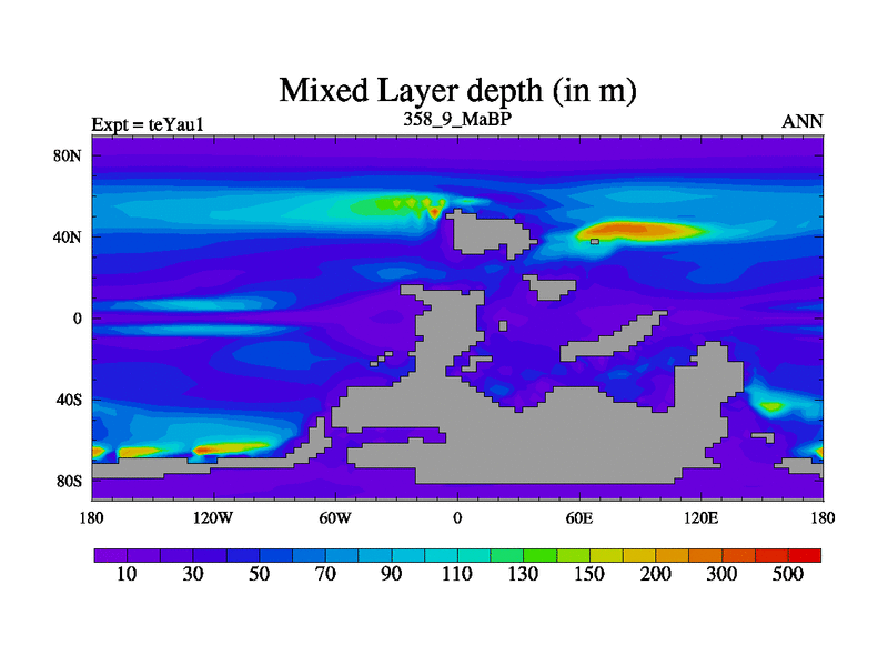 This is the 358.9 Ma simulation using the Scotese palaeogeographies. Extension of the tex[f..j] series.