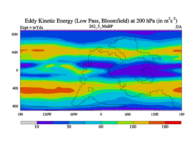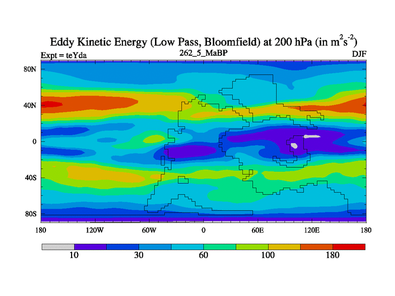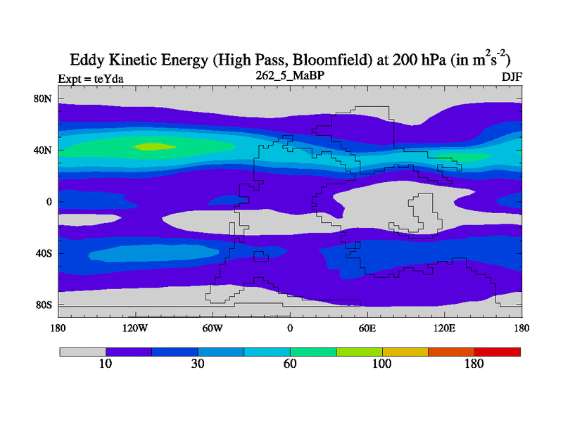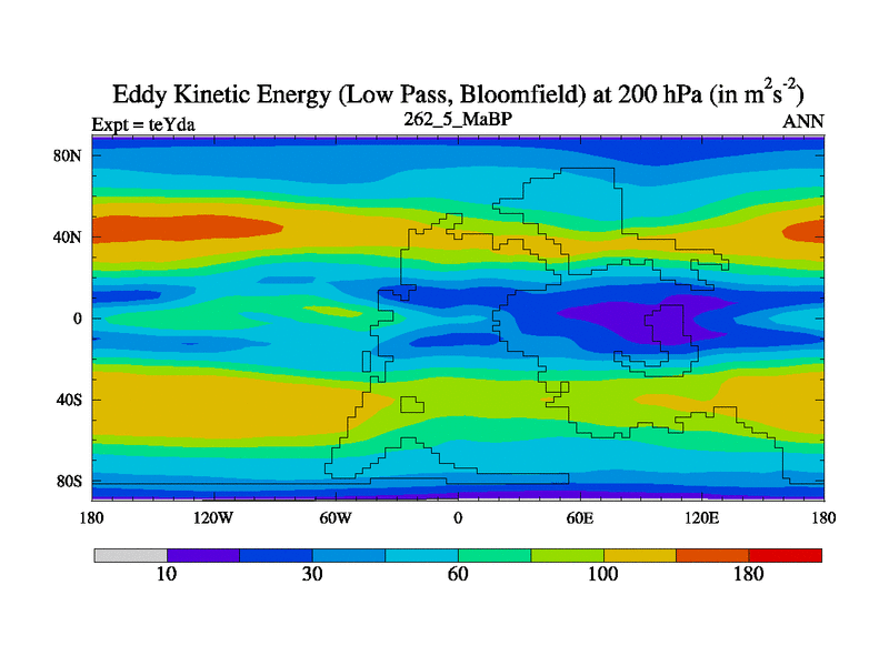 Low Pass Eddy Kinetic Energy at 200 hPa