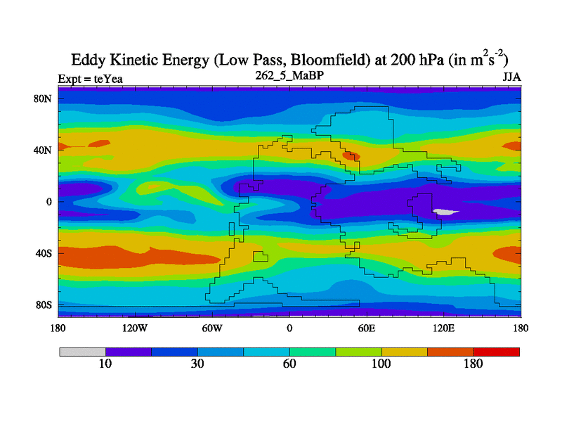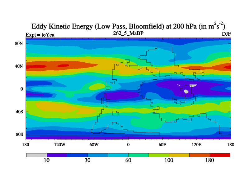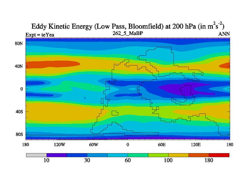 Low Pass Eddy Kinetic Energy at 200 hPa