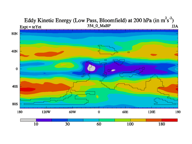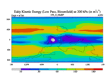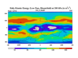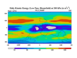 Low Pass Eddy Kinetic Energy at 200 hPa