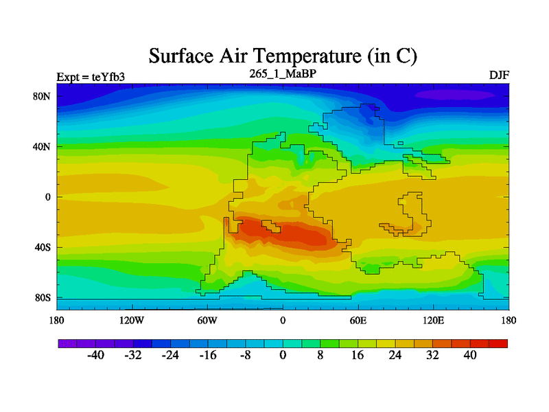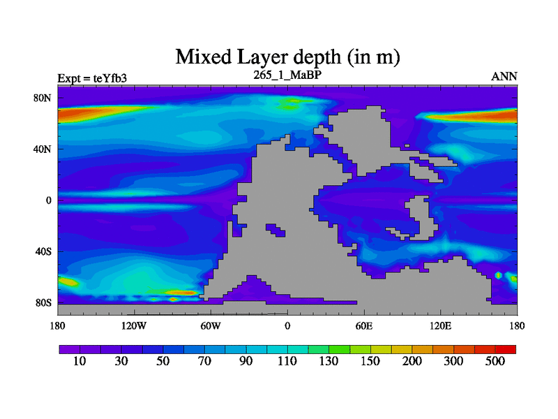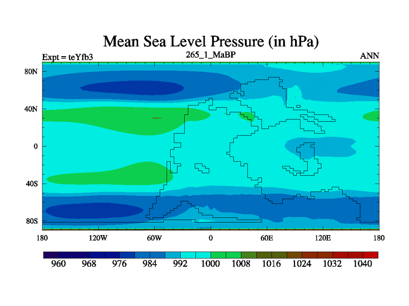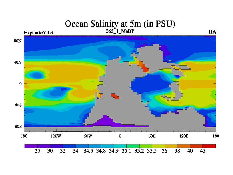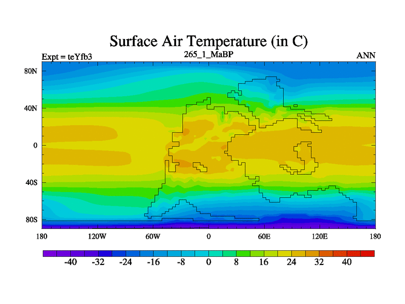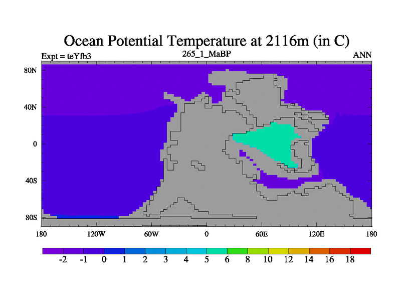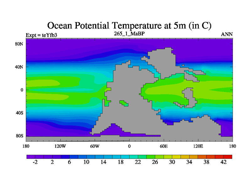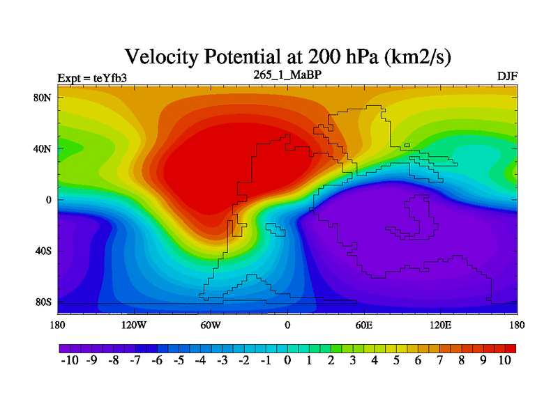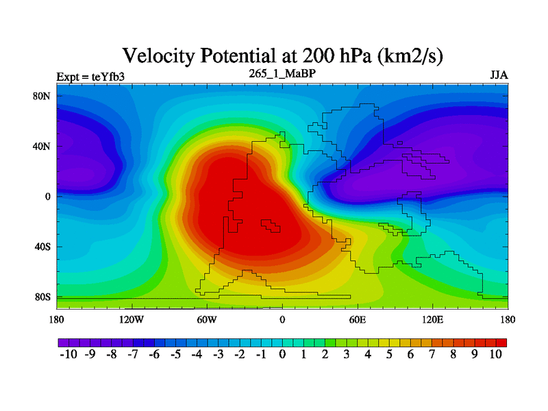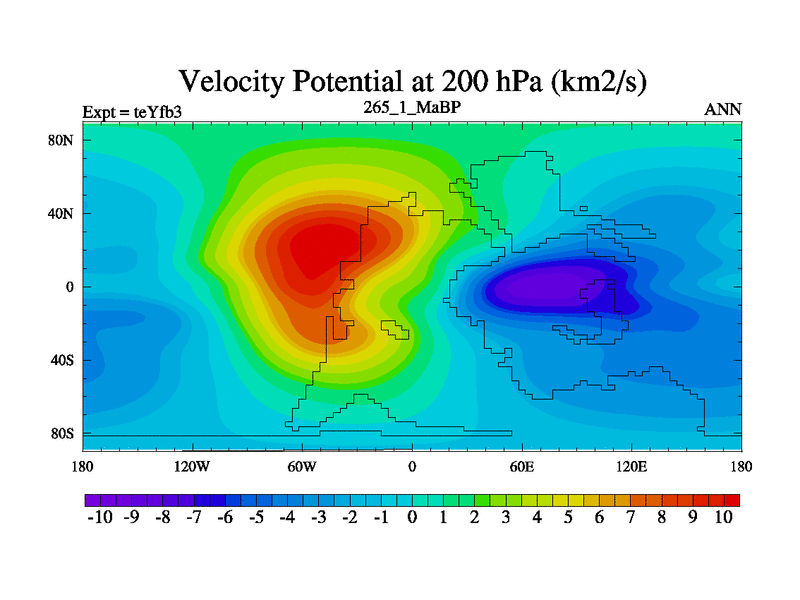 This is the 265.1 Ma simulation using the Scotese palaeogeographies and revised CCN etc. Updated HadCM3L ocean parameters and soil parameters. Also made sure orography gravity wave drag was consistent.