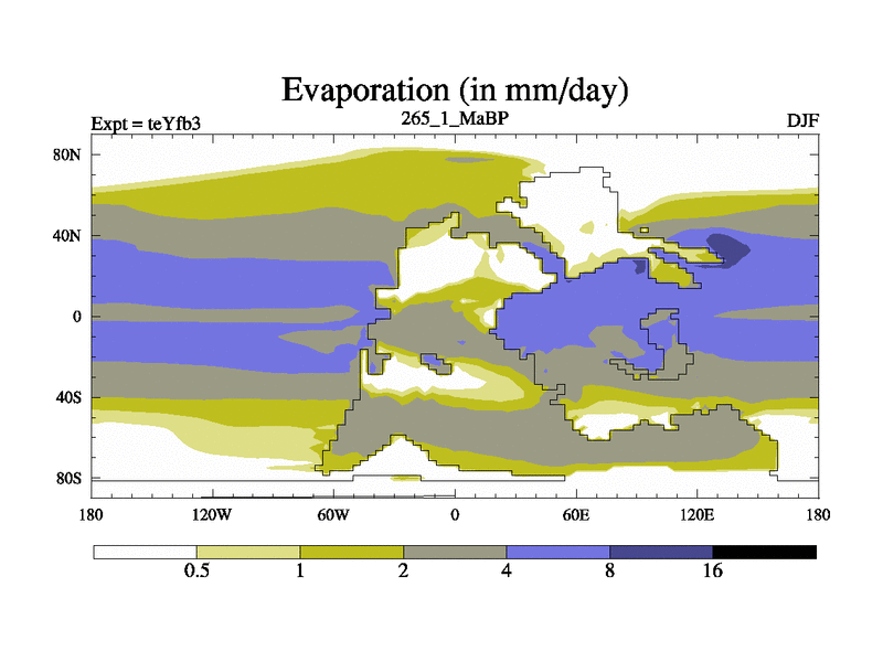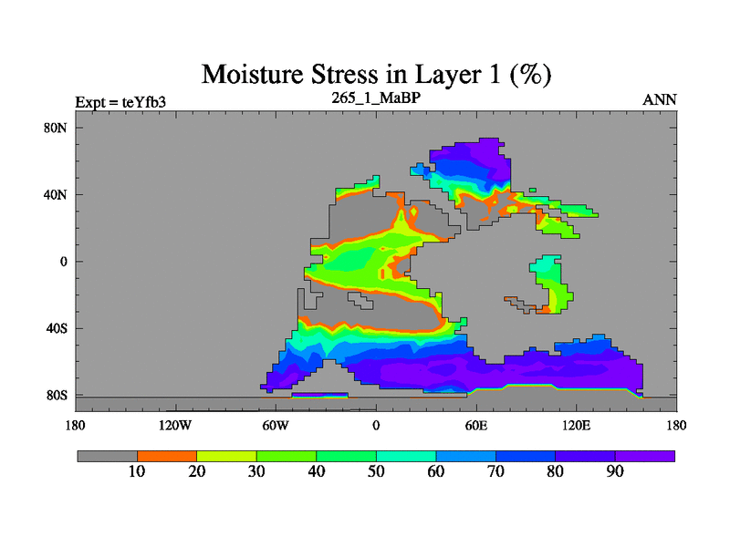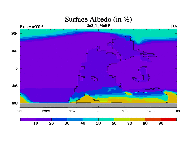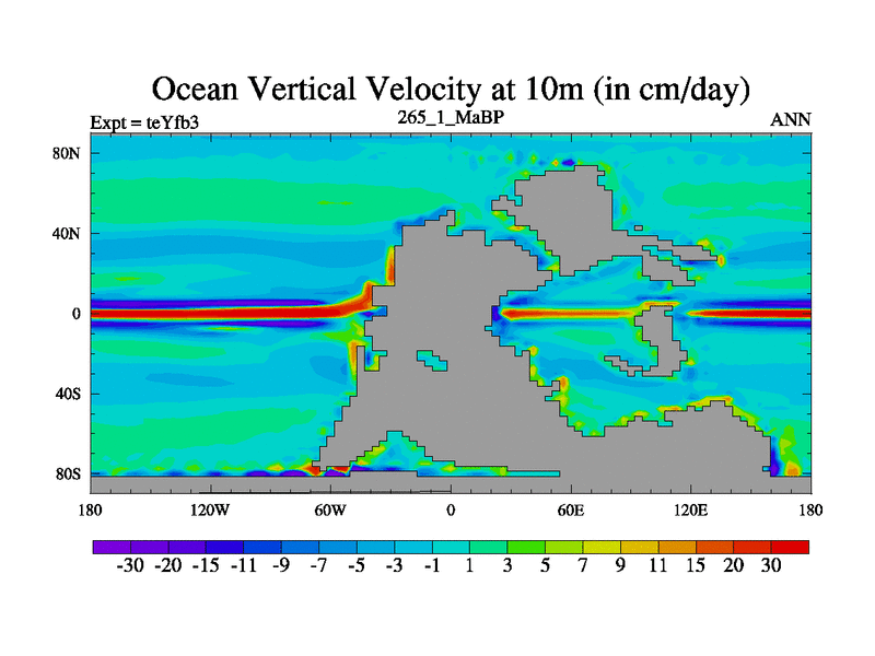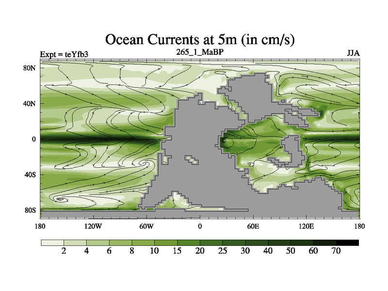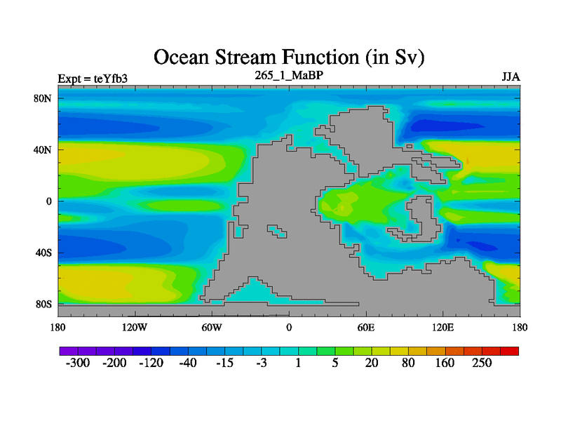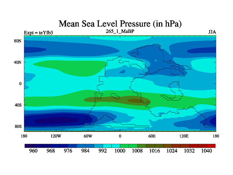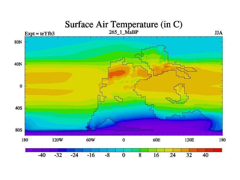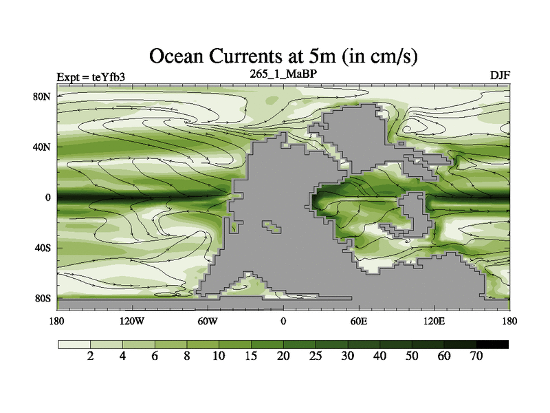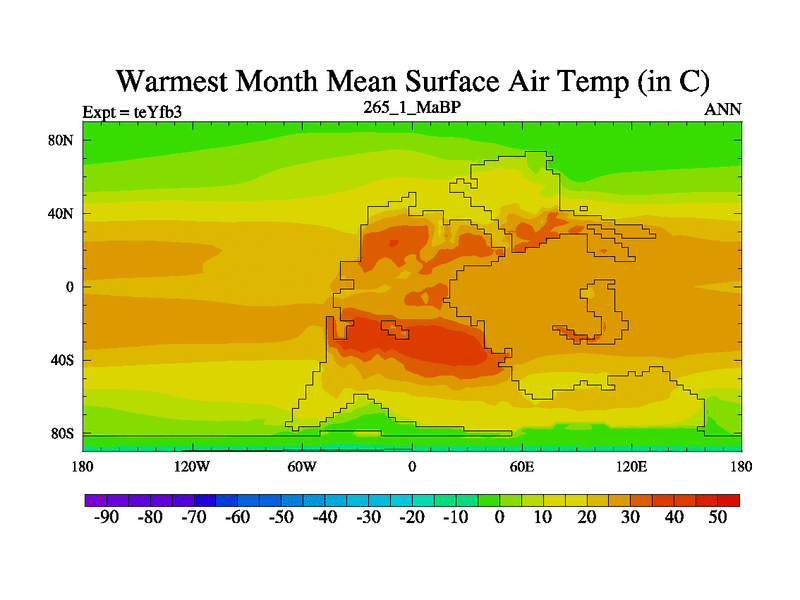 This is the 265.1 Ma simulation using the Scotese palaeogeographies and revised CCN etc. Updated HadCM3L ocean parameters and soil parameters. Also made sure orography gravity wave drag was consistent.