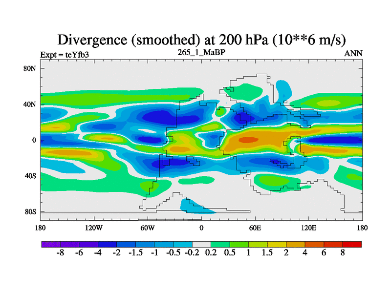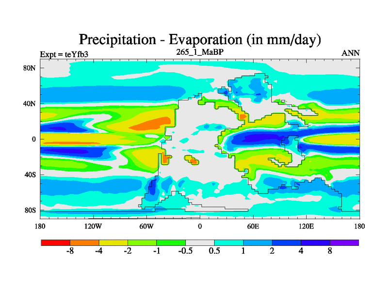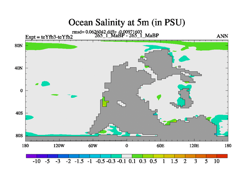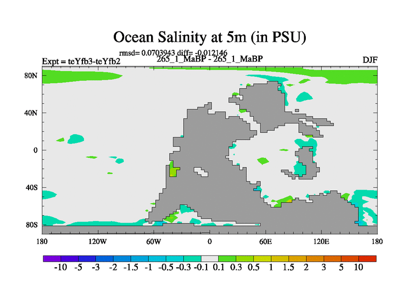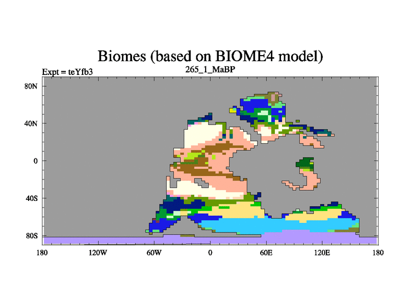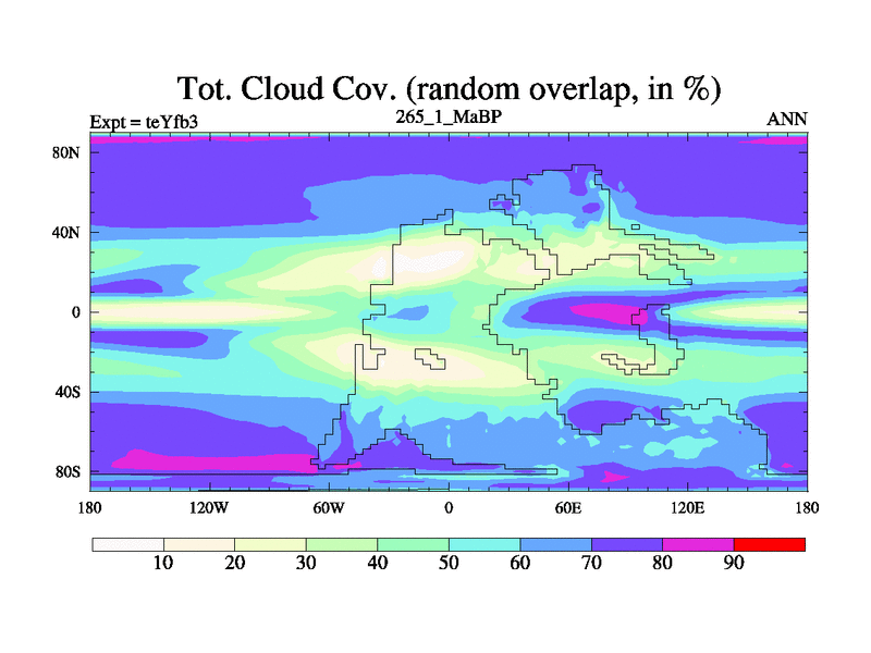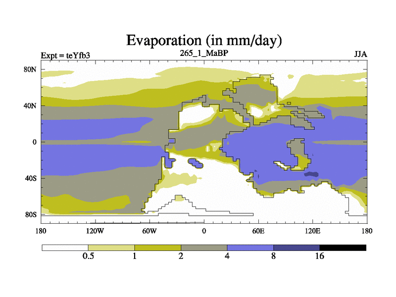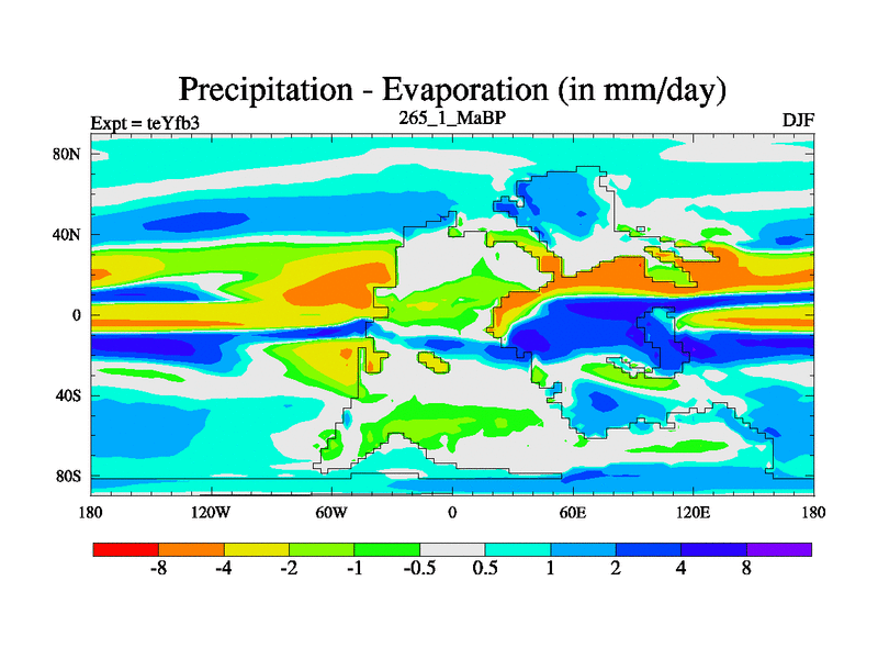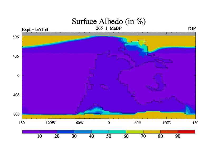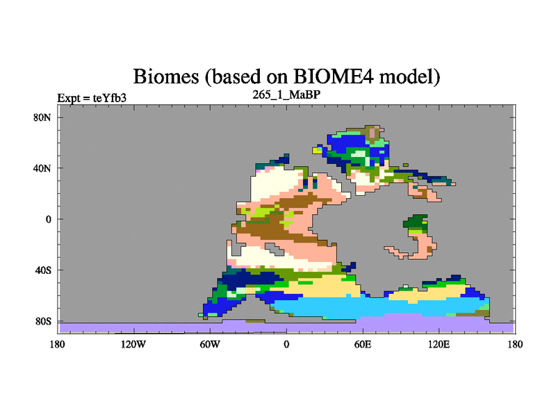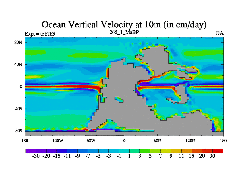 This is the 265.1 Ma simulation using the Scotese palaeogeographies and revised CCN etc. Updated HadCM3L ocean parameters and soil parameters. Also made sure orography gravity wave drag was consistent.