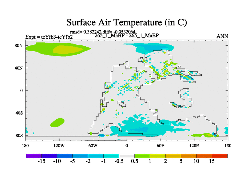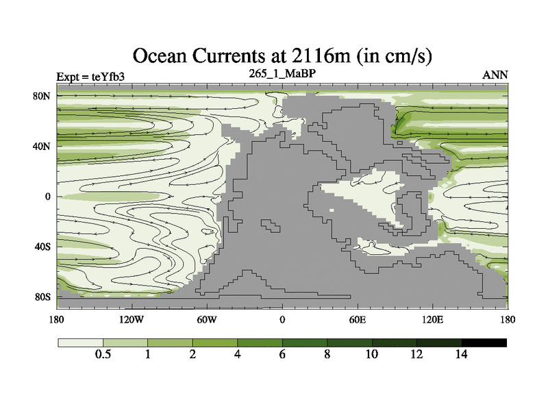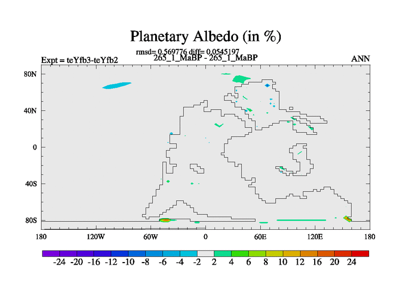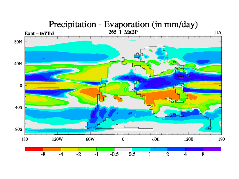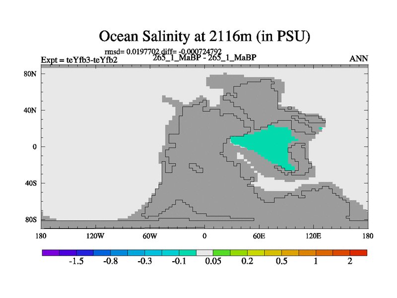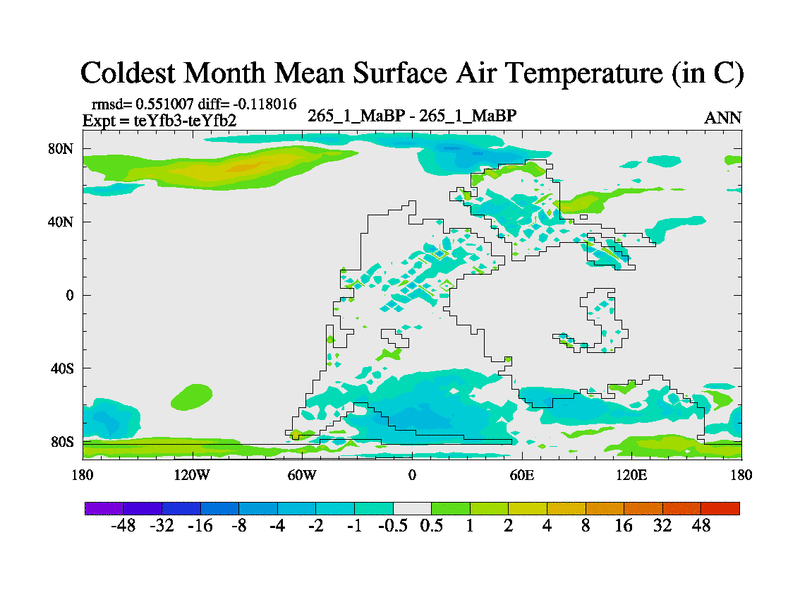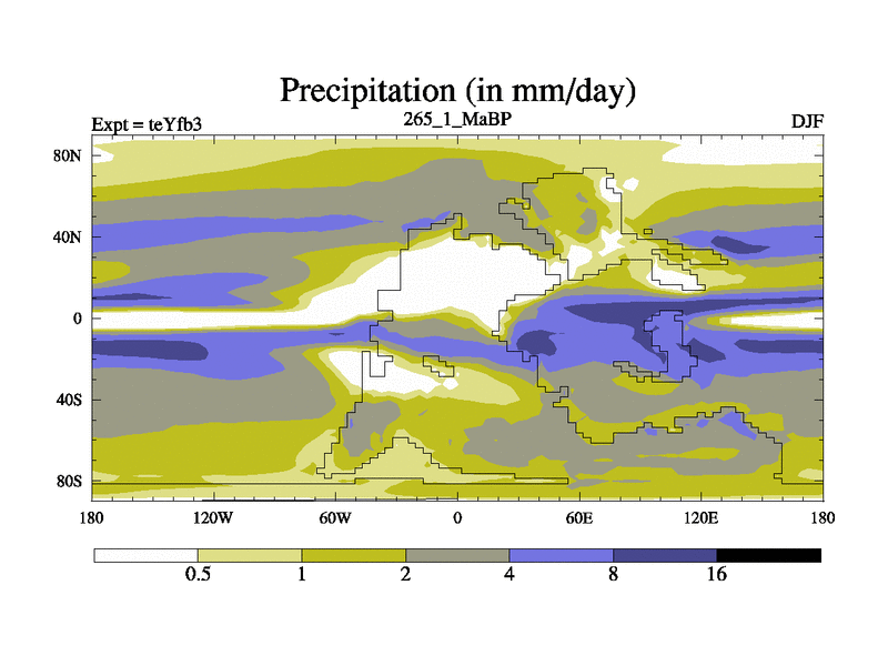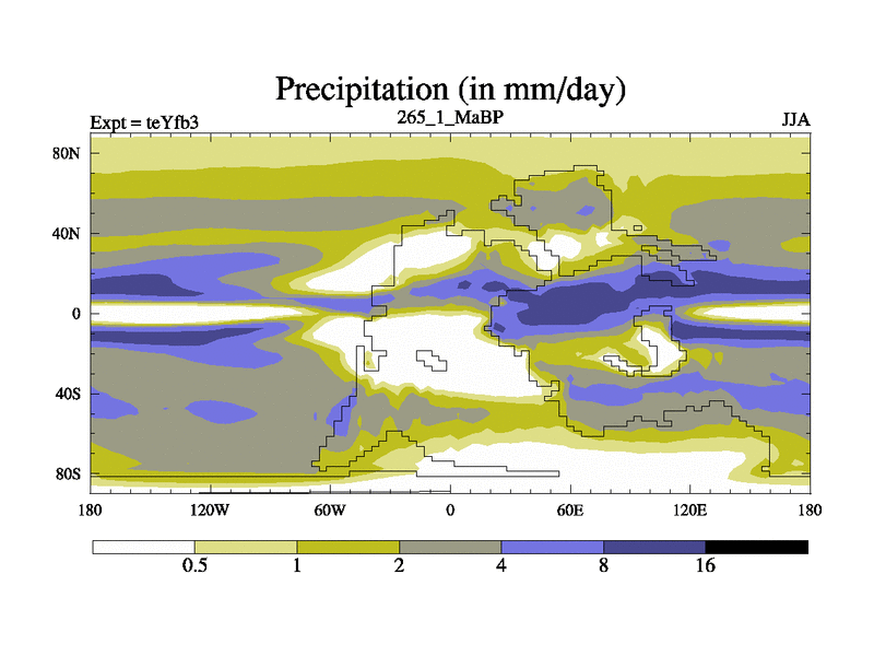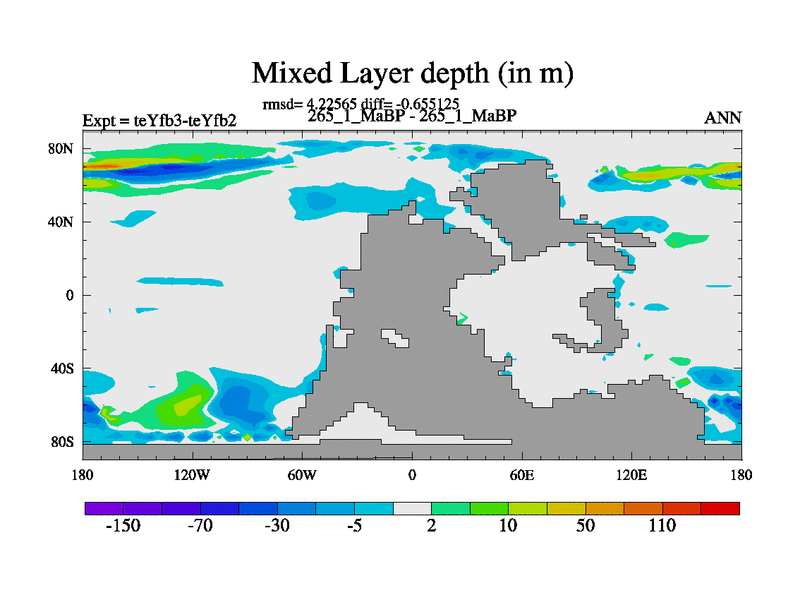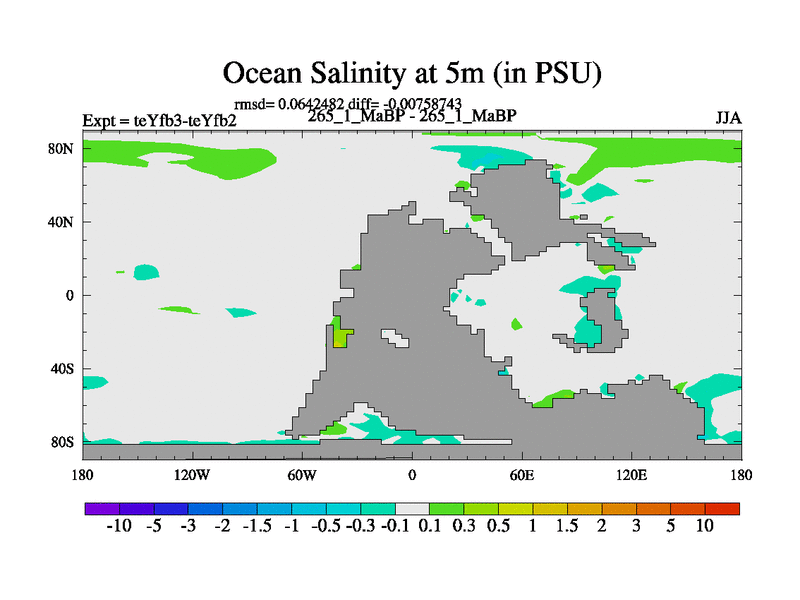This is the 265.1 Ma simulation using the Scotese palaeogeographies and revised CCN etc. Updated HadCM3L ocean parameters and soil parameters. Also made sure orography gravity wave drag was consistent.