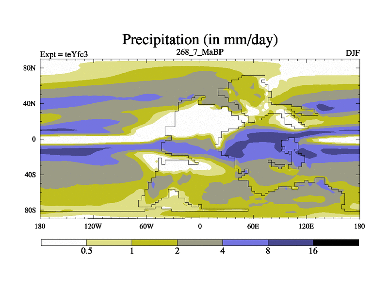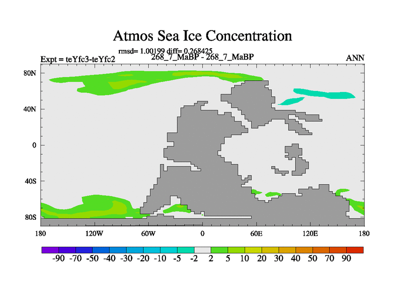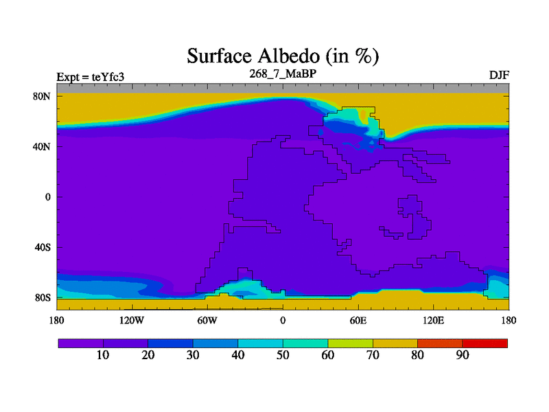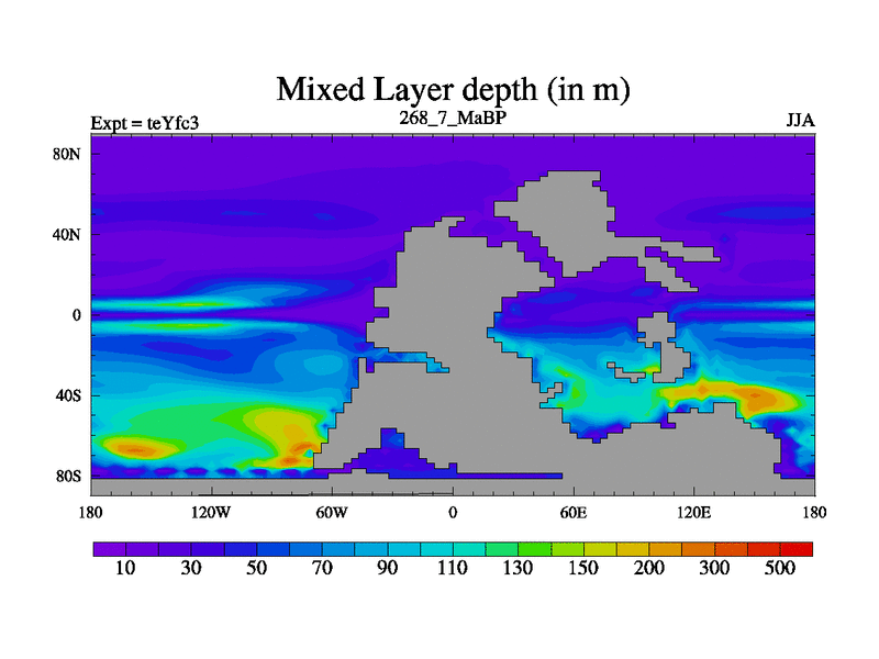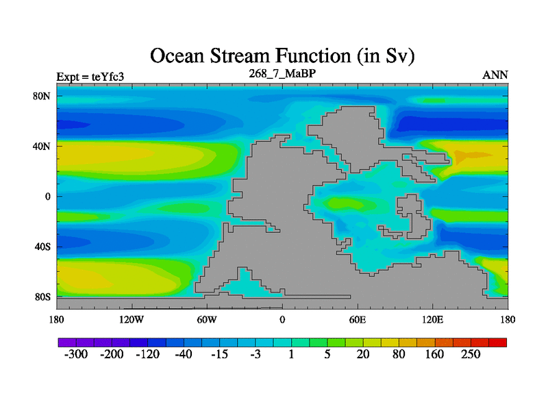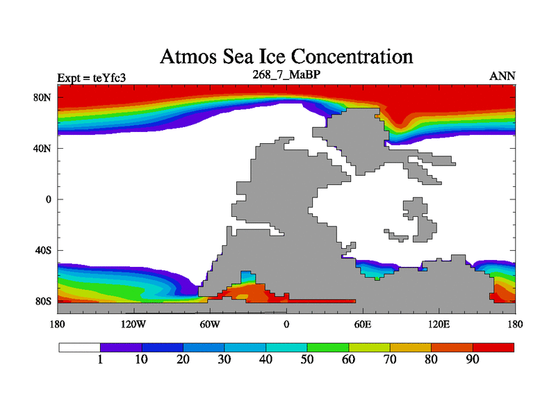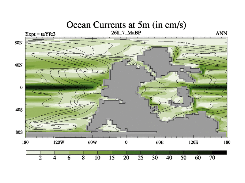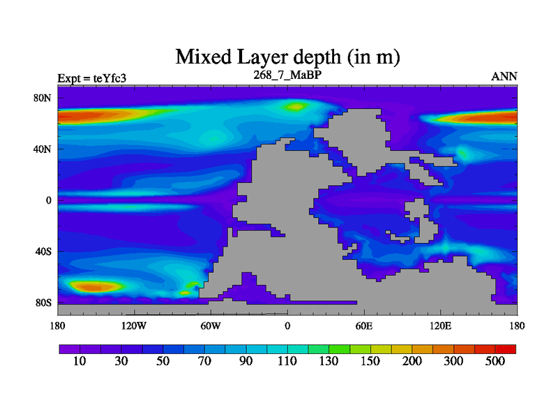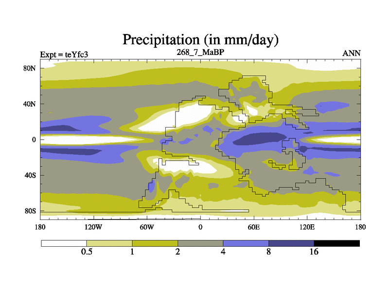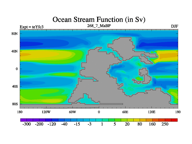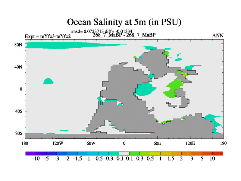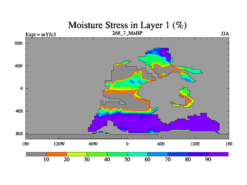 This is the 268.7 Ma simulation using the Scotese palaeogeographies and revised CCN etc. Updated HadCM3L ocean parameters and soil parameters. Also made sure orography gravity wave drag was consistent.