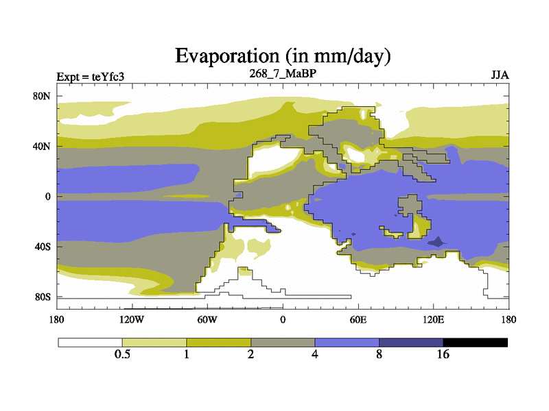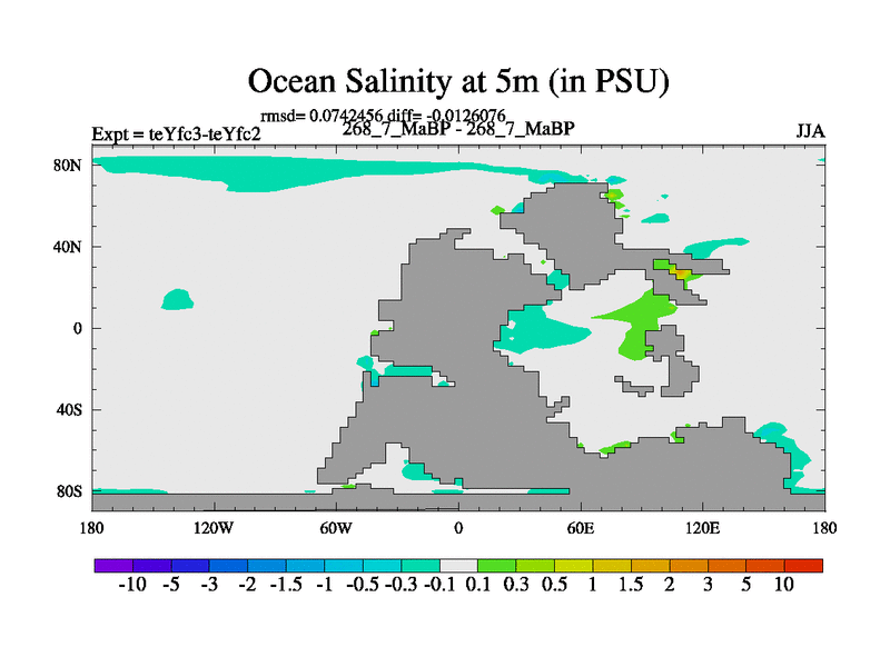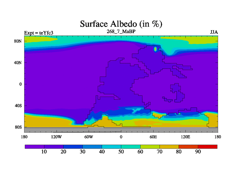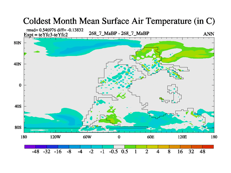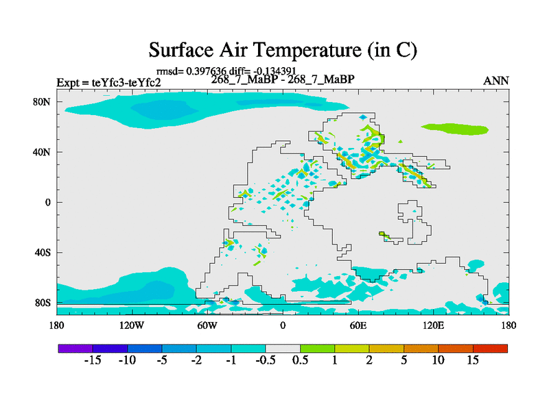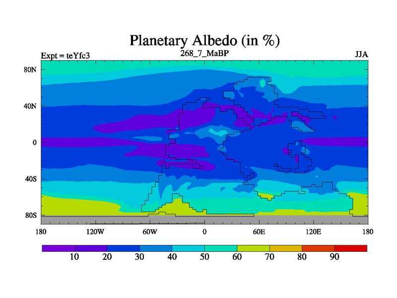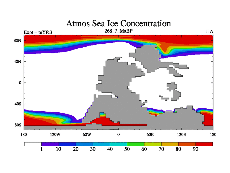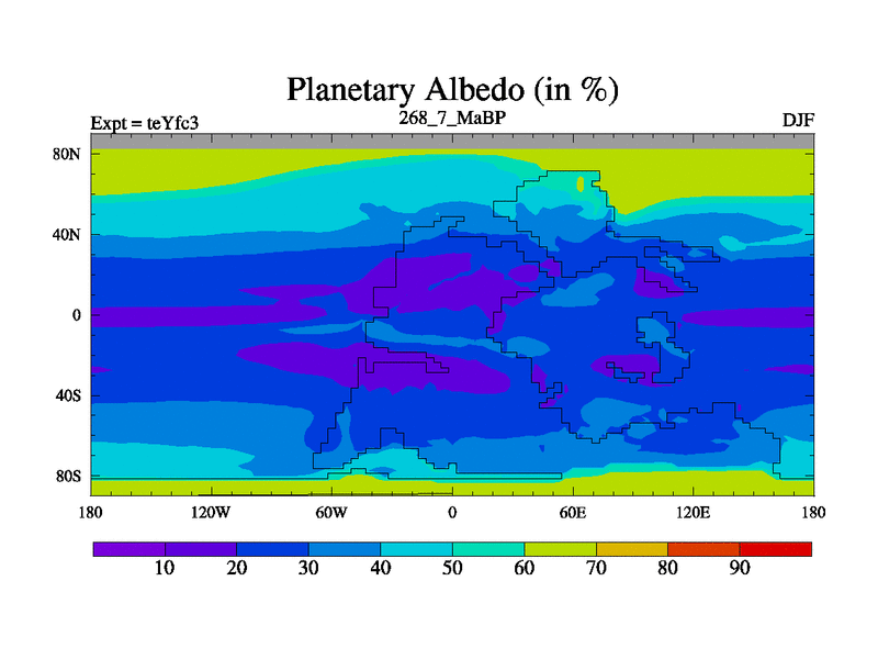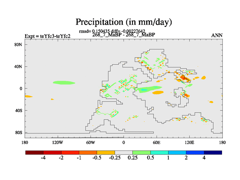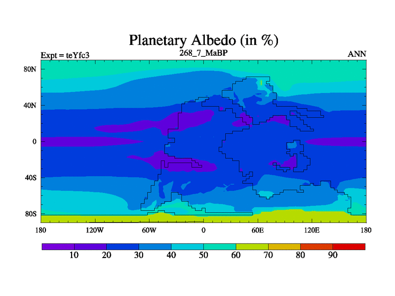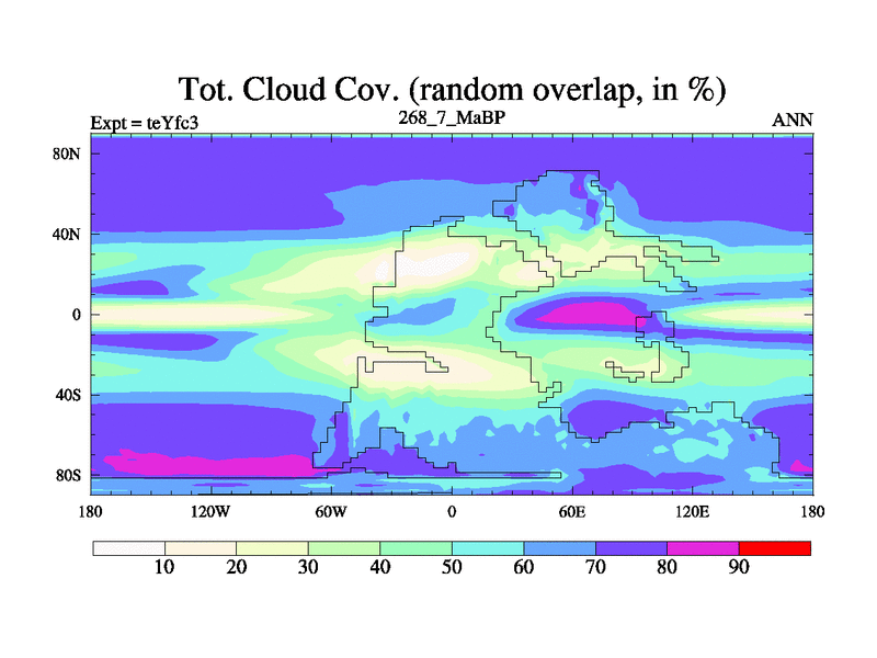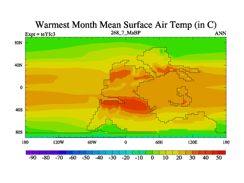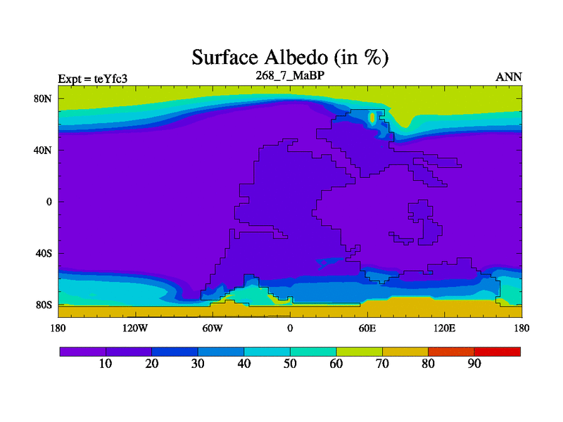 This is the 268.7 Ma simulation using the Scotese palaeogeographies and revised CCN etc. Updated HadCM3L ocean parameters and soil parameters. Also made sure orography gravity wave drag was consistent.