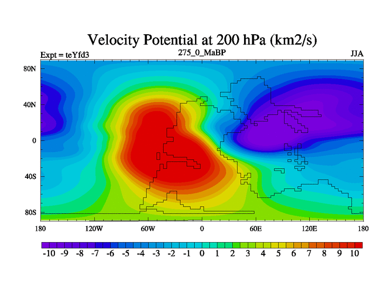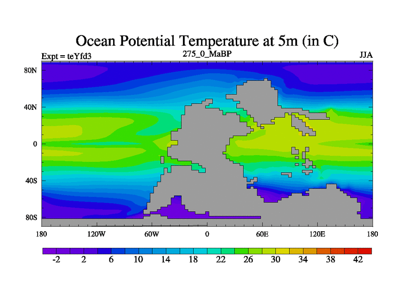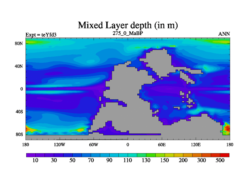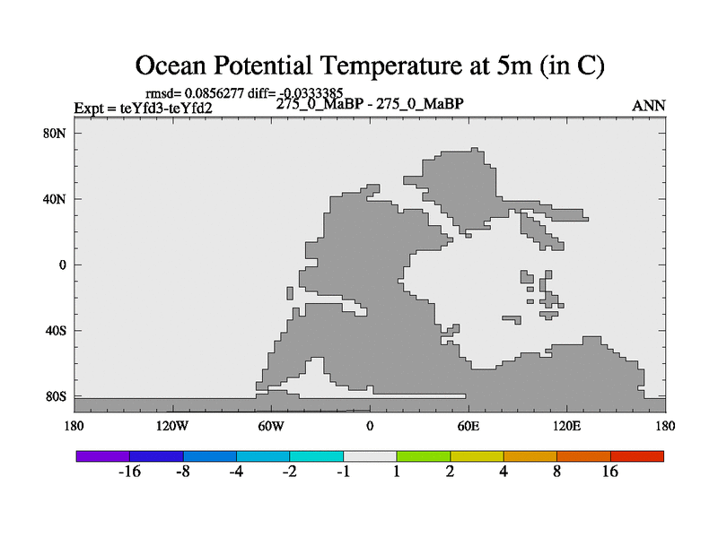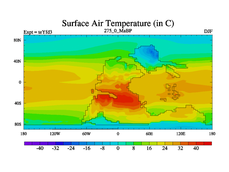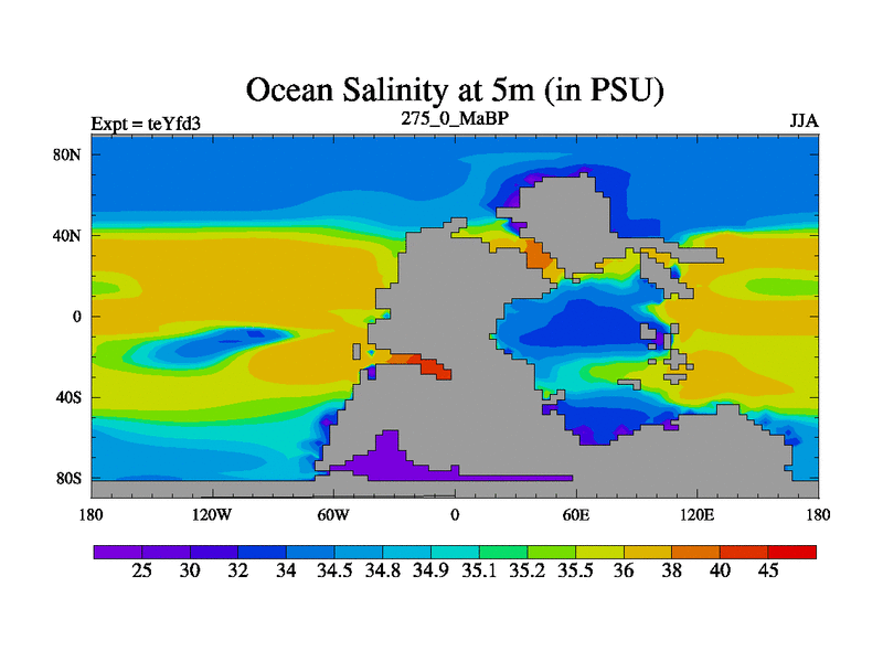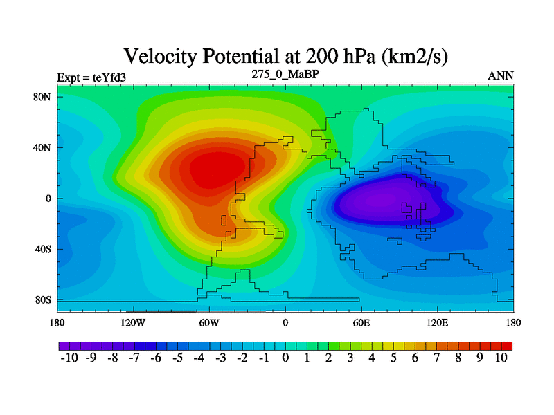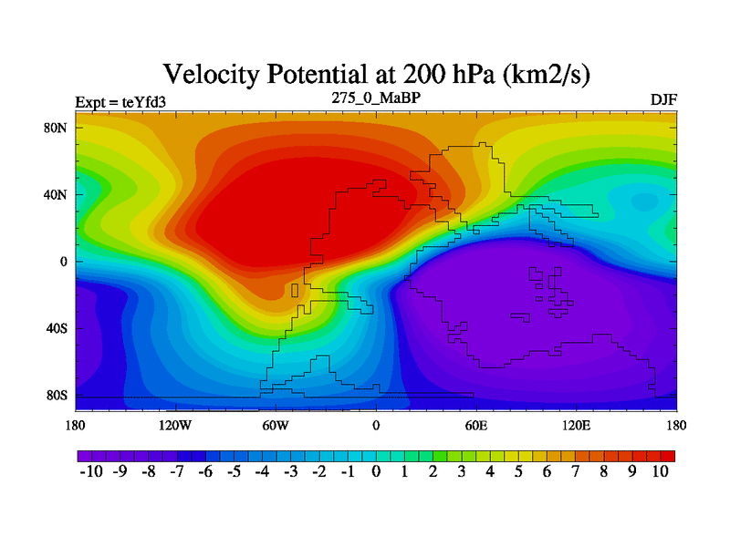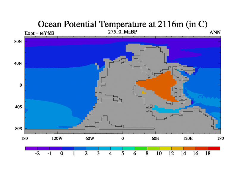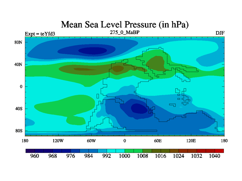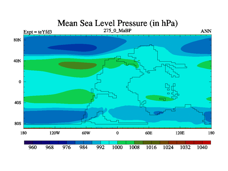 This is the 275.0 Ma simulation using the Scotese palaeogeographies and revised CCN etc. Updated HadCM3L ocean parameters and soil parameters. Also made sure orography gravity wave drag was consistent.