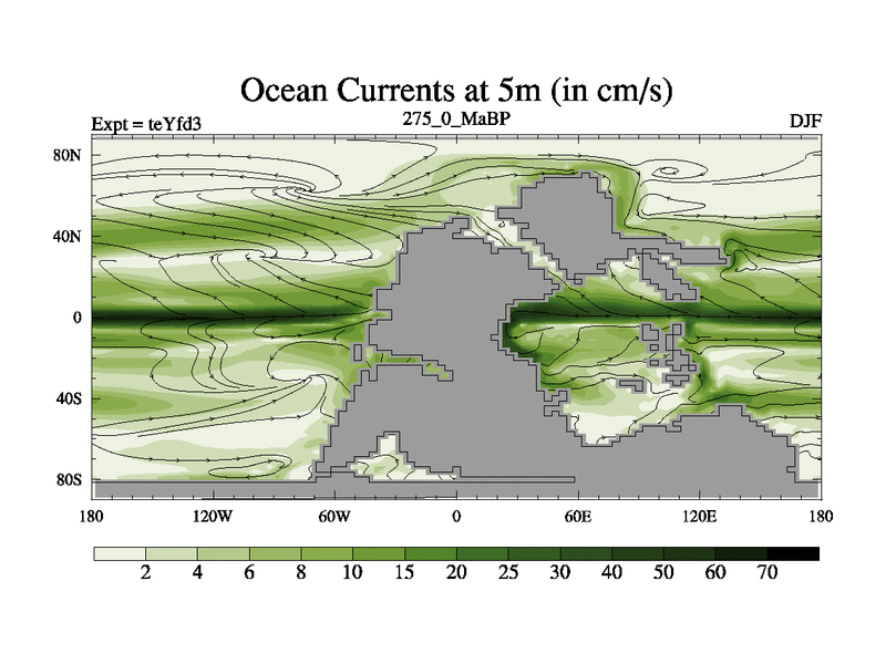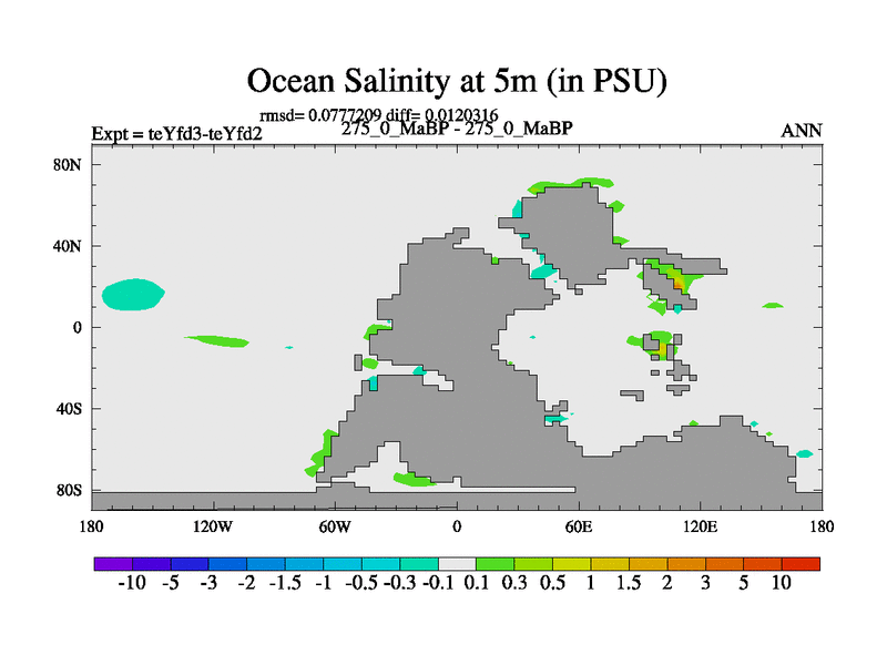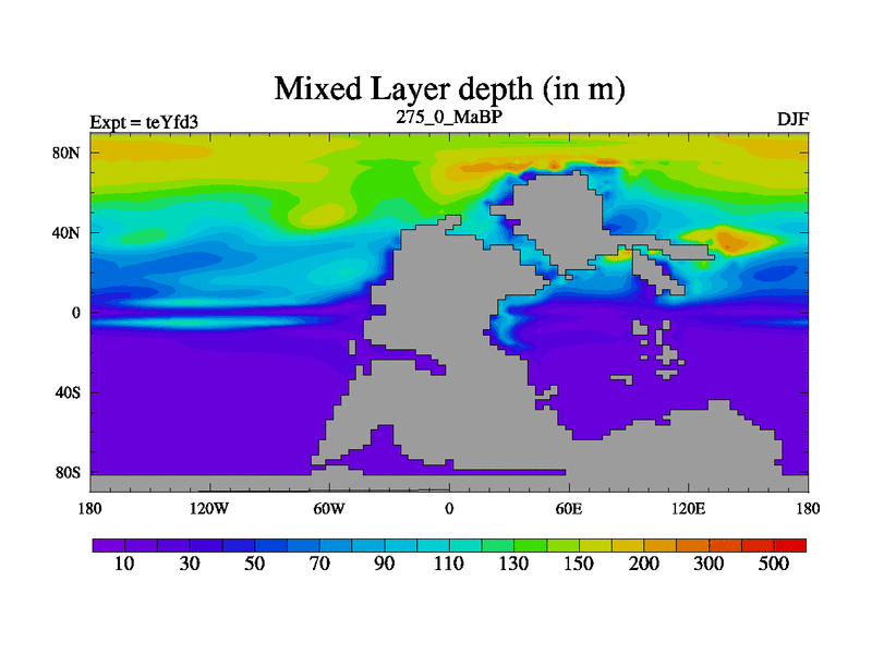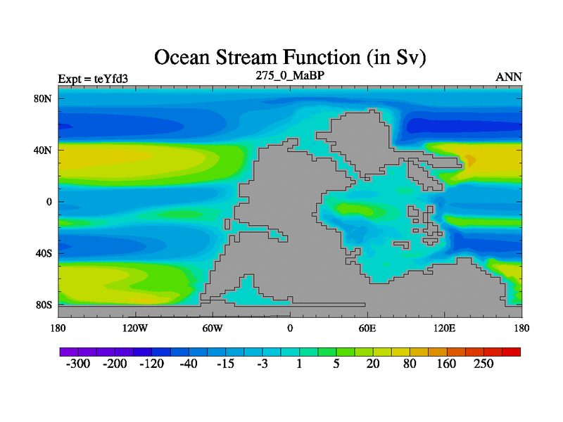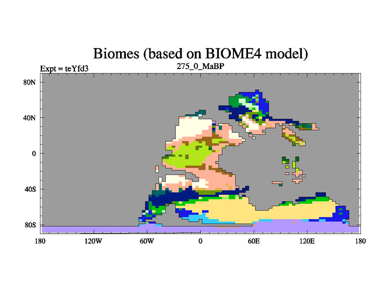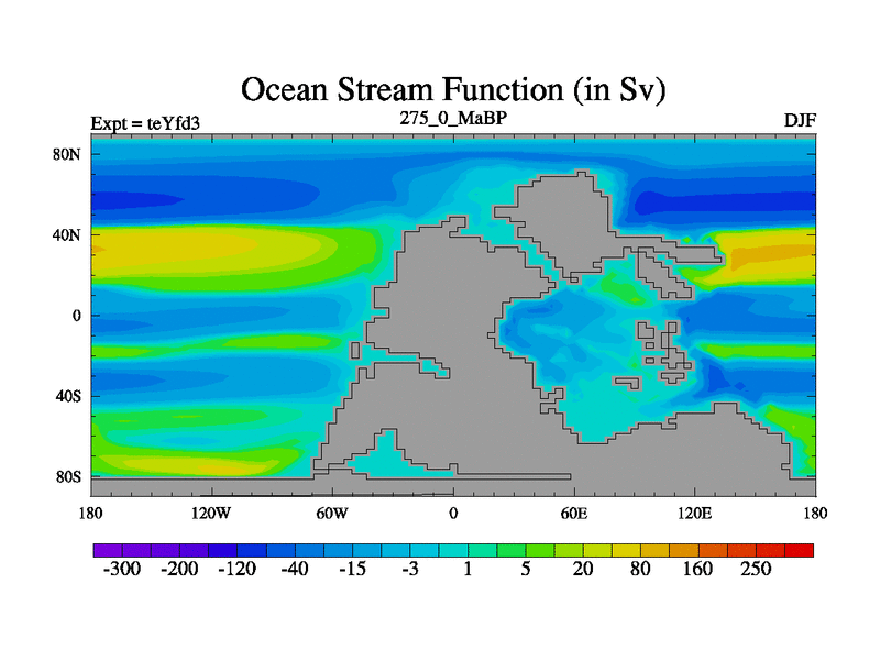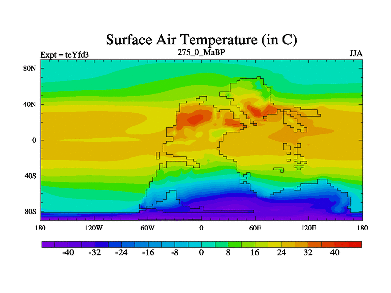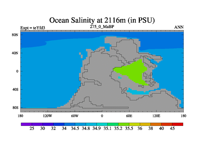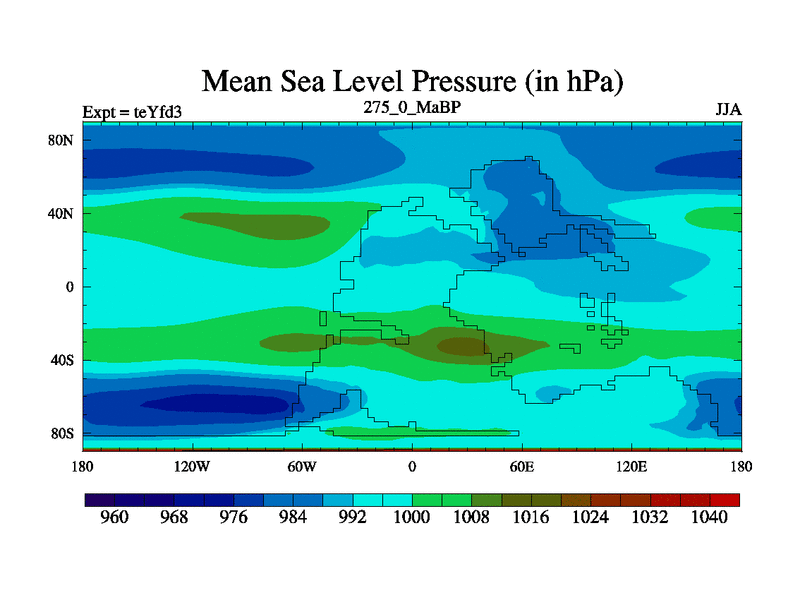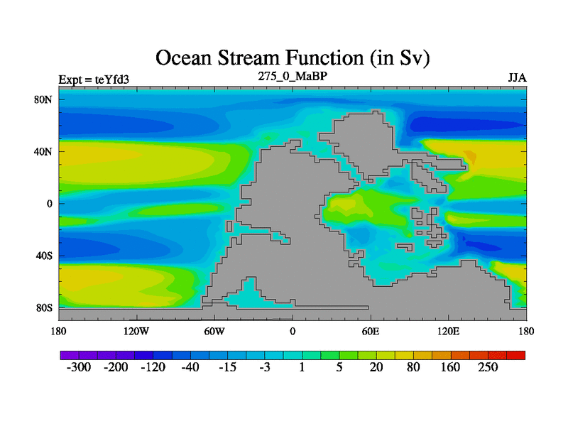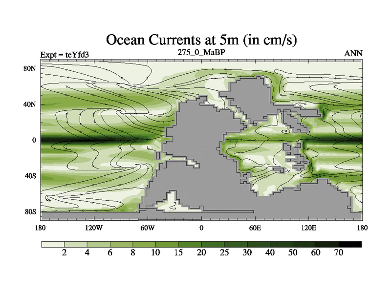 This is the 275.0 Ma simulation using the Scotese palaeogeographies and revised CCN etc. Updated HadCM3L ocean parameters and soil parameters. Also made sure orography gravity wave drag was consistent.