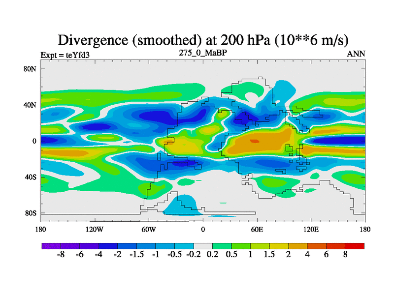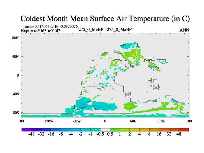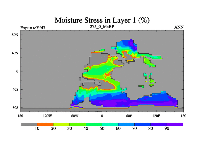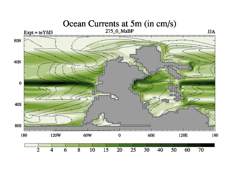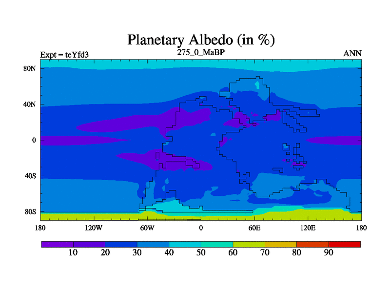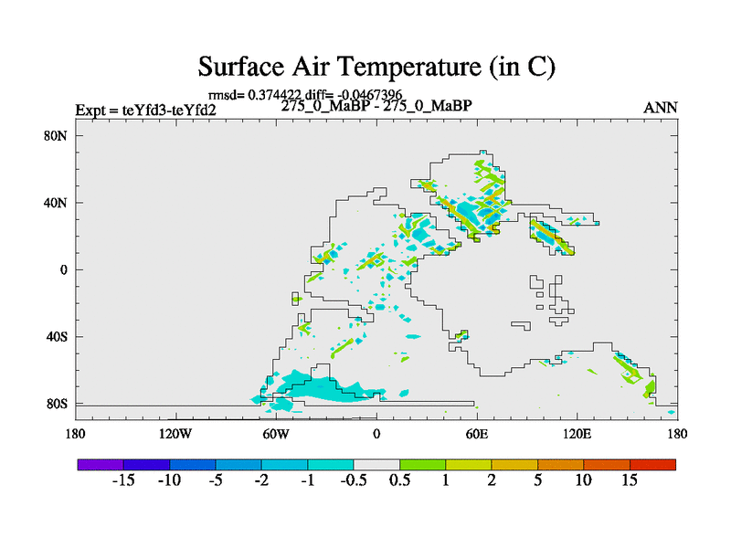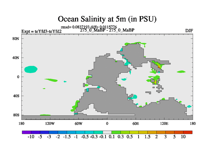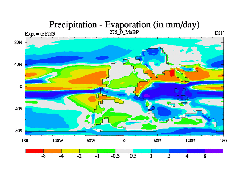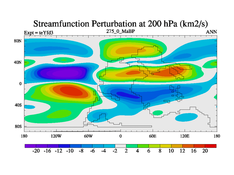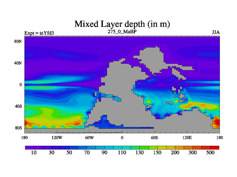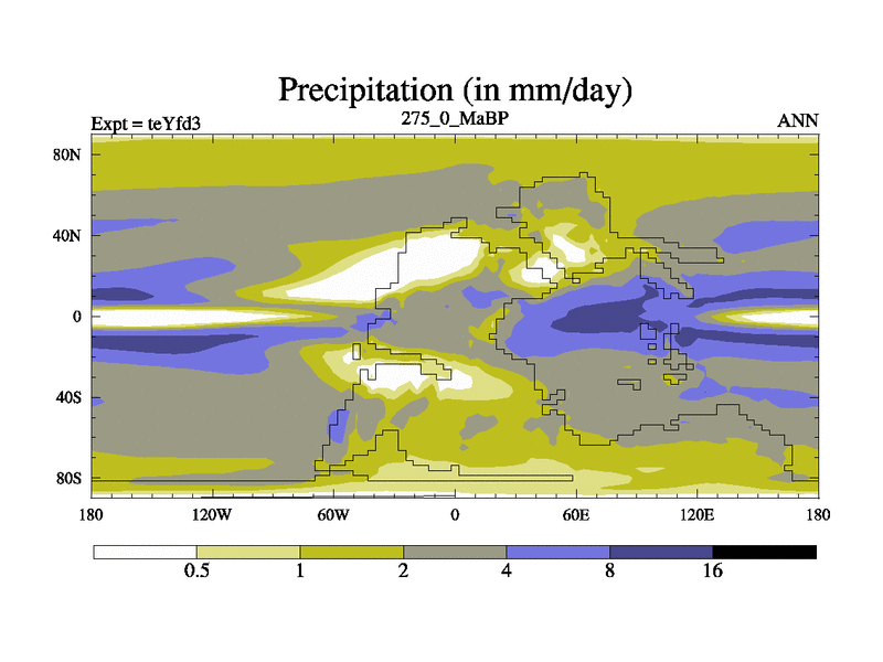 This is the 275.0 Ma simulation using the Scotese palaeogeographies and revised CCN etc. Updated HadCM3L ocean parameters and soil parameters. Also made sure orography gravity wave drag was consistent.