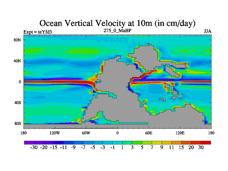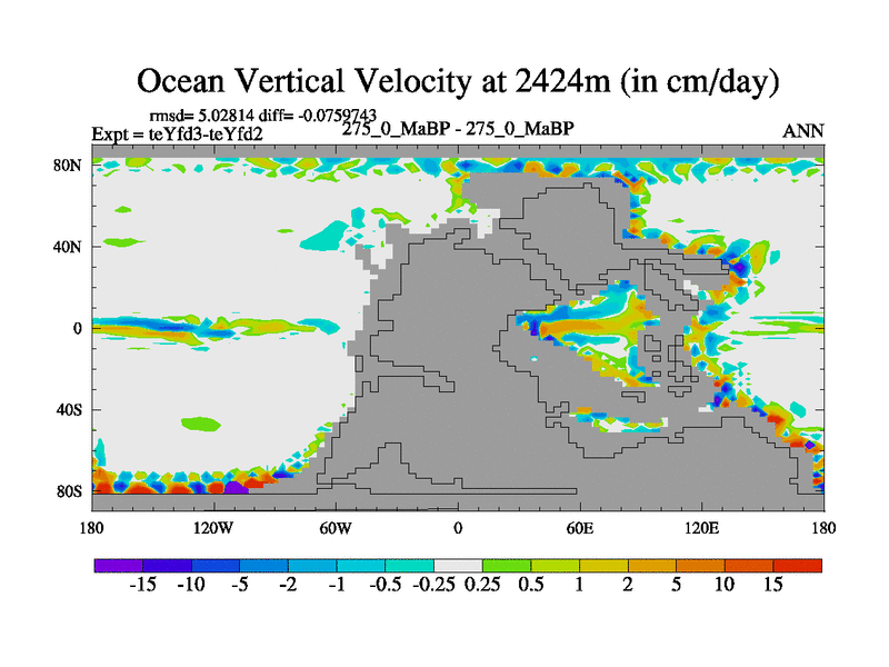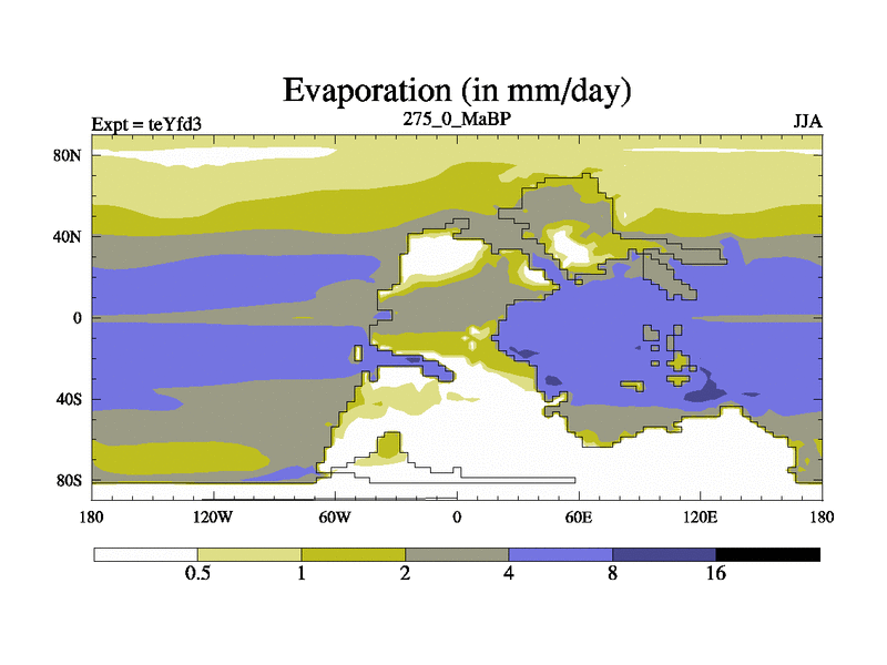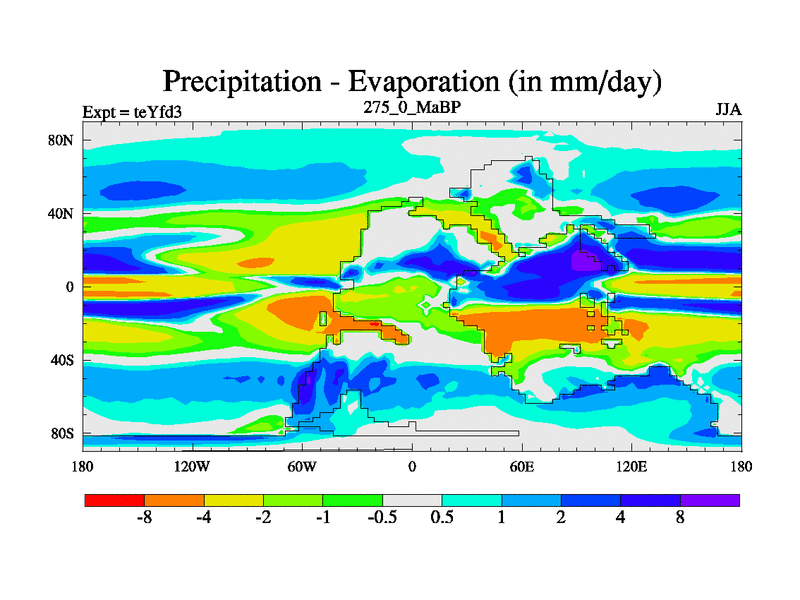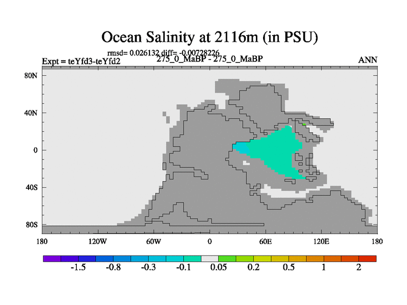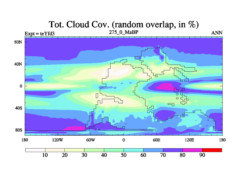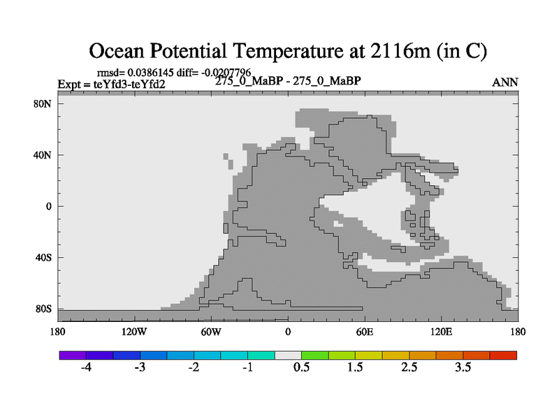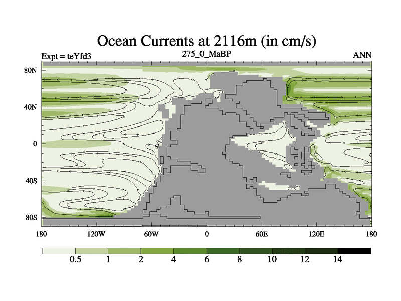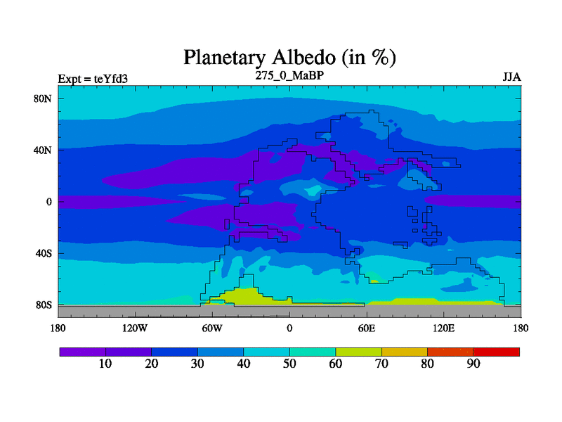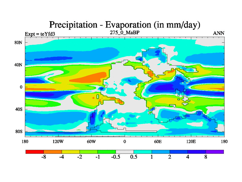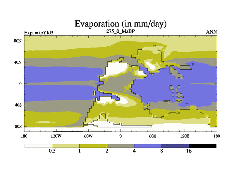 This is the 275.0 Ma simulation using the Scotese palaeogeographies and revised CCN etc. Updated HadCM3L ocean parameters and soil parameters. Also made sure orography gravity wave drag was consistent.