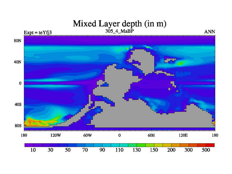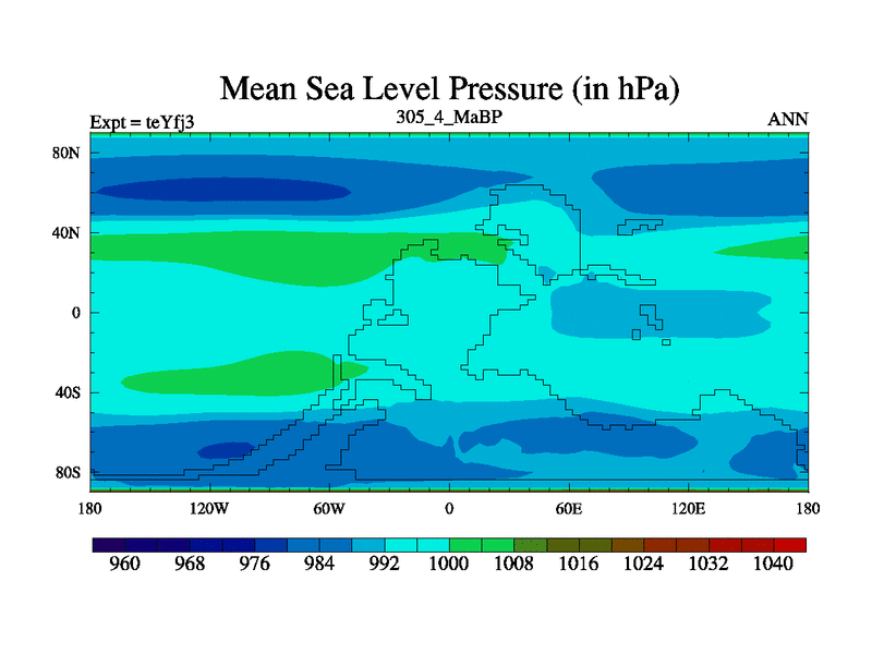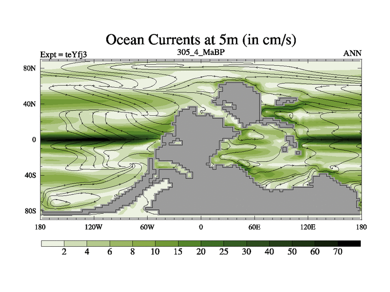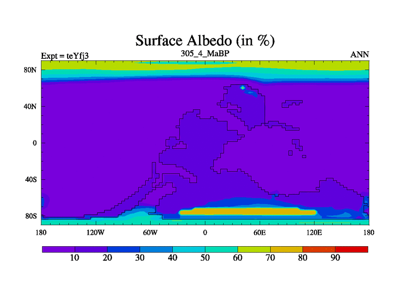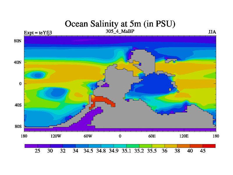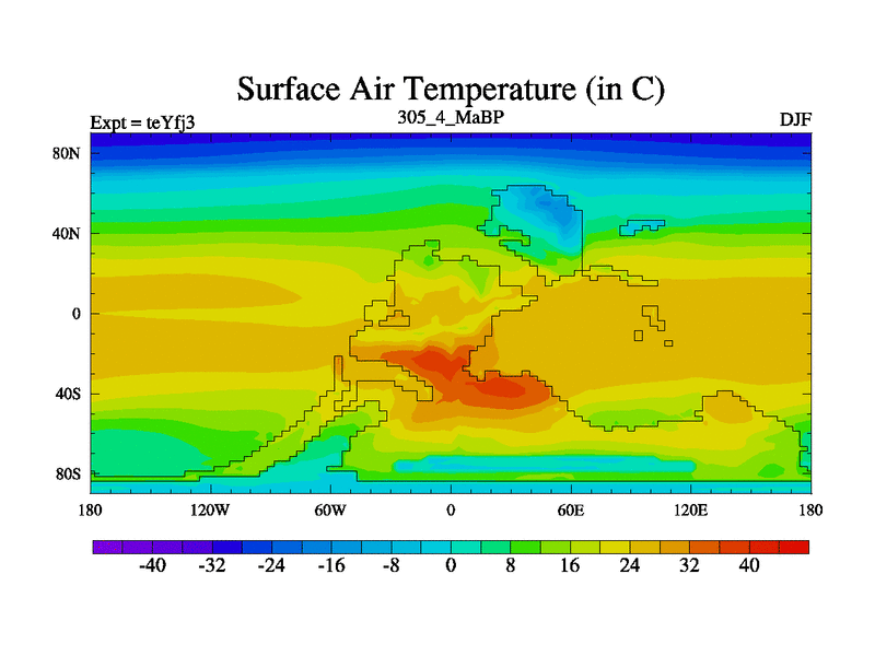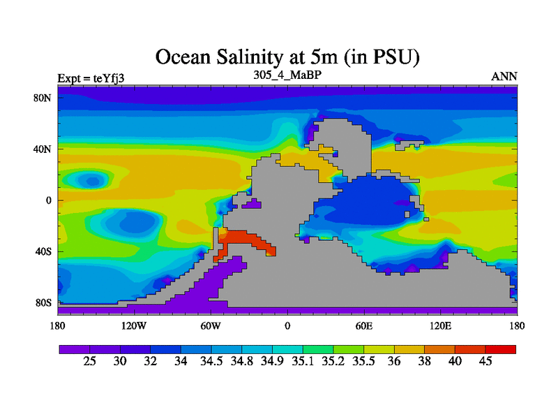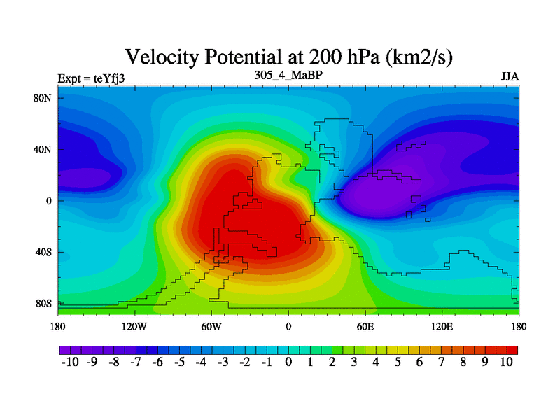 This is the 305.4 Ma simulation using the Scotese palaeogeographies and revised CCN etc. Updated HadCM3L ocean parameters and soil parameters. Also made sure orography gravity wave drag was consistent.
