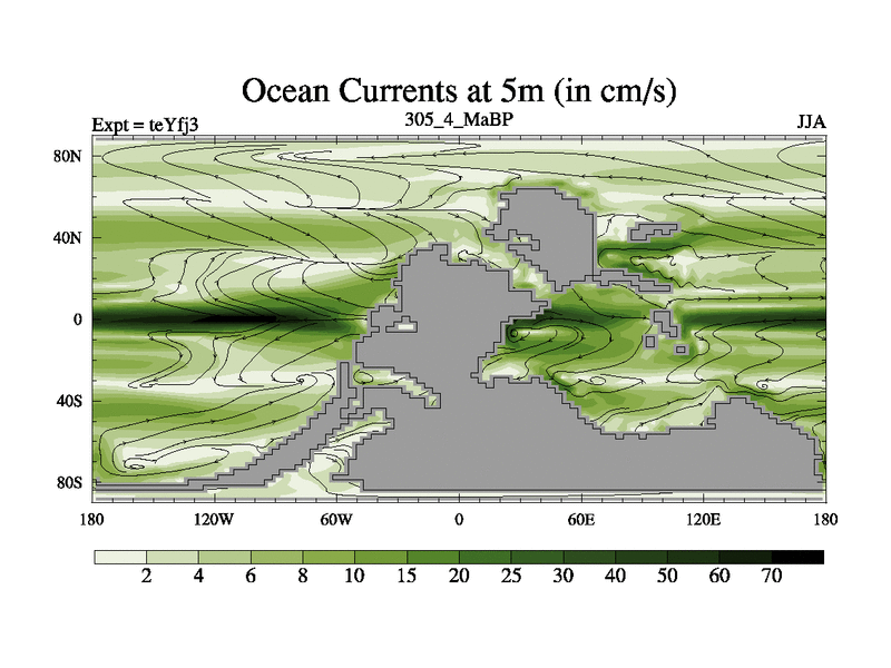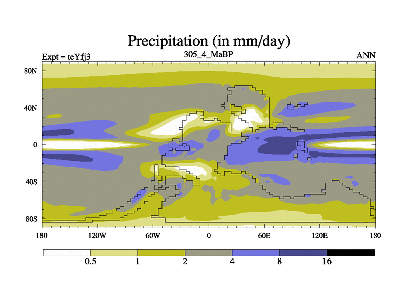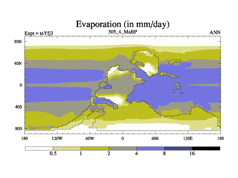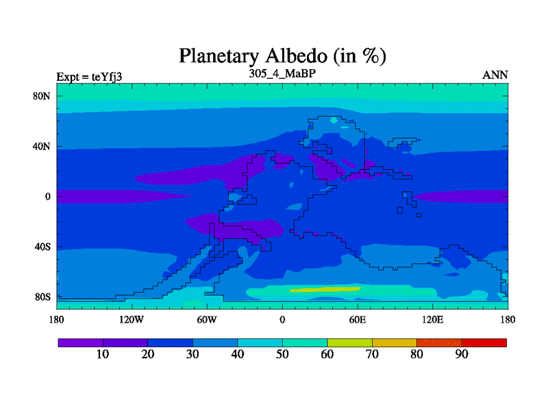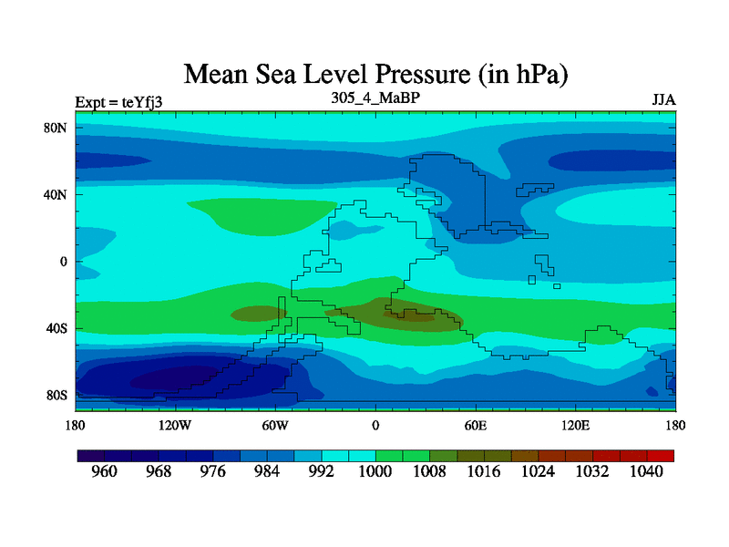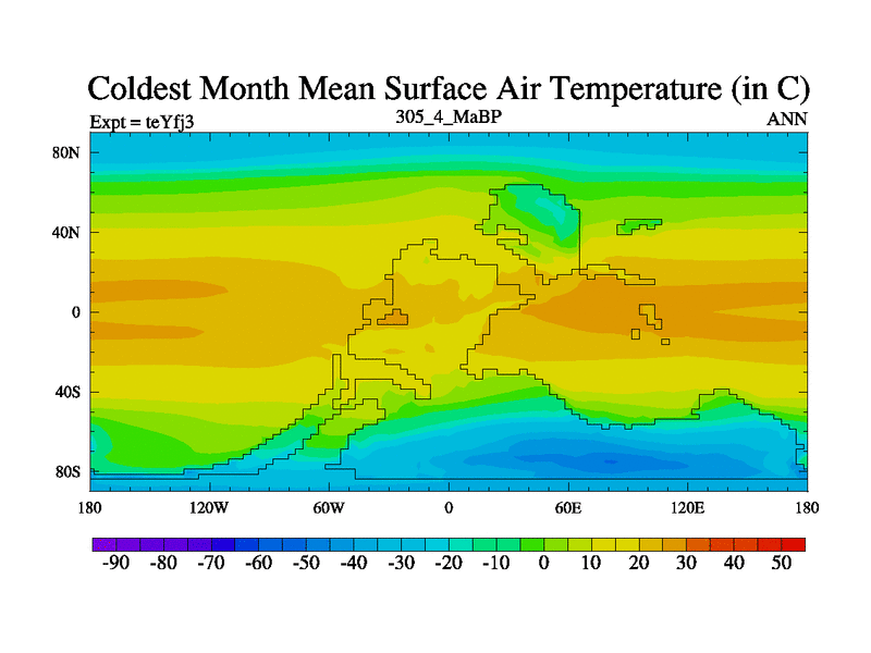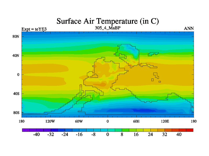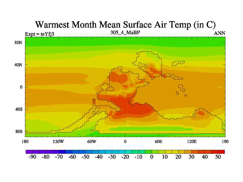This is the 305.4 Ma simulation using the Scotese palaeogeographies and revised CCN etc. Updated HadCM3L ocean parameters and soil parameters. Also made sure orography gravity wave drag was consistent.