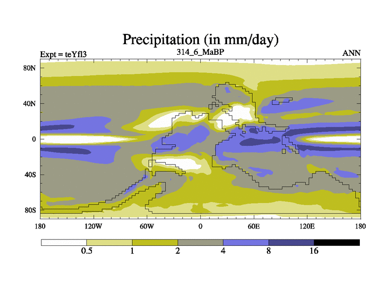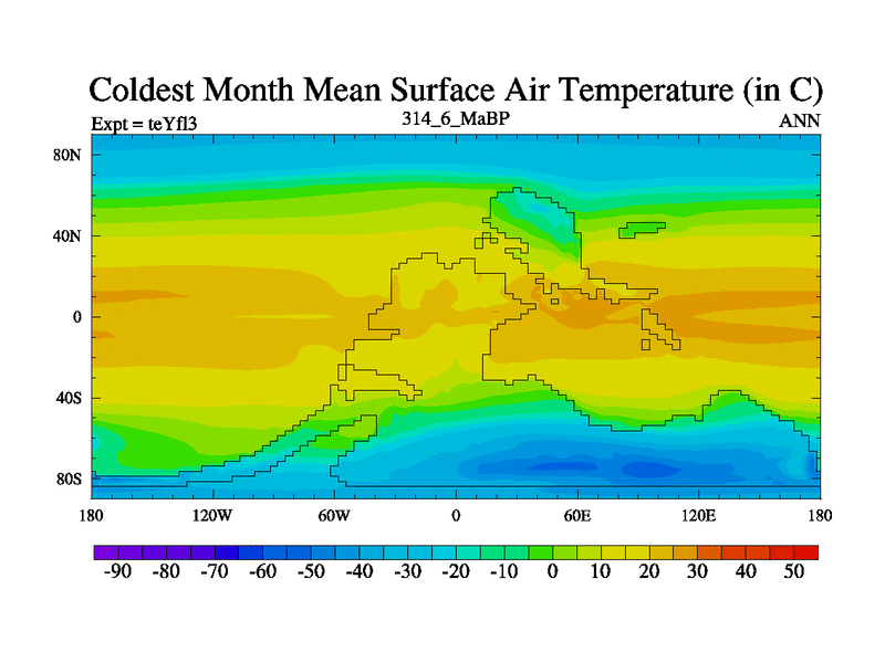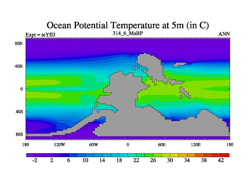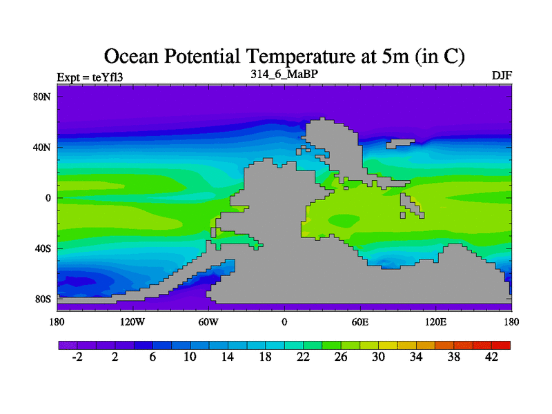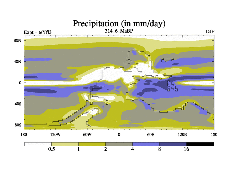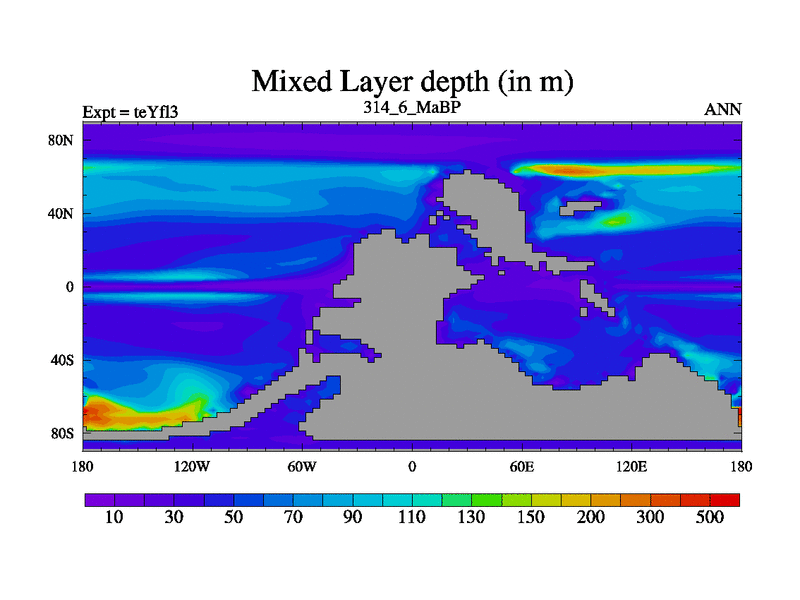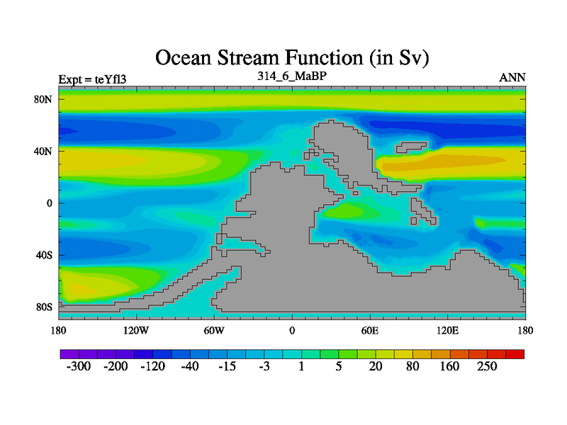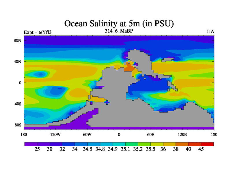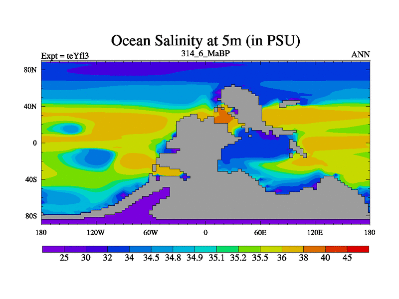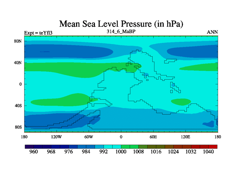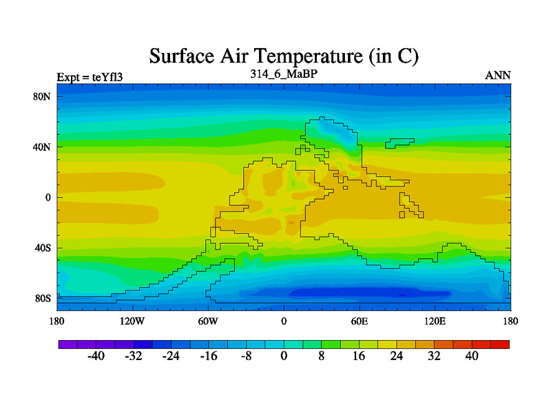 This is the 314.6 Ma simulation using the Scotese palaeogeographies and revised CCN etc. Updated HadCM3L ocean parameters and soil parameters. Also made sure orography gravity wave drag was consistent.