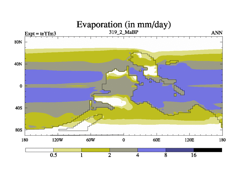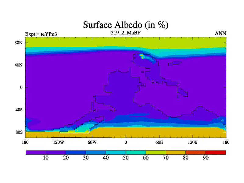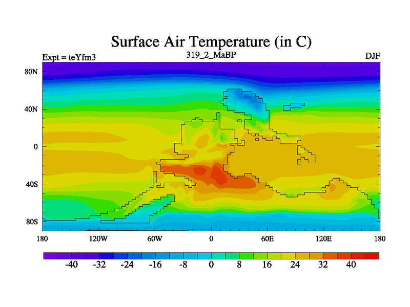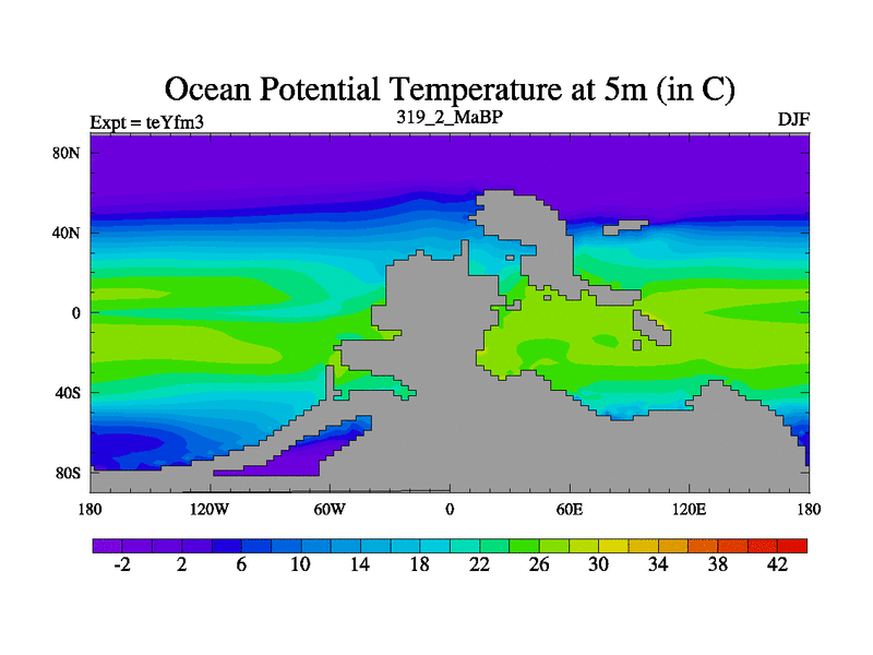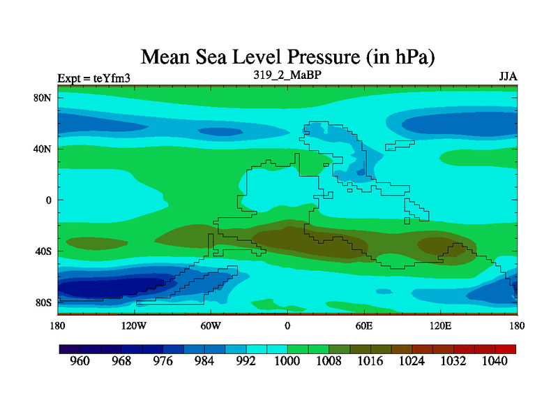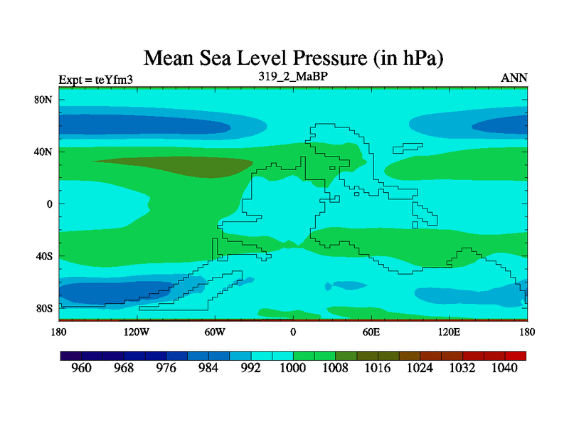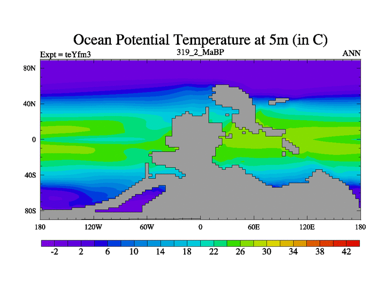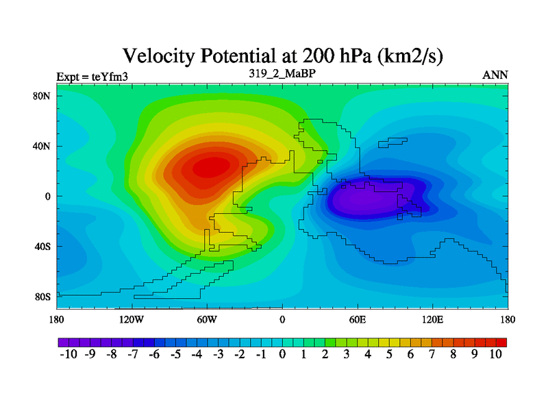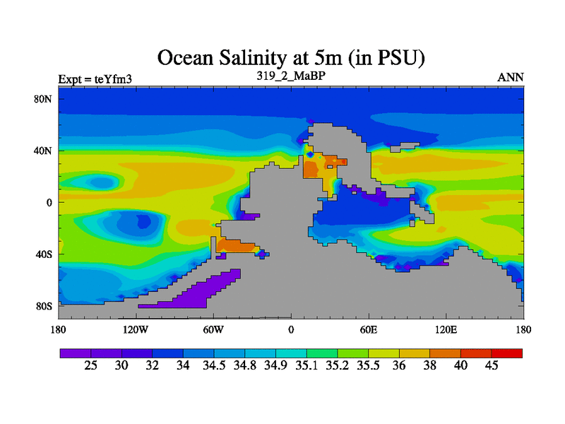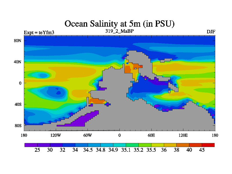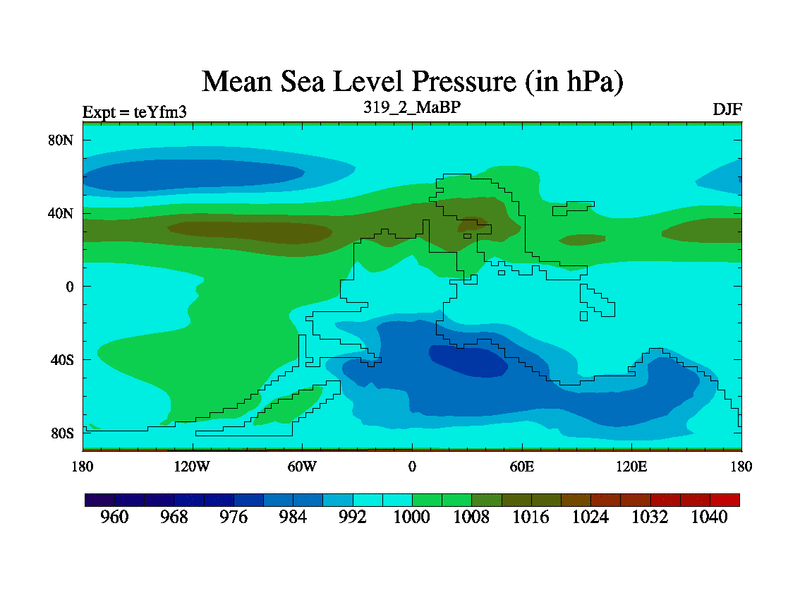 This is the 319.2 Ma simulation using the Scotese palaeogeographies and revised CCN etc. Updated HadCM3L ocean parameters and soil parameters. Also made sure orography gravity wave drag was consistent.