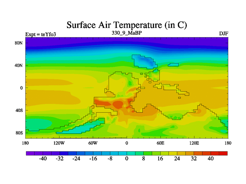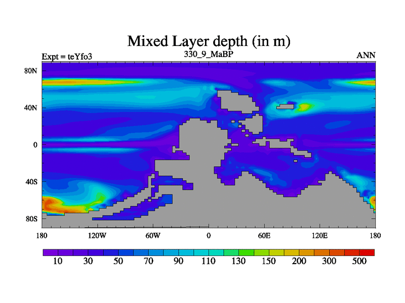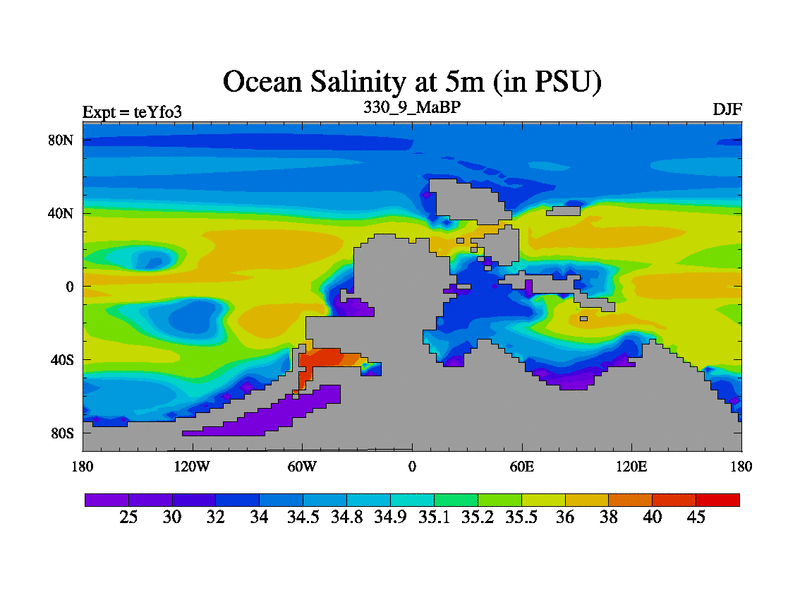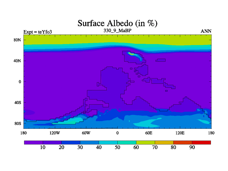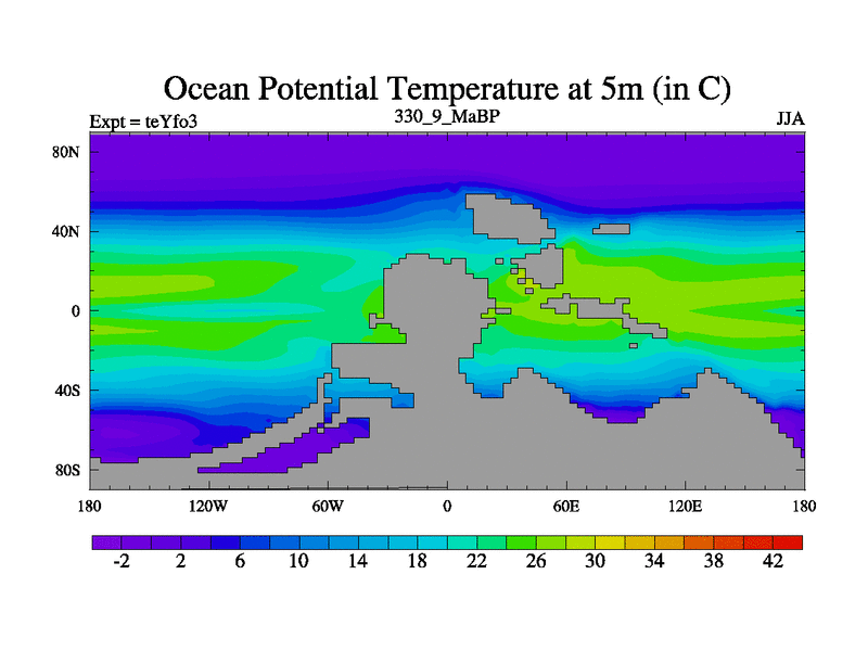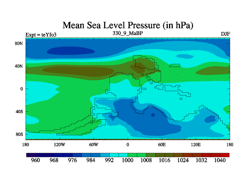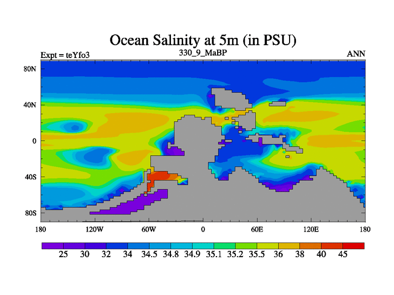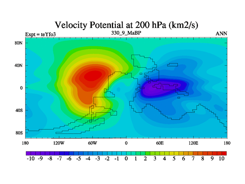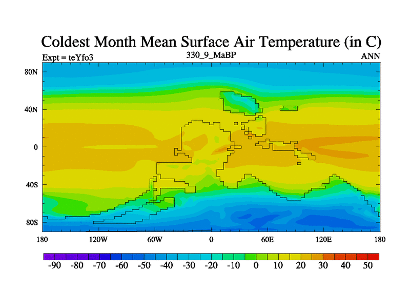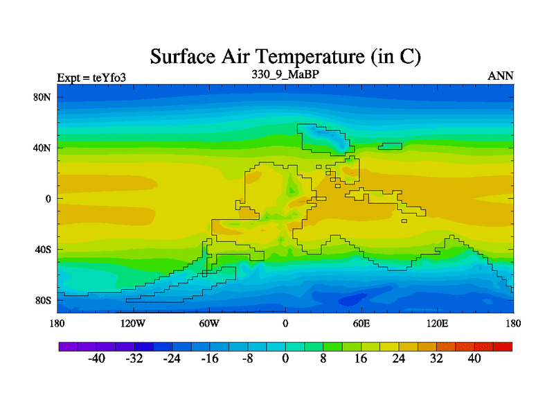 This is the 330.9 Ma simulation using the Scotese palaeogeographies and revised CCN etc. Updated HadCM3L ocean parameters and soil parameters. Also made sure orography gravity wave drag was consistent.