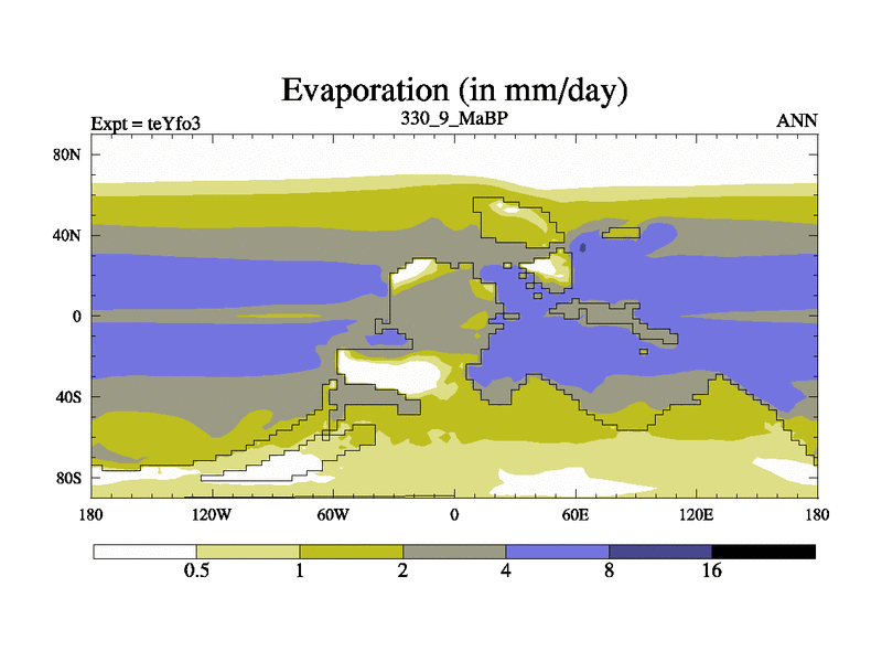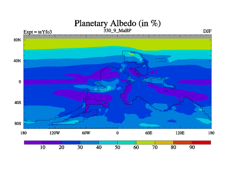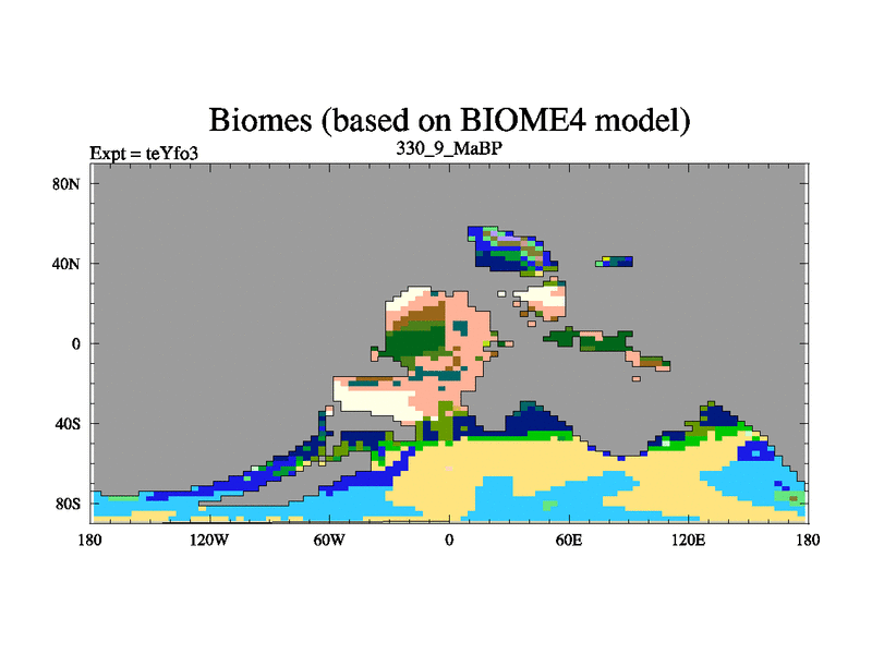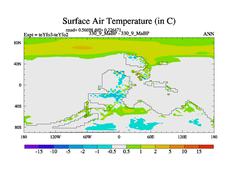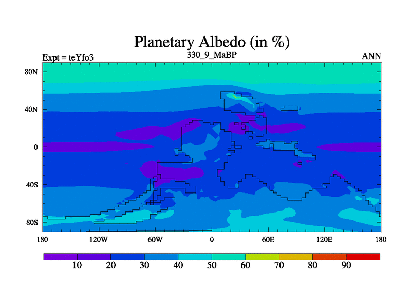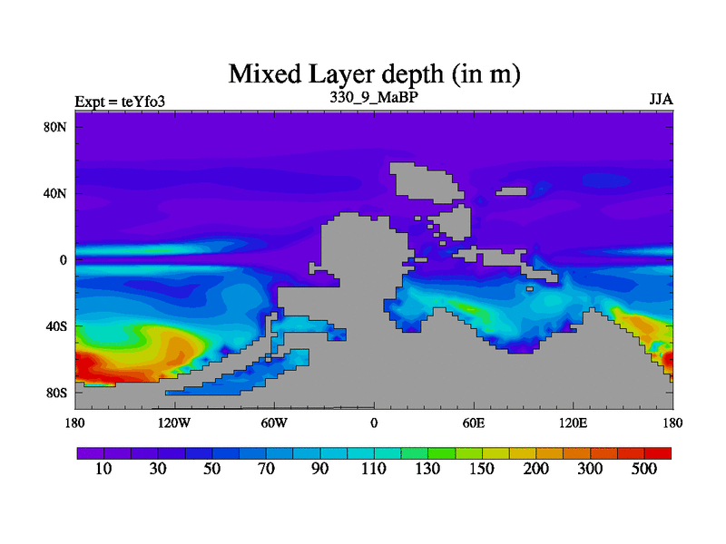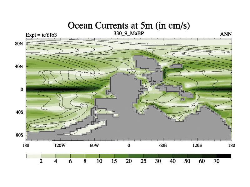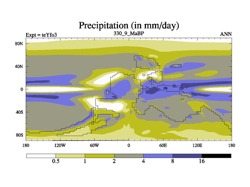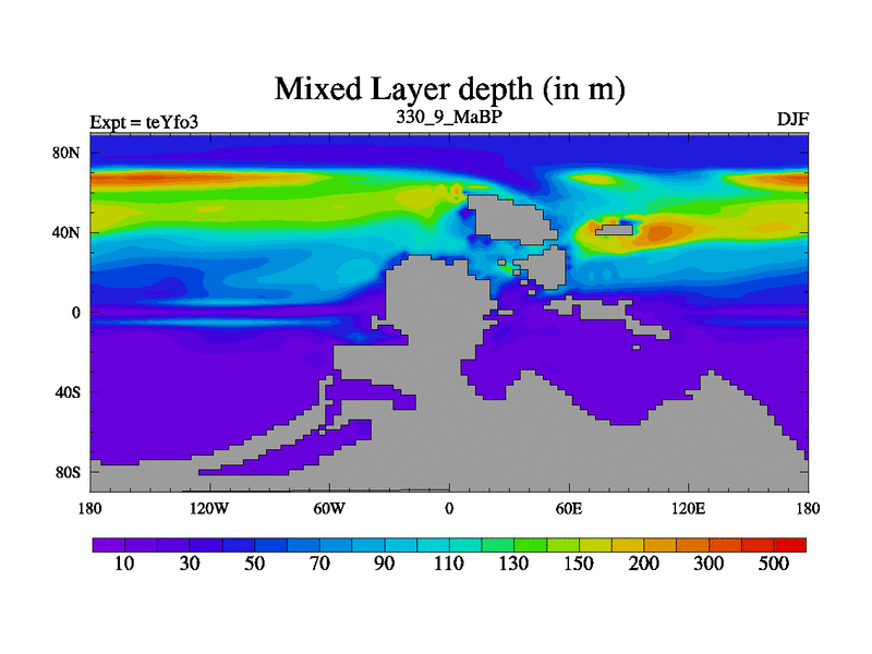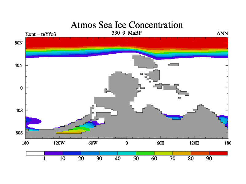 This is the 330.9 Ma simulation using the Scotese palaeogeographies and revised CCN etc. Updated HadCM3L ocean parameters and soil parameters. Also made sure orography gravity wave drag was consistent.