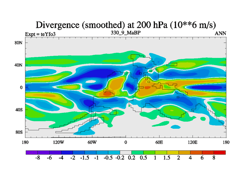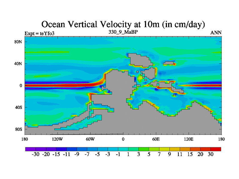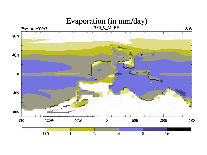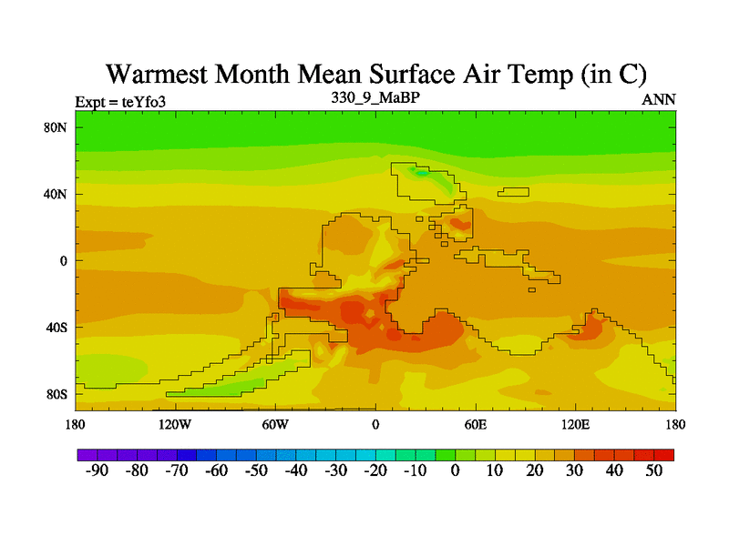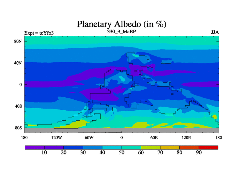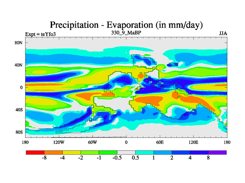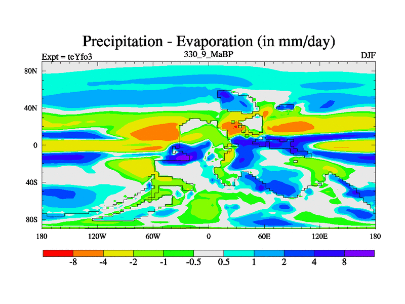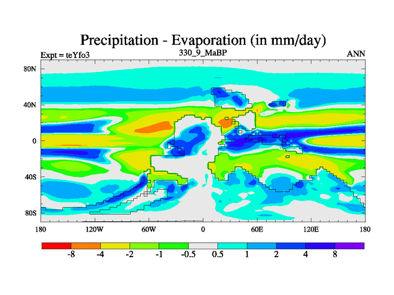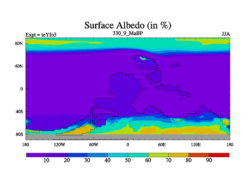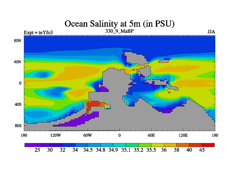 This is the 330.9 Ma simulation using the Scotese palaeogeographies and revised CCN etc. Updated HadCM3L ocean parameters and soil parameters. Also made sure orography gravity wave drag was consistent.