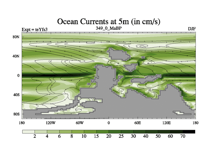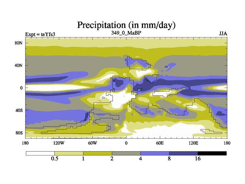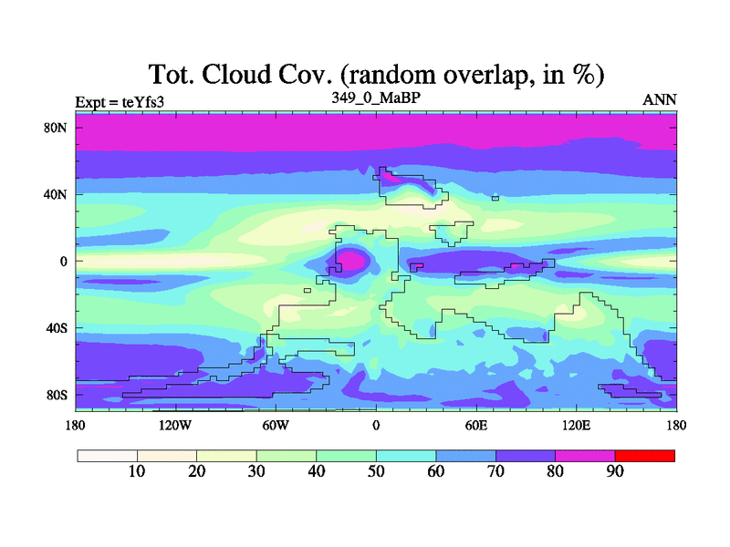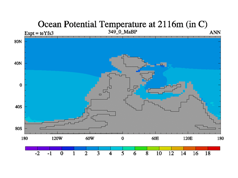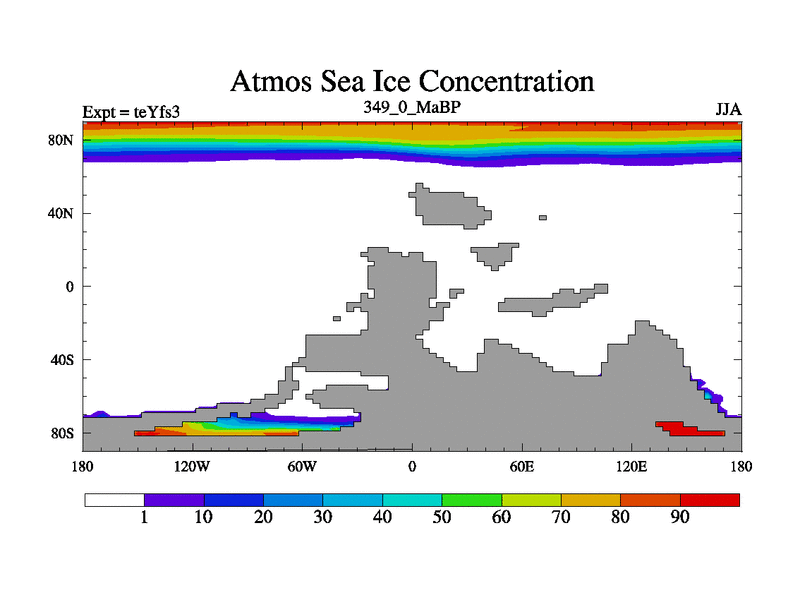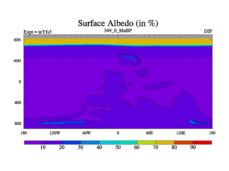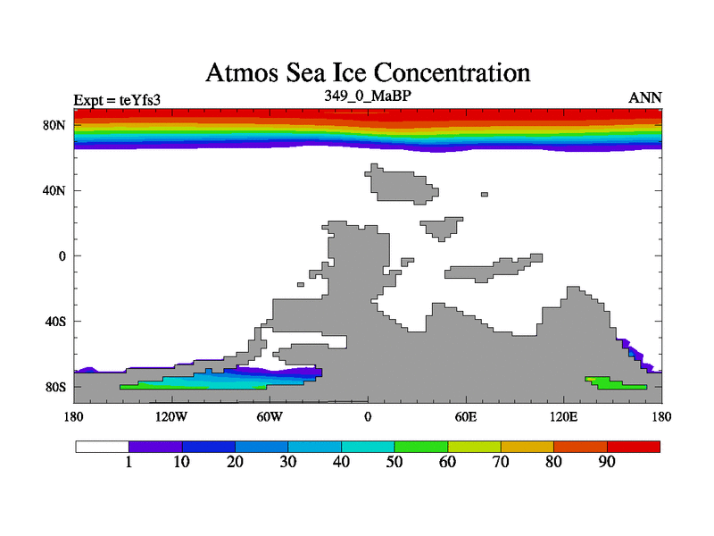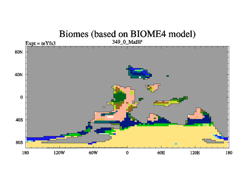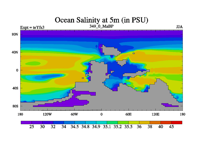 This is the 349.0 Ma simulation using the Scotese palaeogeographies and revised CCN etc. Updated HadCM3L ocean parameters and soil parameters. Also made sure orography gravity wave drag was consistent.