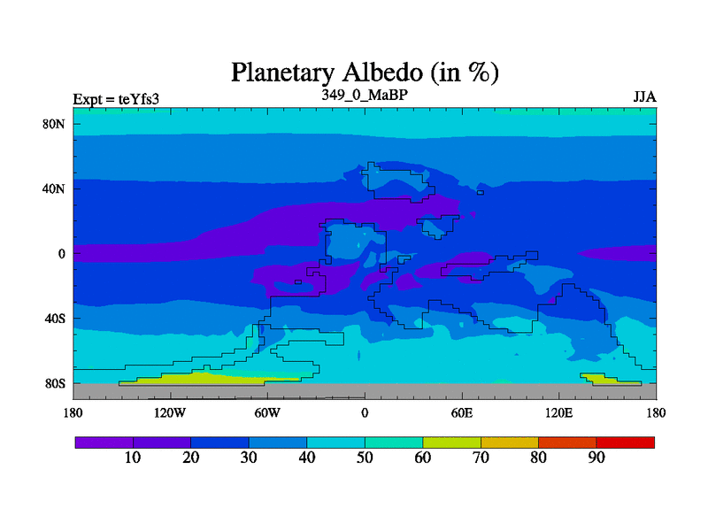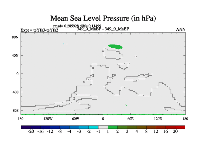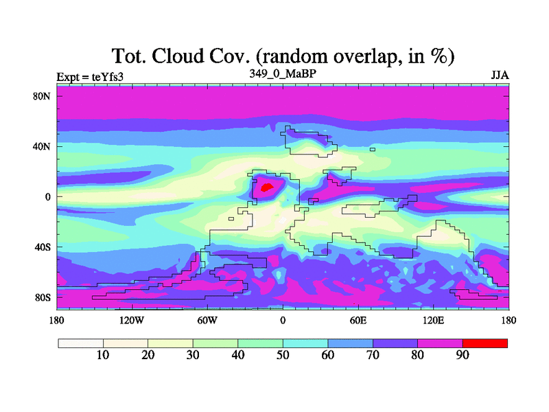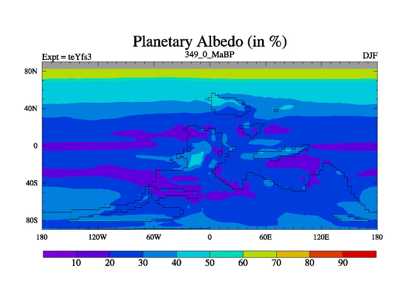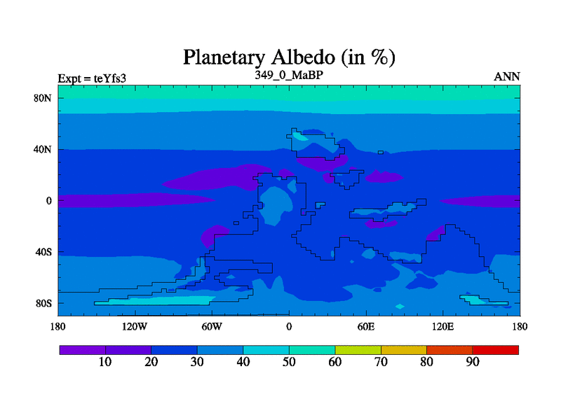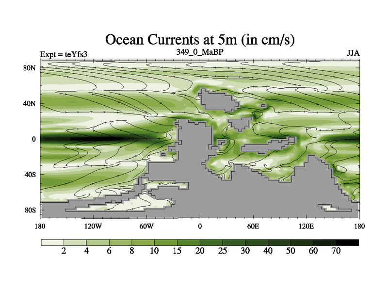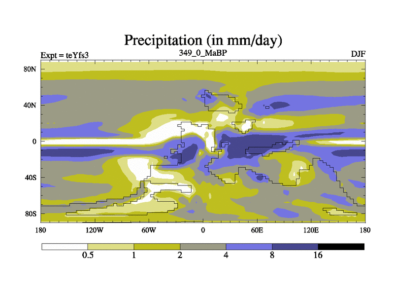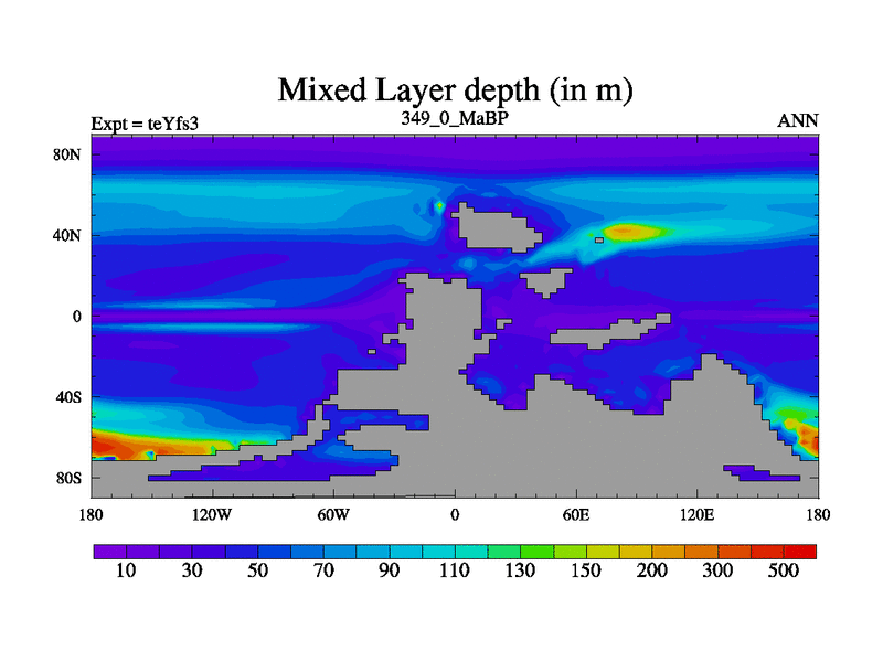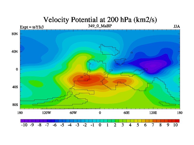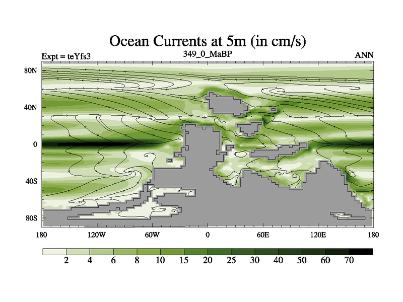 This is the 349.0 Ma simulation using the Scotese palaeogeographies and revised CCN etc. Updated HadCM3L ocean parameters and soil parameters. Also made sure orography gravity wave drag was consistent.