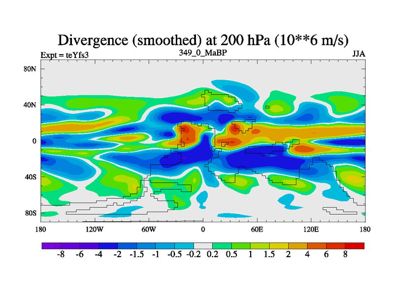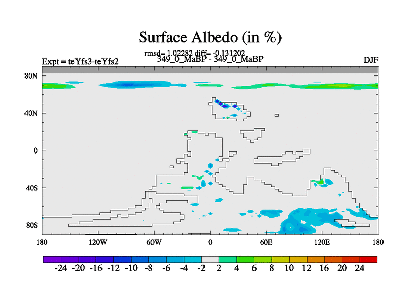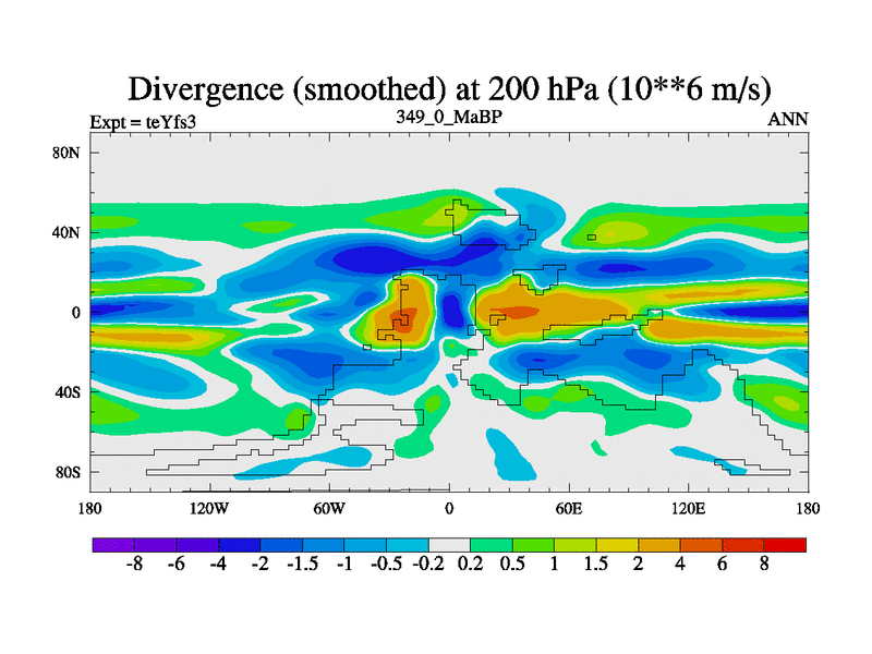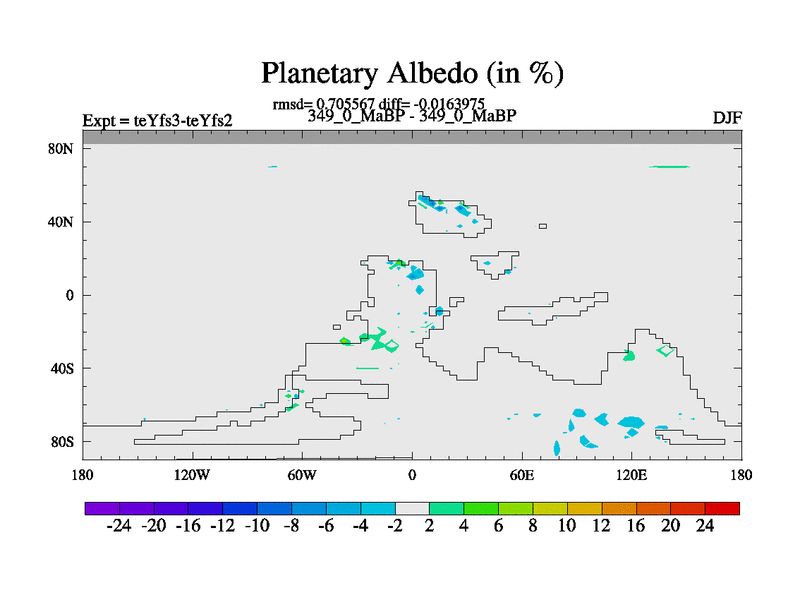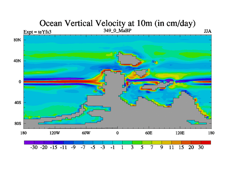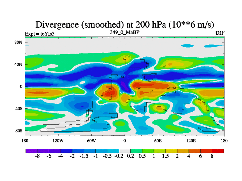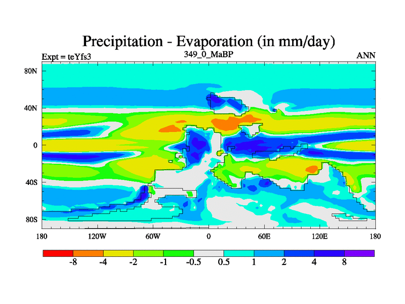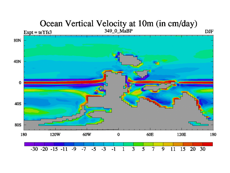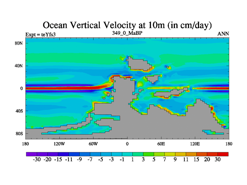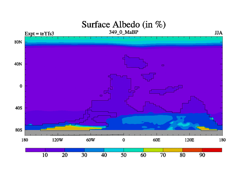 This is the 349.0 Ma simulation using the Scotese palaeogeographies and revised CCN etc. Updated HadCM3L ocean parameters and soil parameters. Also made sure orography gravity wave drag was consistent.