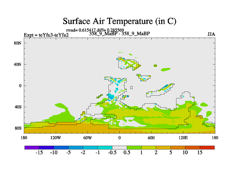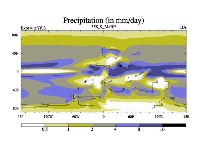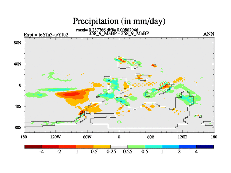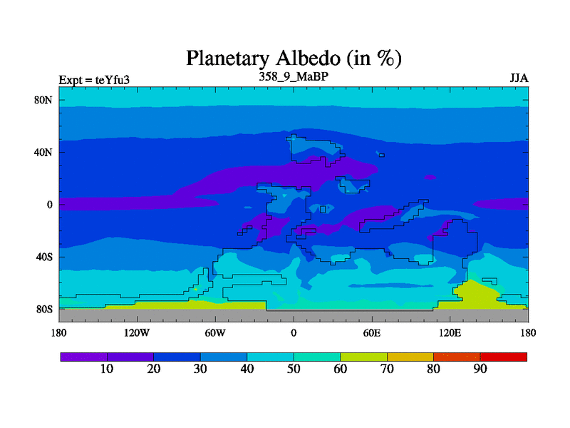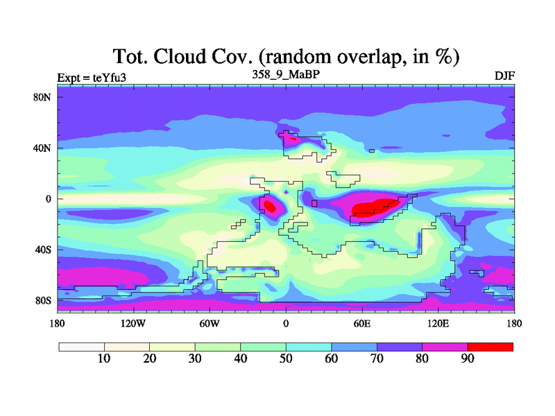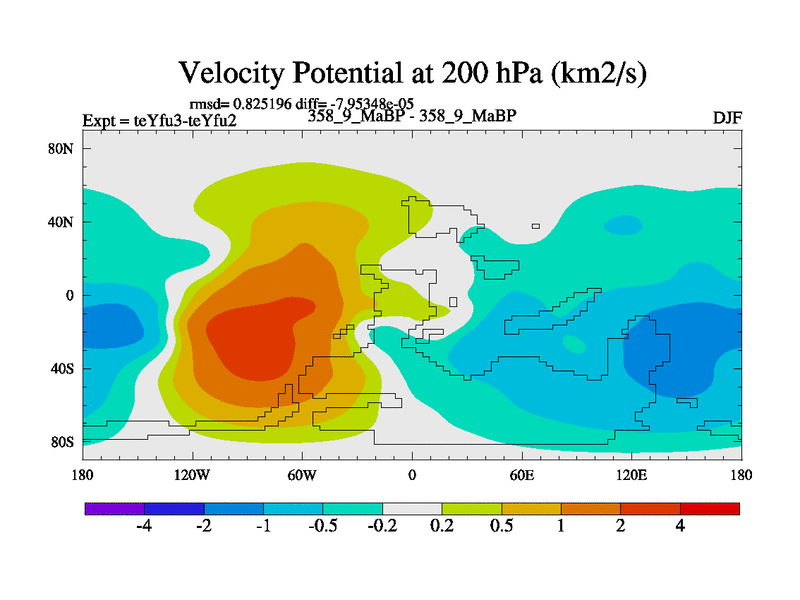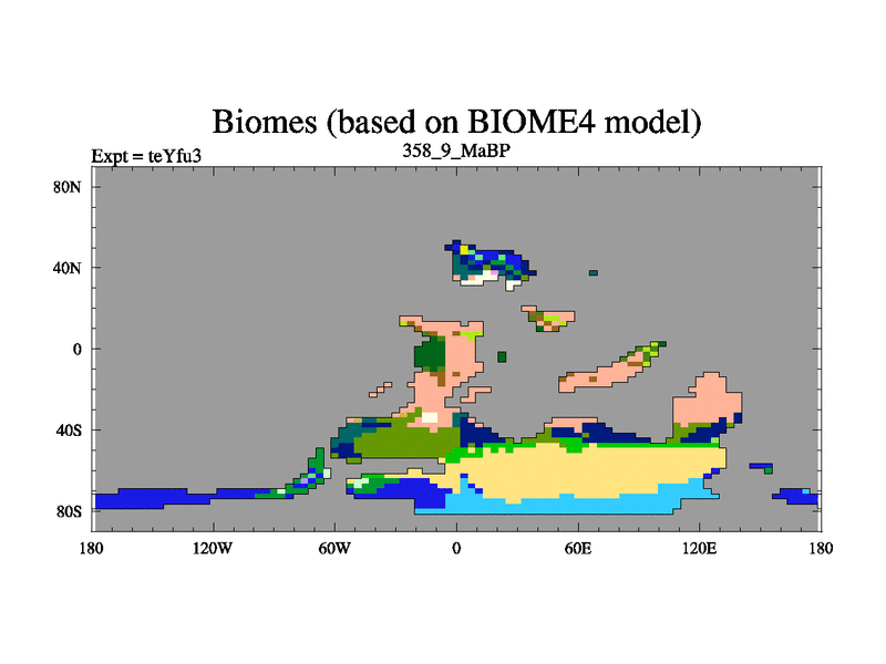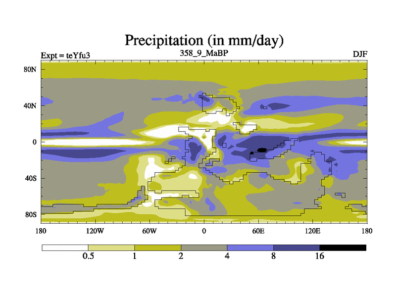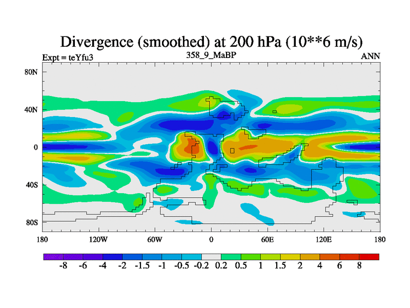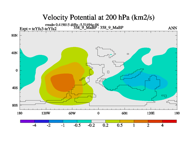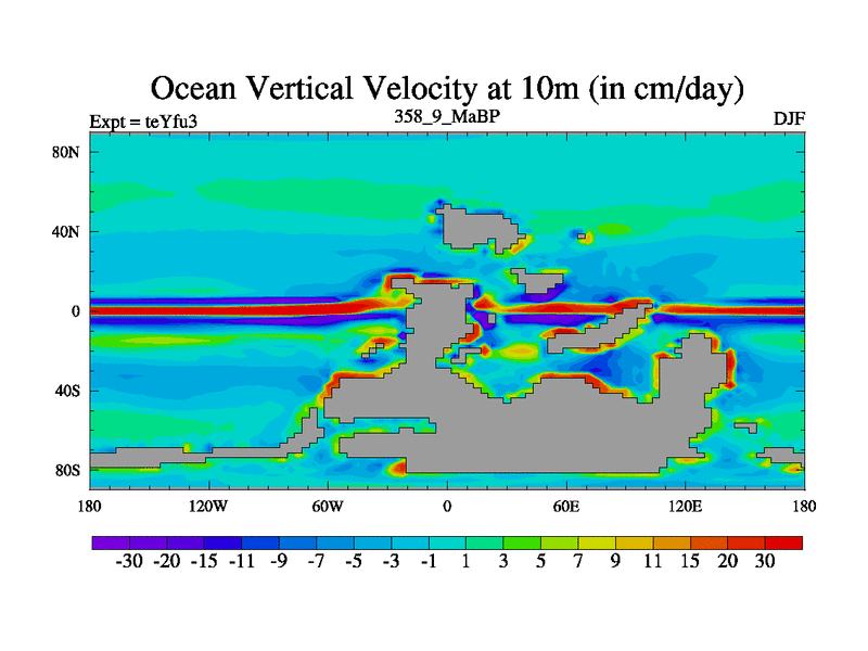 This is the 358.9 Ma simulation using the Scotese palaeogeographies and revised CCN etc. Updated HadCM3L ocean parameters and soil parameters. Also made sure orography gravity wave drag was consistent.
