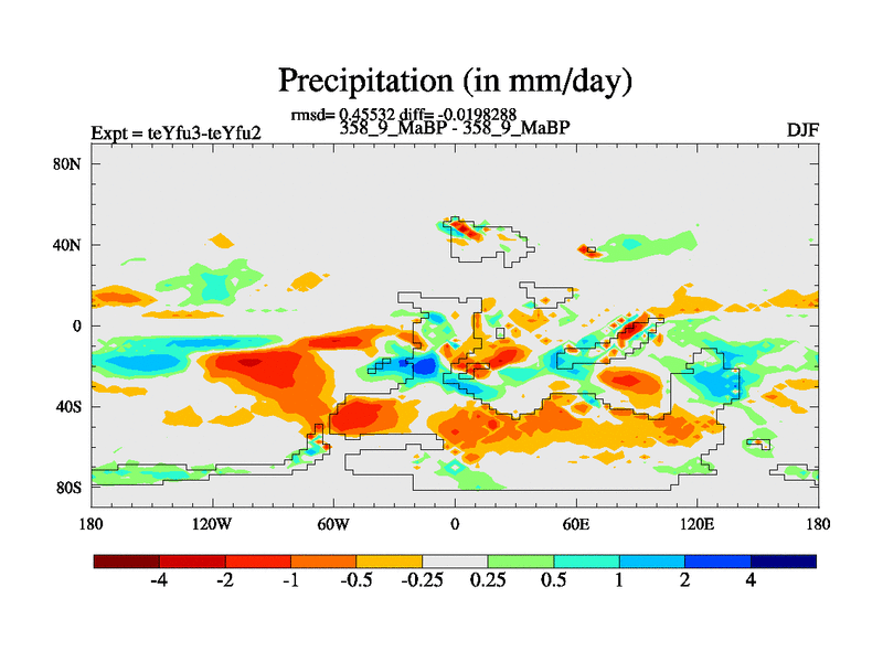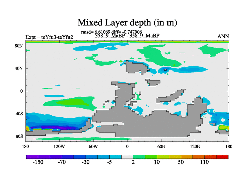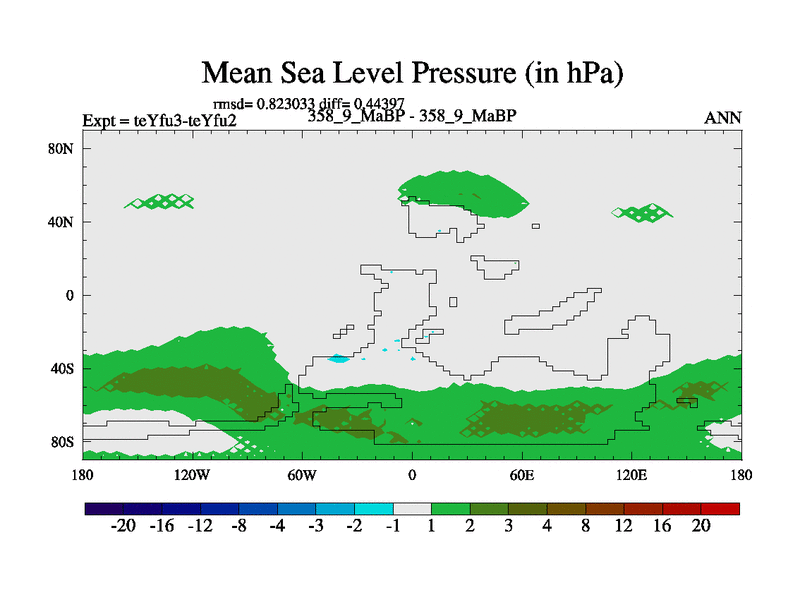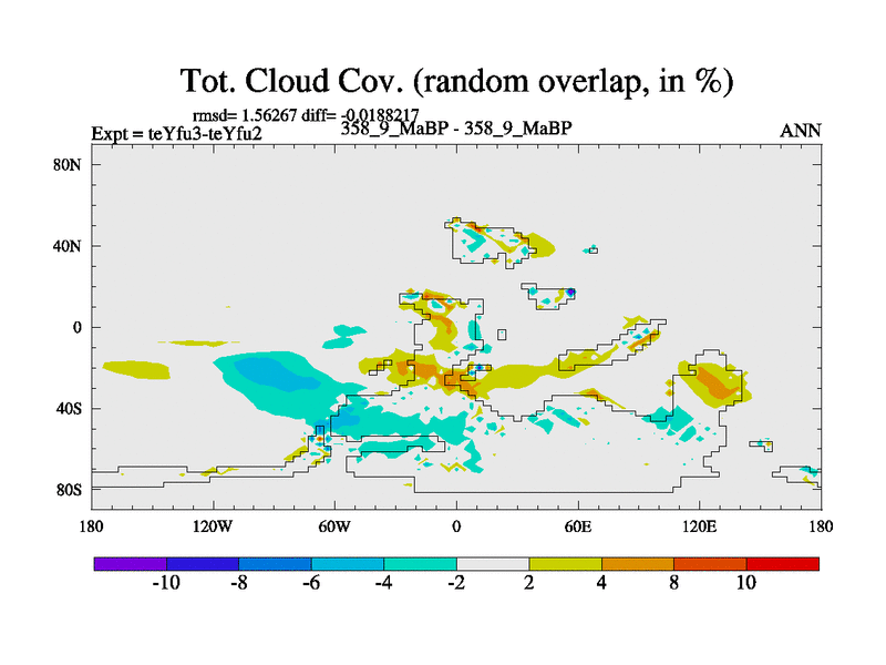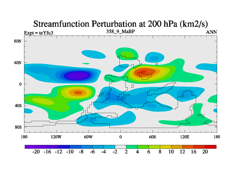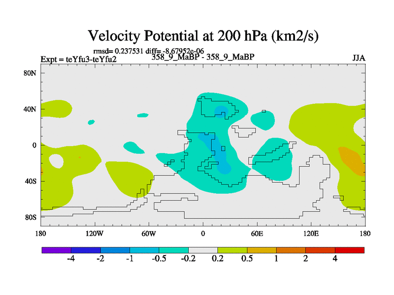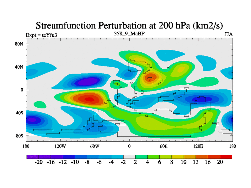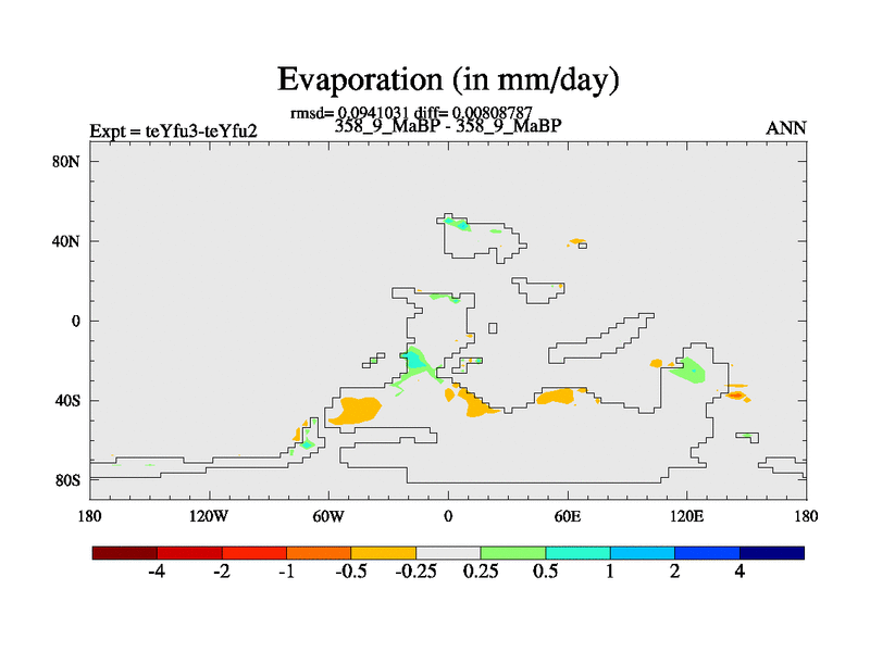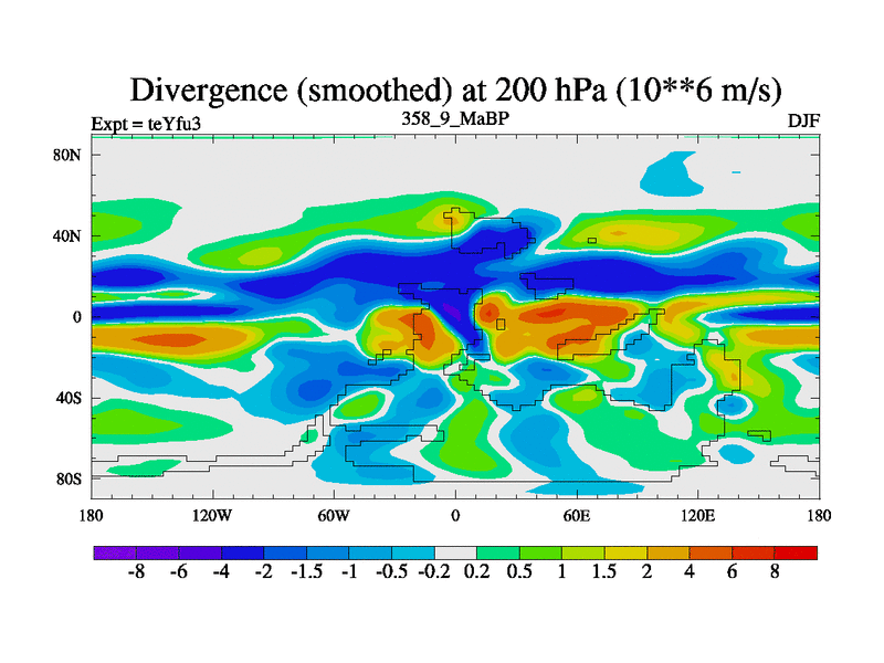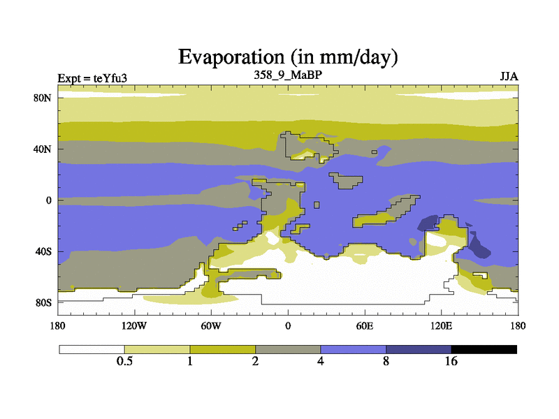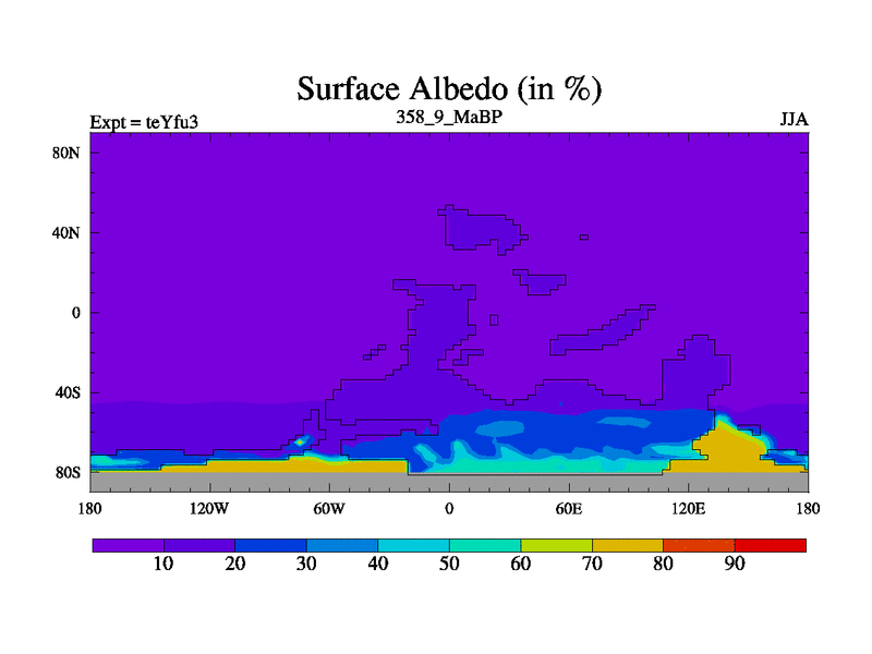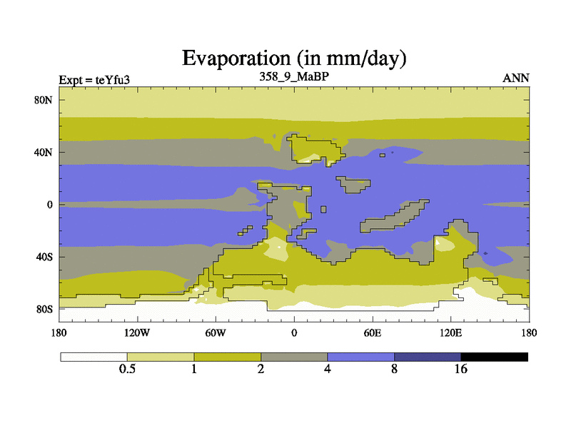 This is the 358.9 Ma simulation using the Scotese palaeogeographies and revised CCN etc. Updated HadCM3L ocean parameters and soil parameters. Also made sure orography gravity wave drag was consistent.
