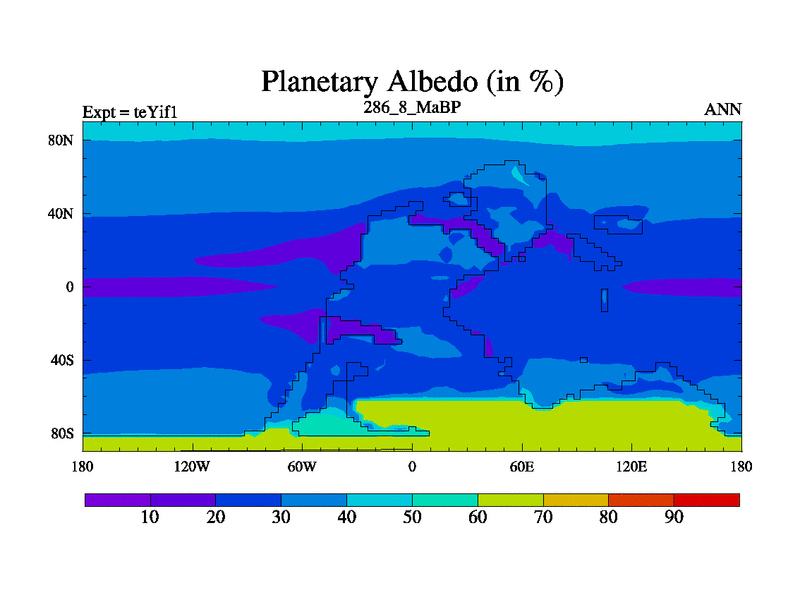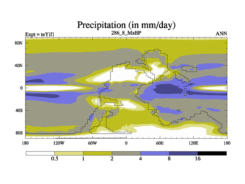 This is the 286.8 Ma simulation using the Scotese palaeogeographies and revised CCN etc. Now includes ocean biogeochemistry