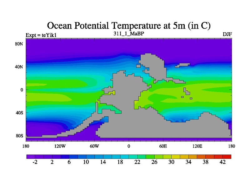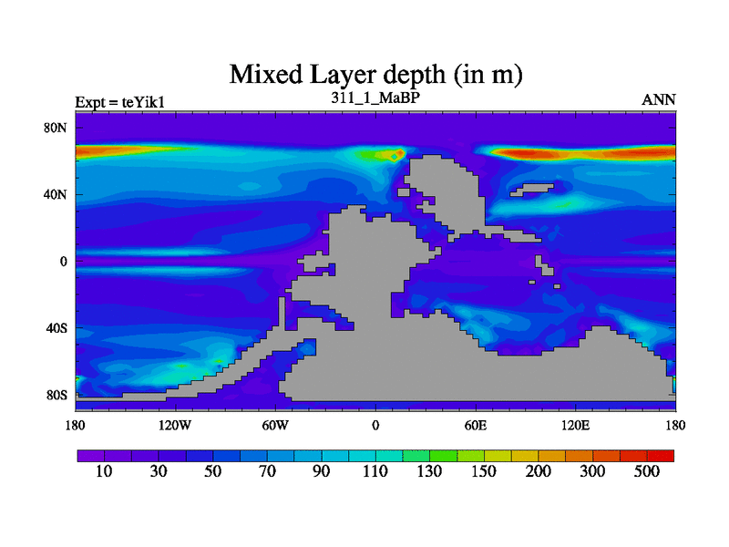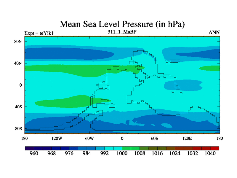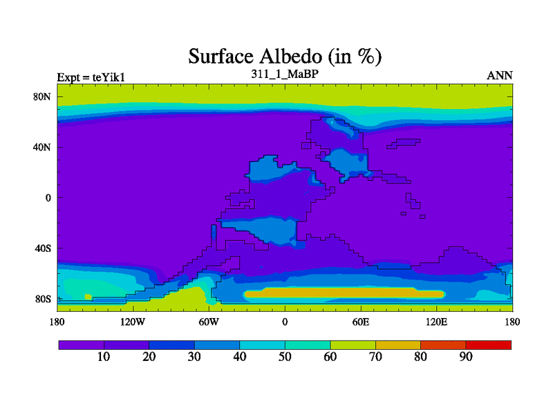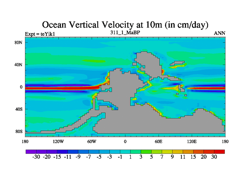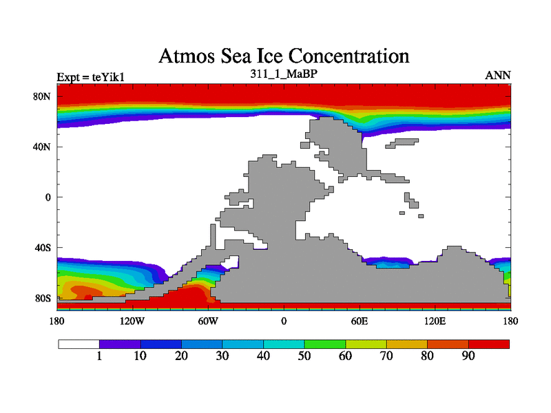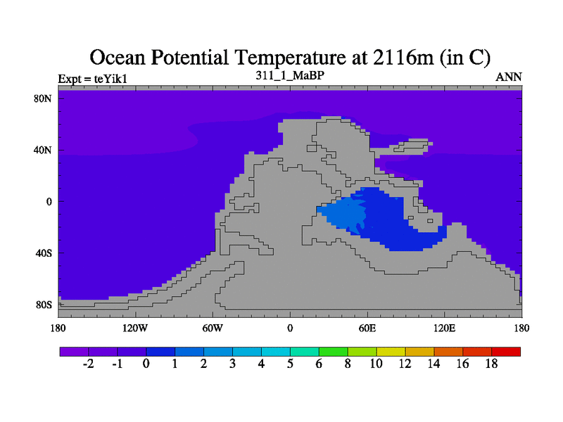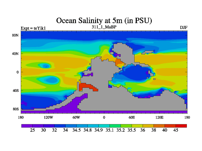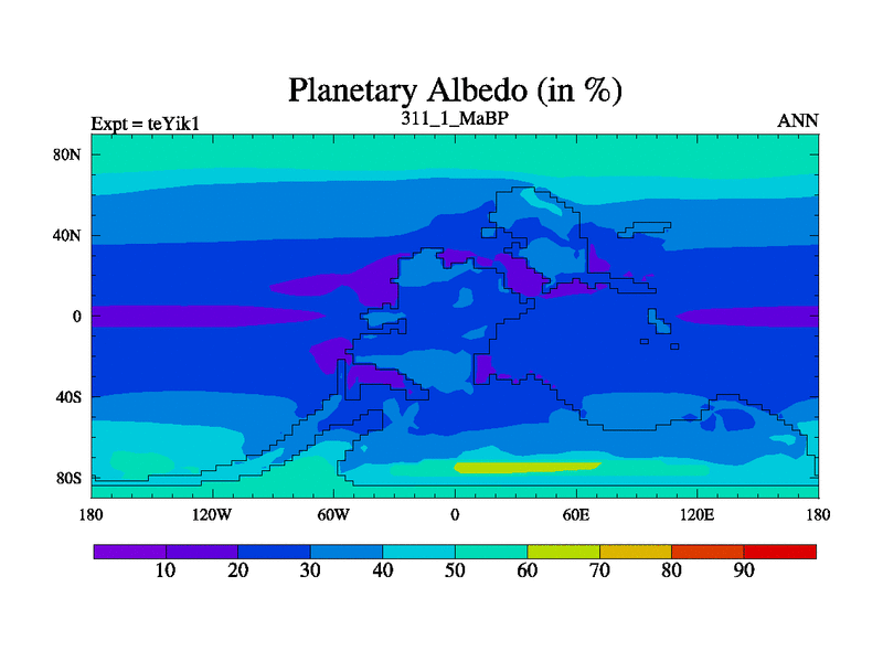This is the 311.1 Ma simulation using the Scotese palaeogeographies and revised CCN etc. Now includes ocean biogeochemistry