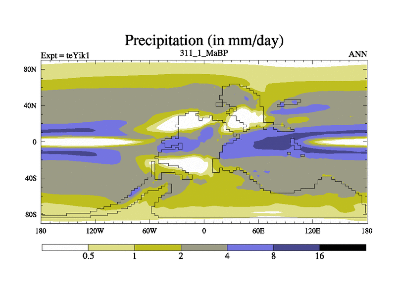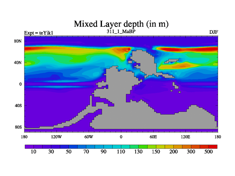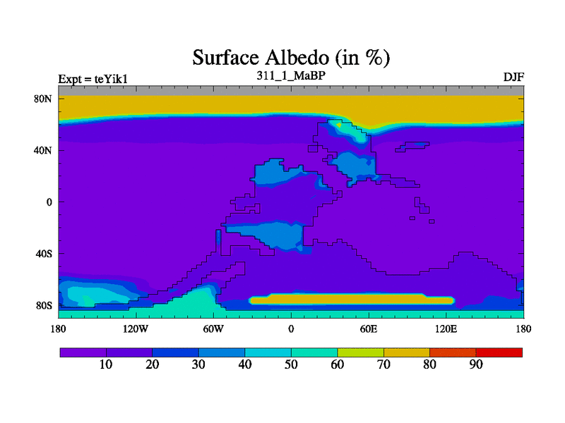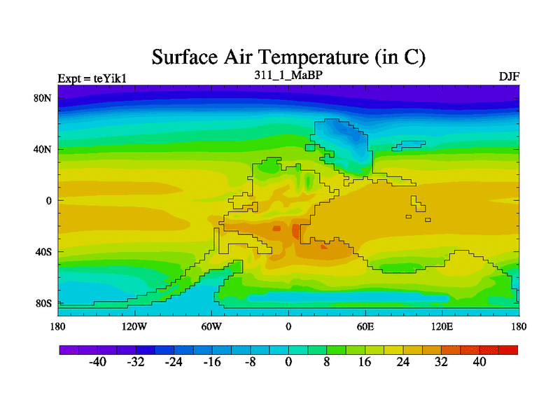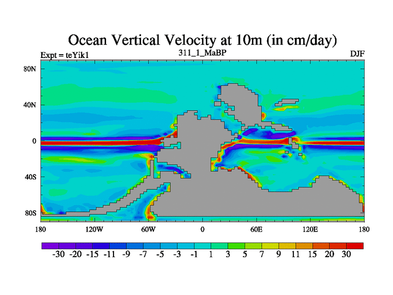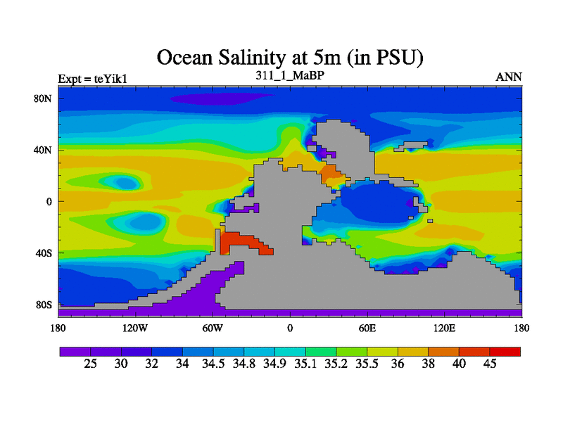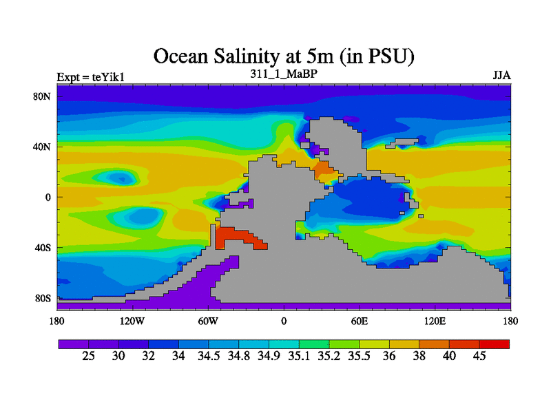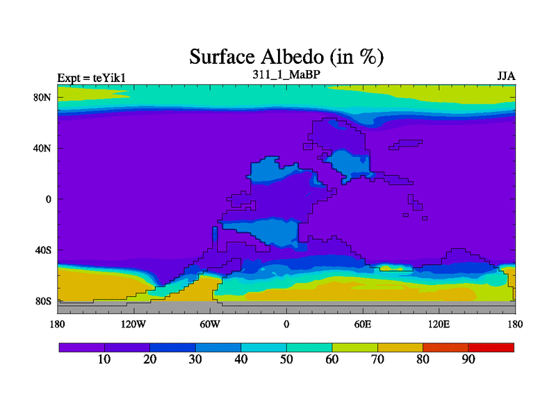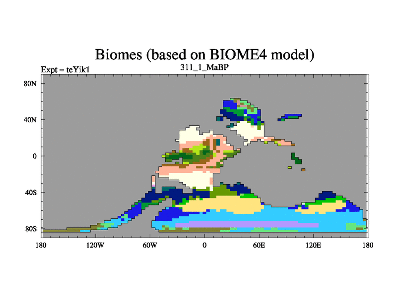 This is the 311.1 Ma simulation using the Scotese palaeogeographies and revised CCN etc. Now includes ocean biogeochemistry