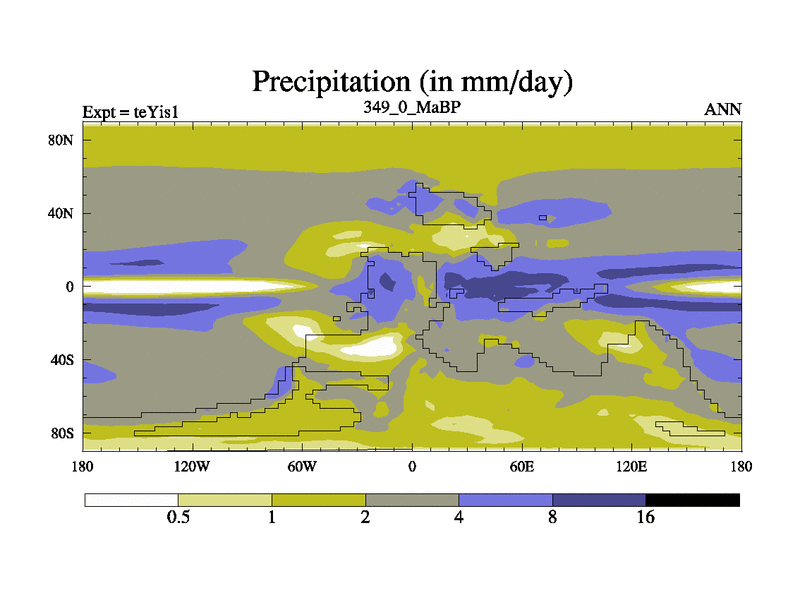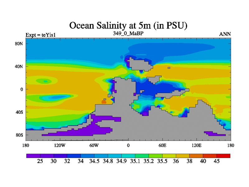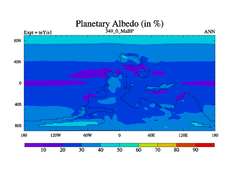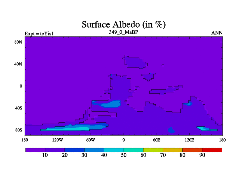 This is the 349.0 Ma simulation using the Scotese palaeogeographies and revised CCN etc. Now includes ocean biogeochemistry