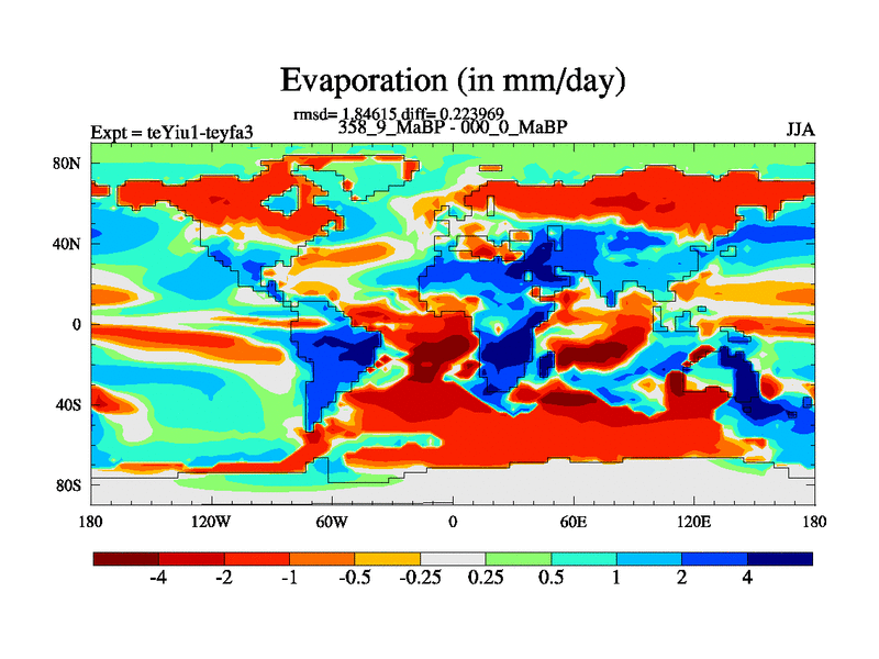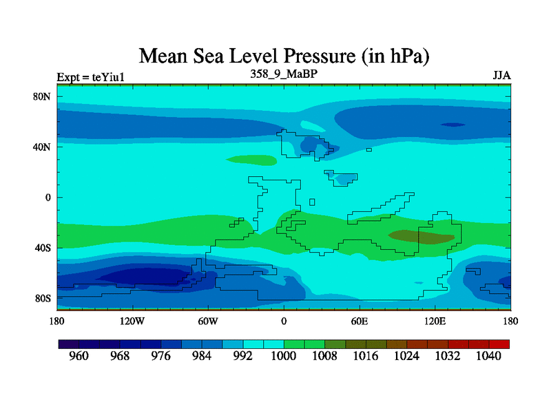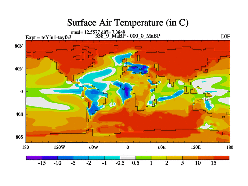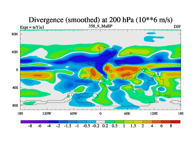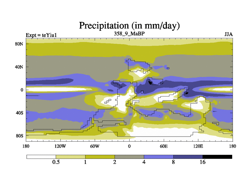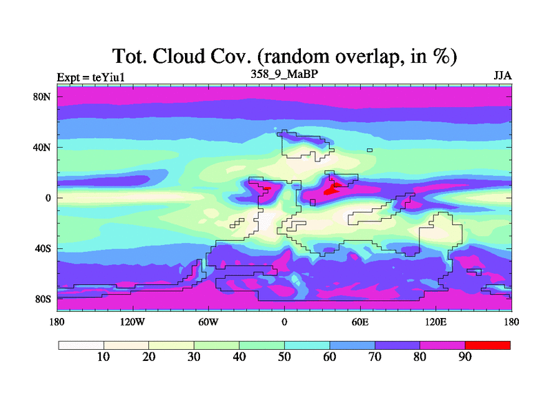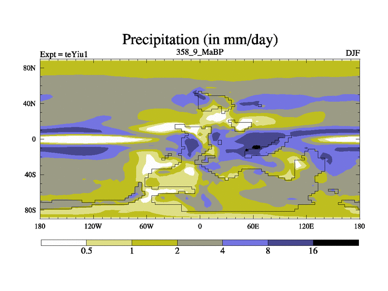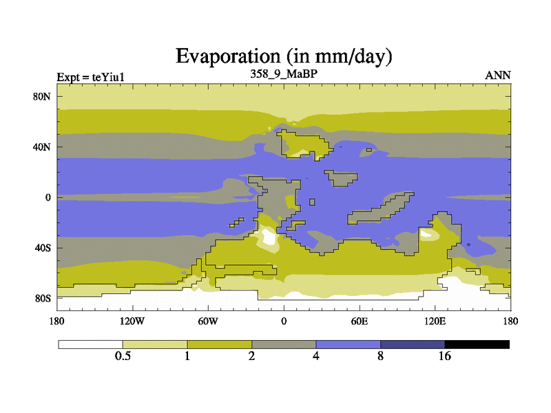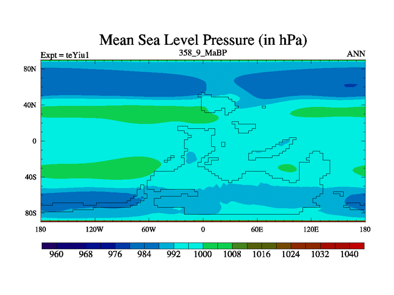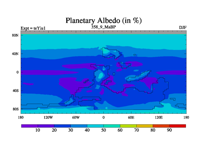 This is the 358.9 Ma simulation using the Scotese palaeogeographies and revised CCN etc. Now includes ocean biogeochemistry