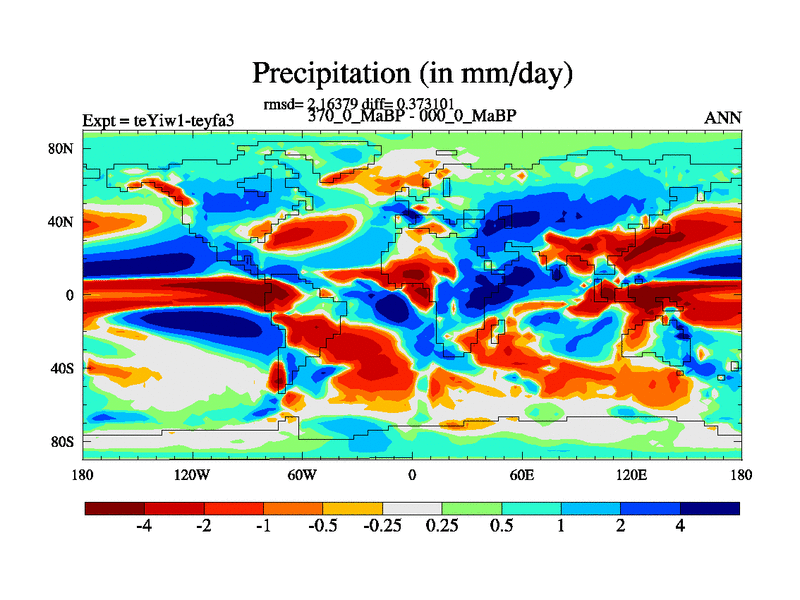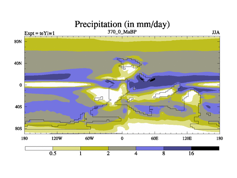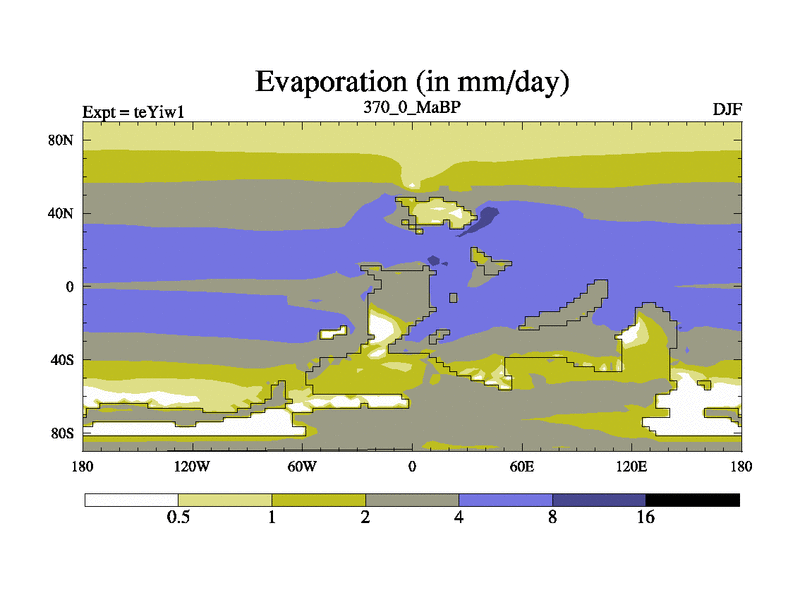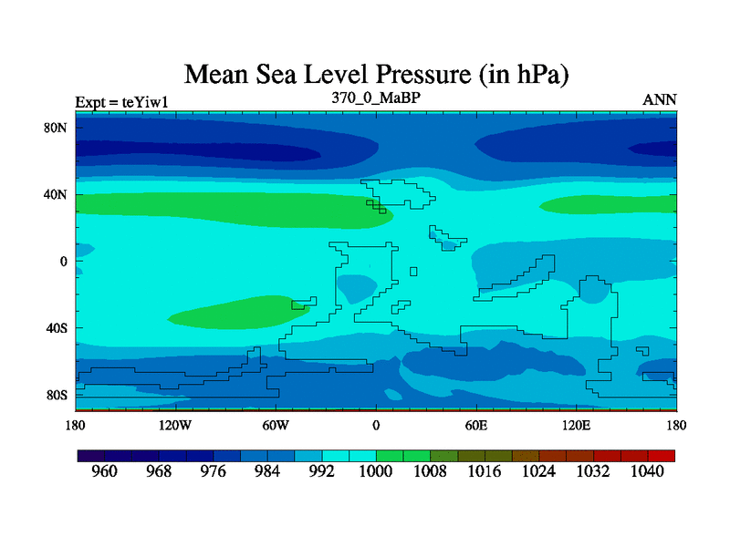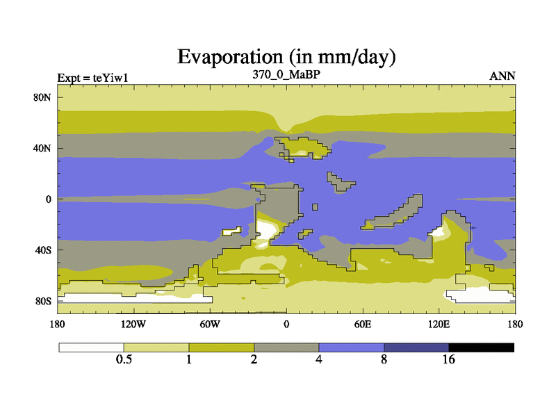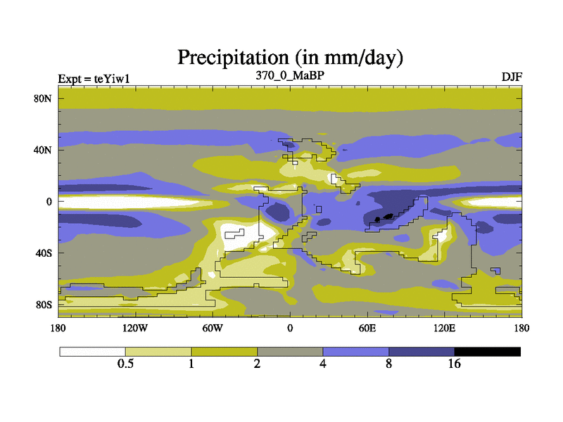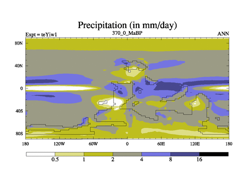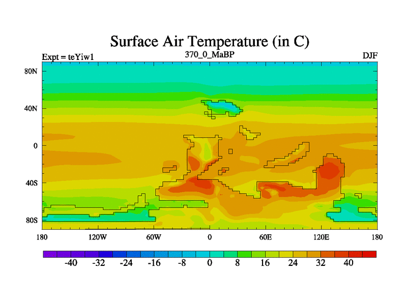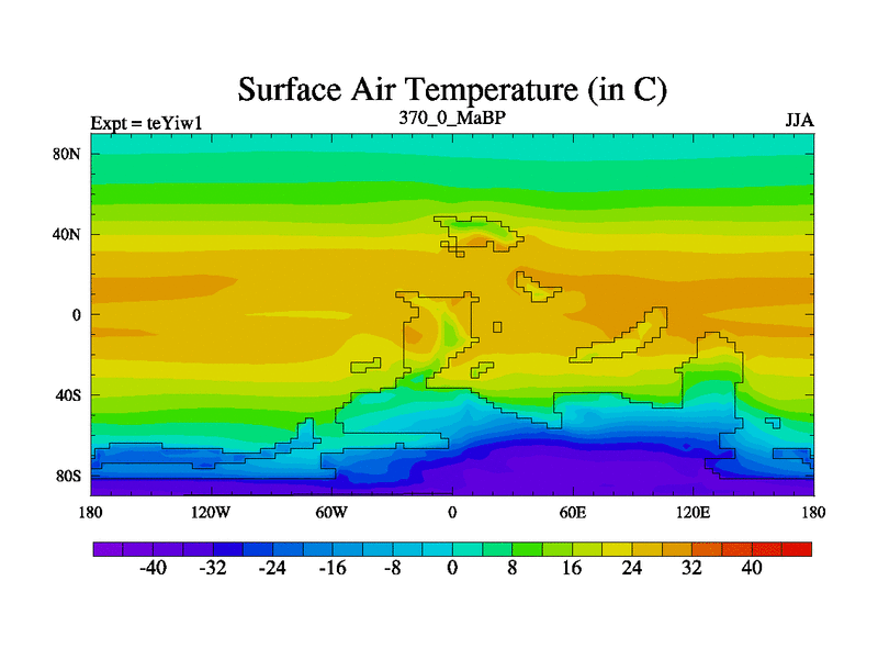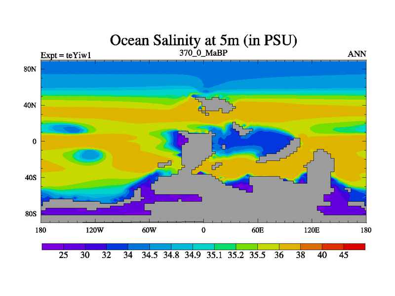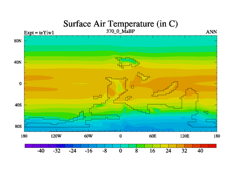 This is the 370.0 Ma simulation using the Scotese palaeogeographies and revised CCN etc. Now includes ocean biogeochemistry