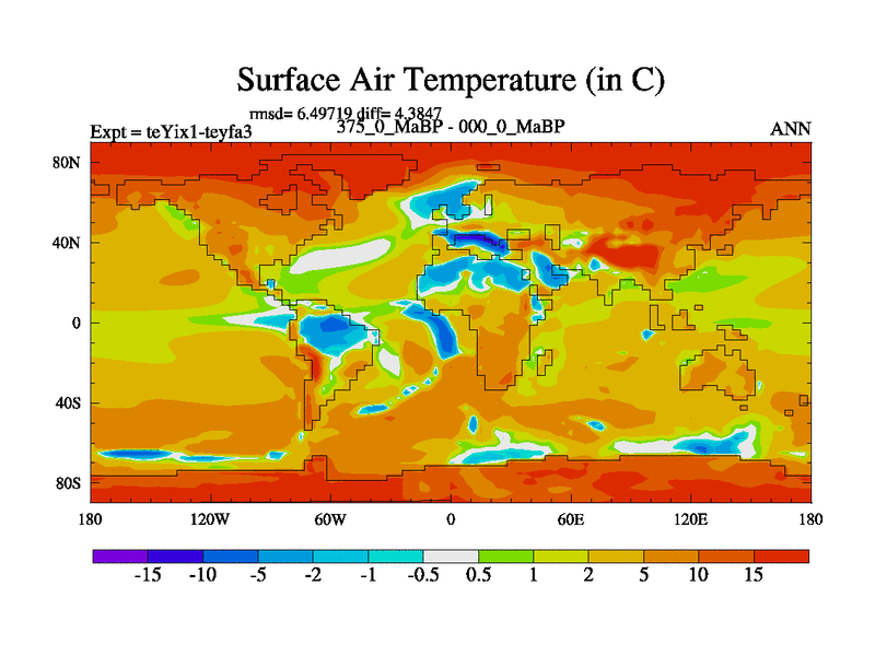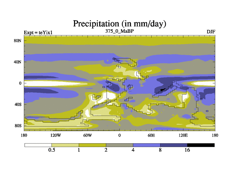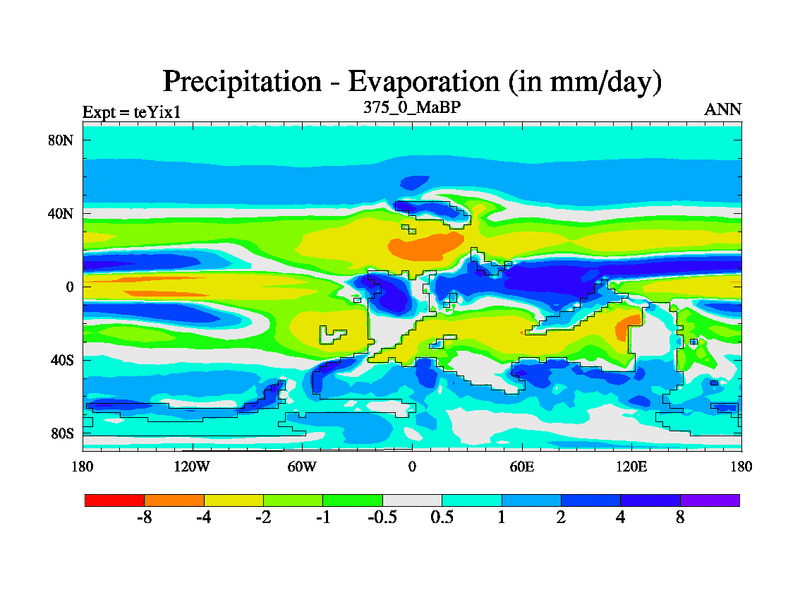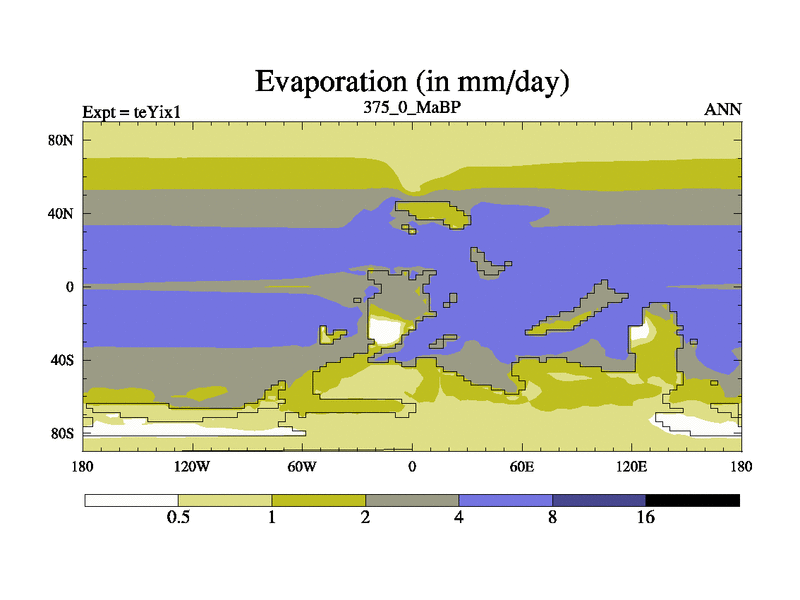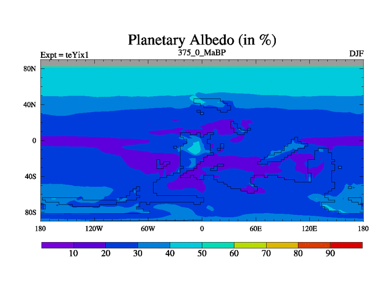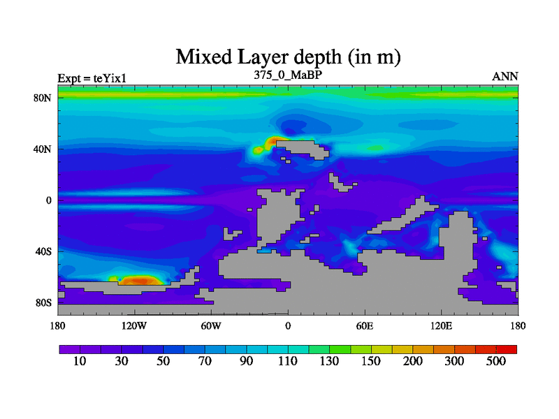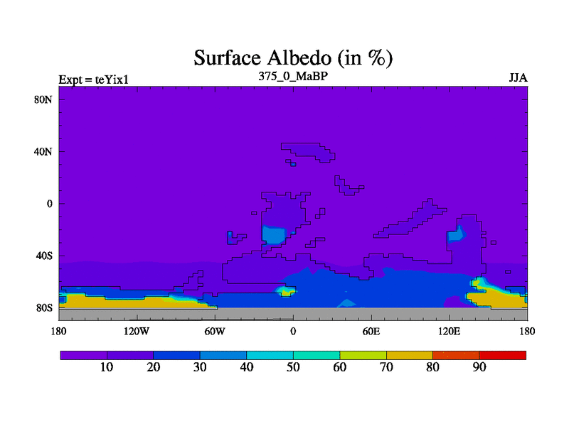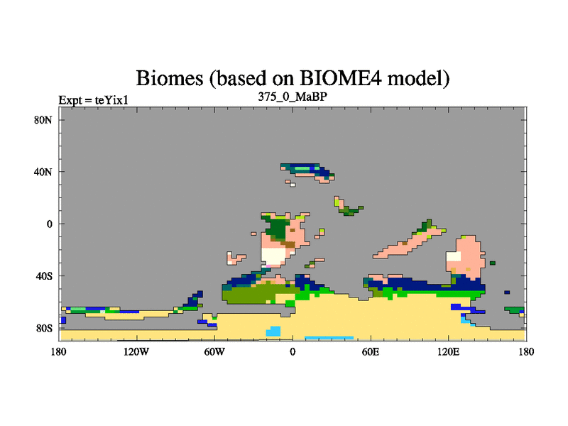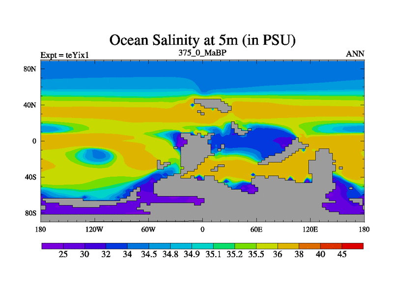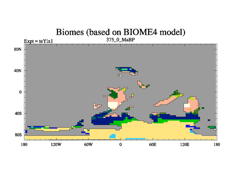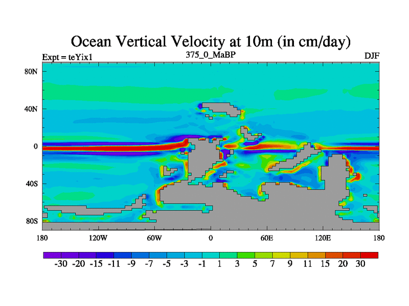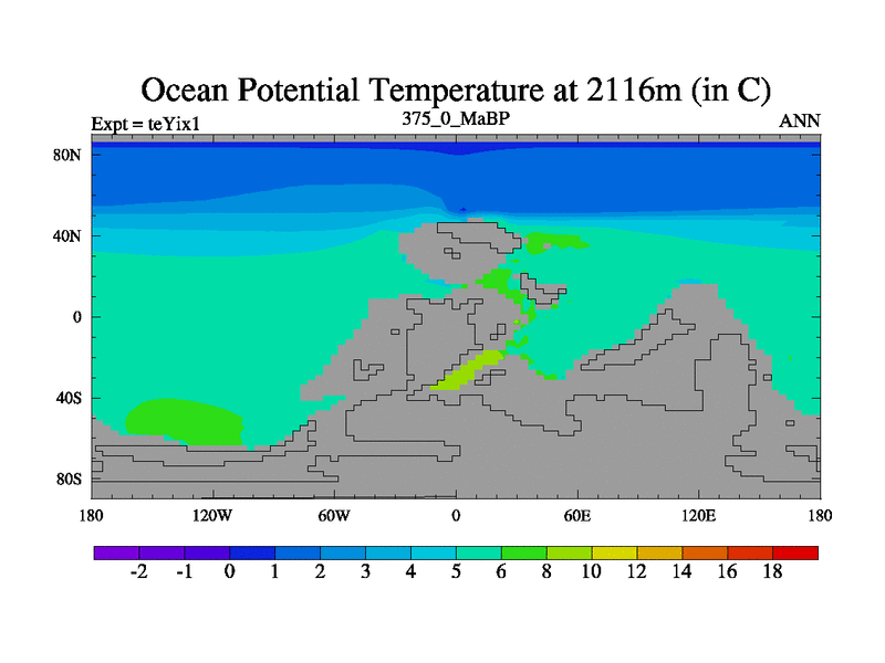 This is the 375.0 Ma simulation using the Scotese palaeogeographies and revised CCN etc. Now includes ocean biogeochemistry