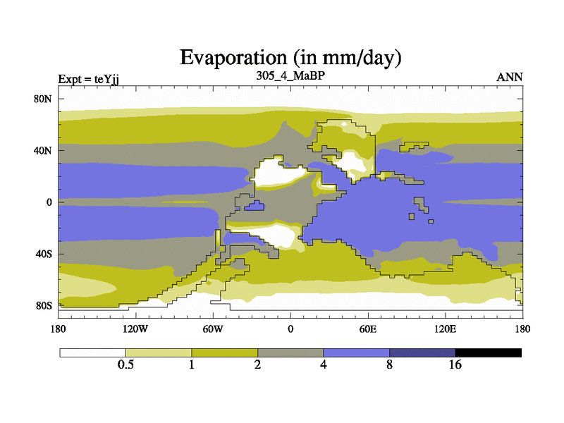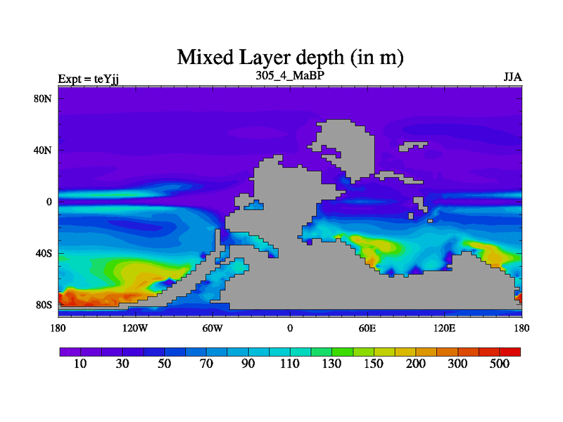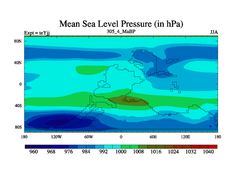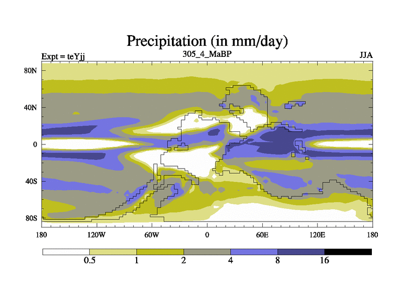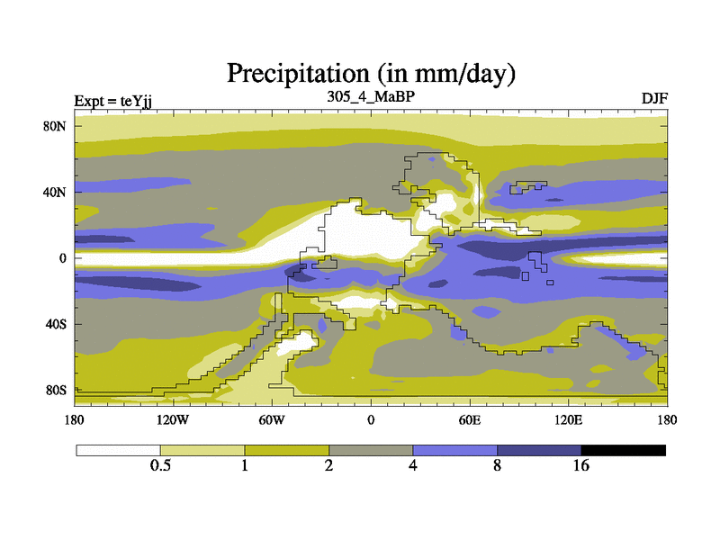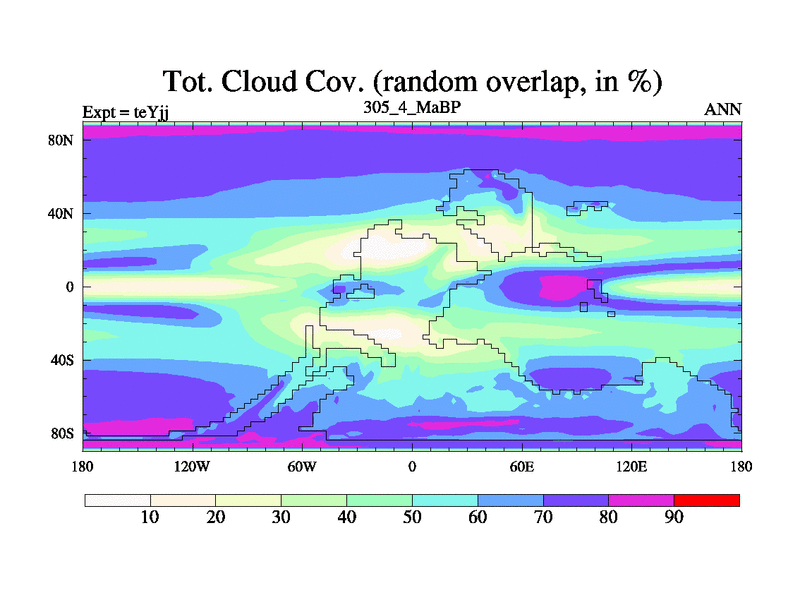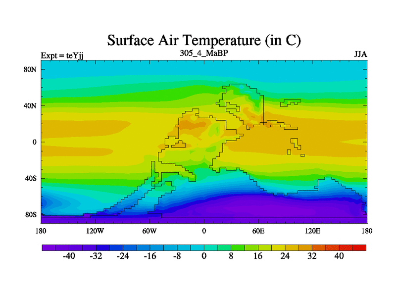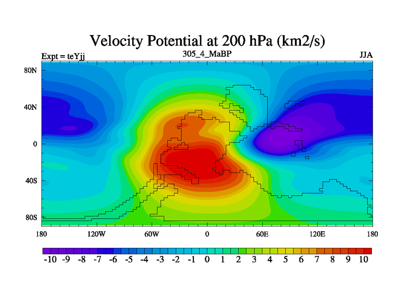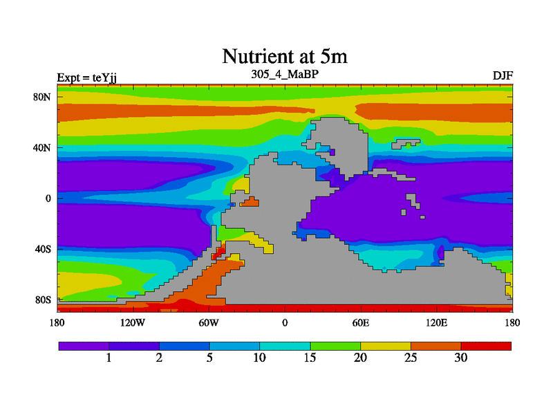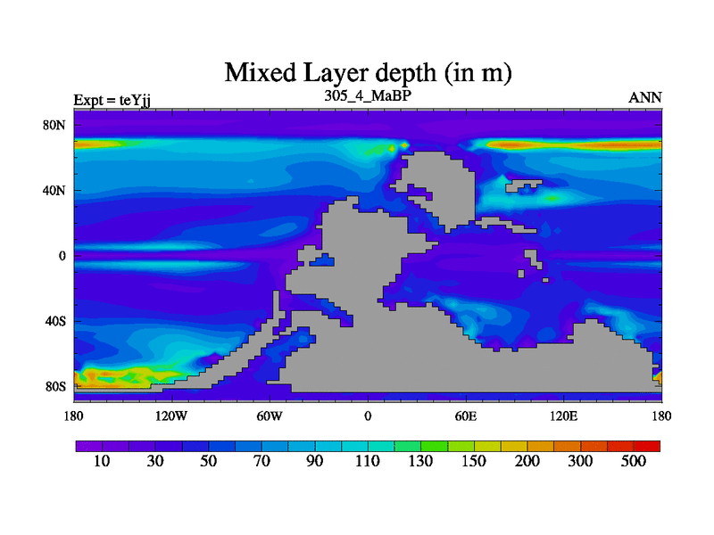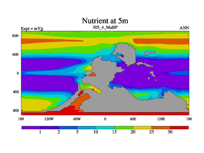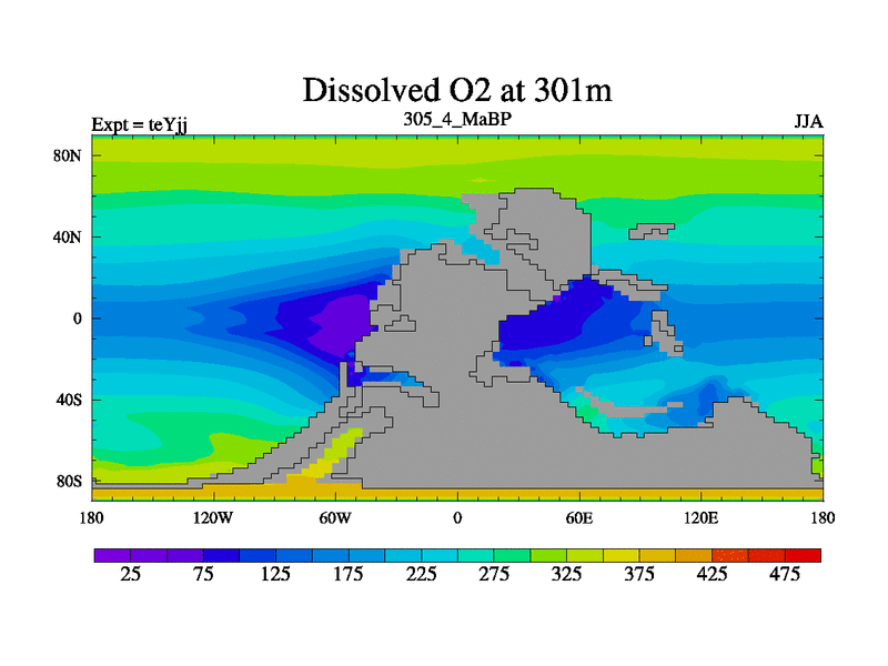 This is the 305.4 Ma simulation using the Scotese palaeogeographies and revised CCN etc. As teyfa3 but corrected orography problem over Antartartica. Now includes ocean biogeochemistry