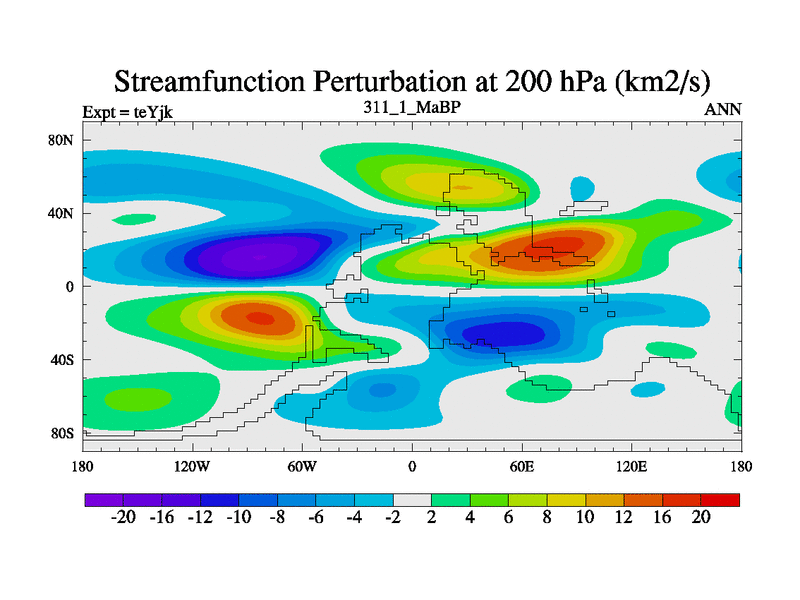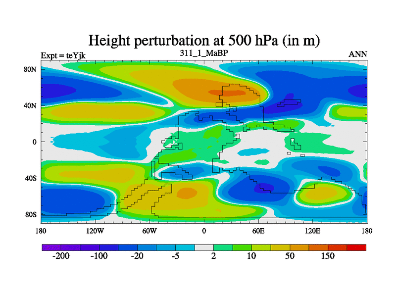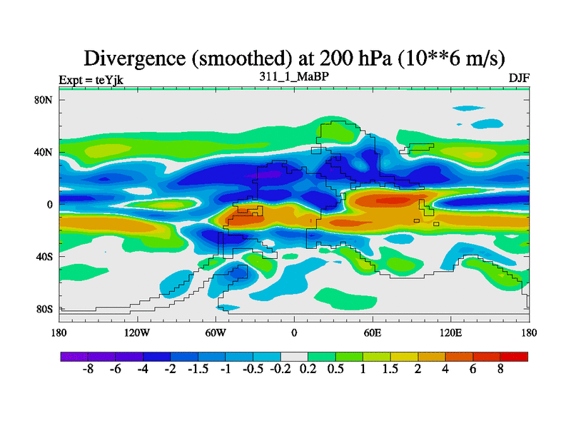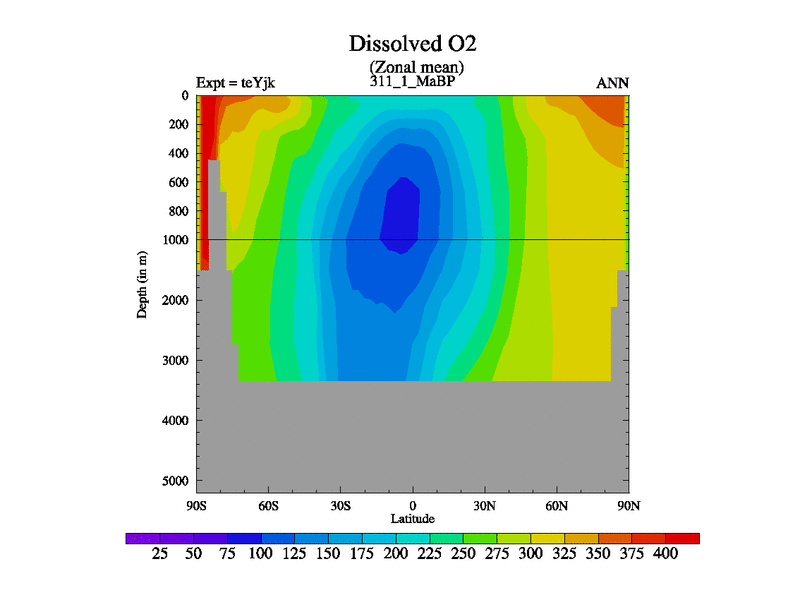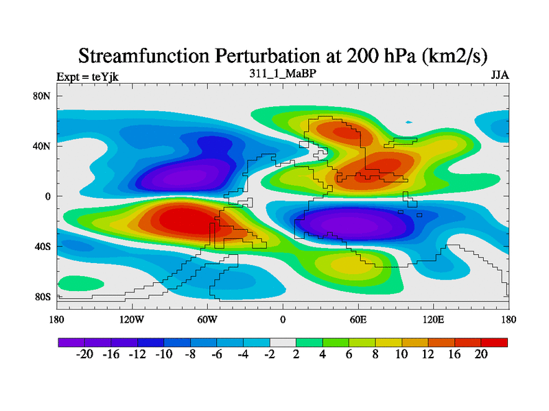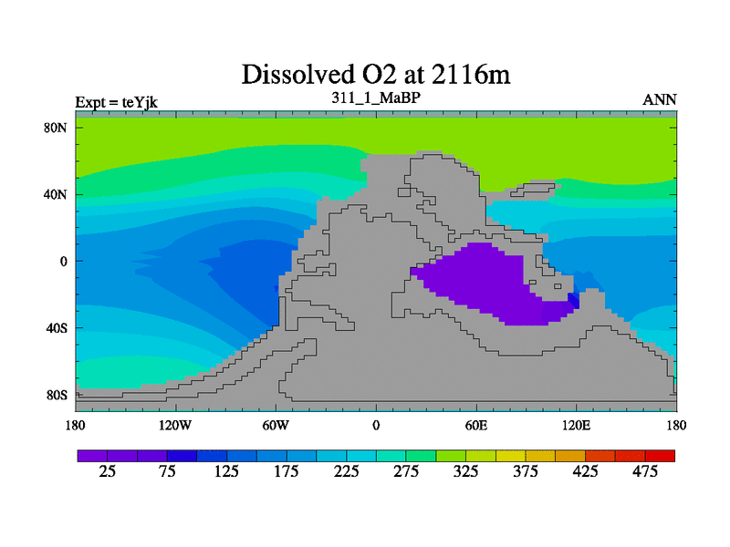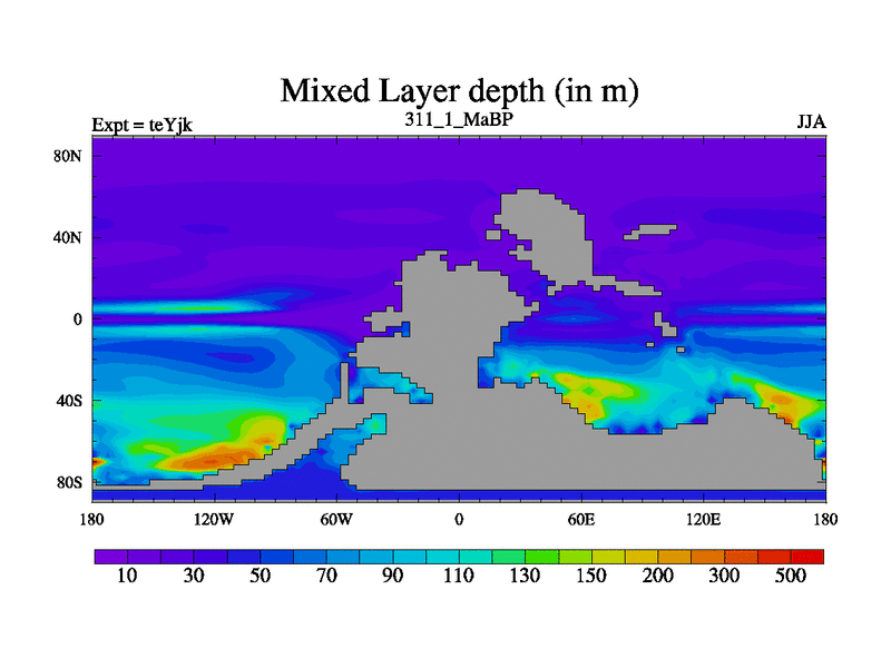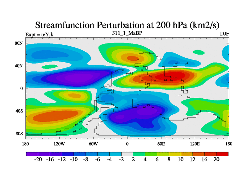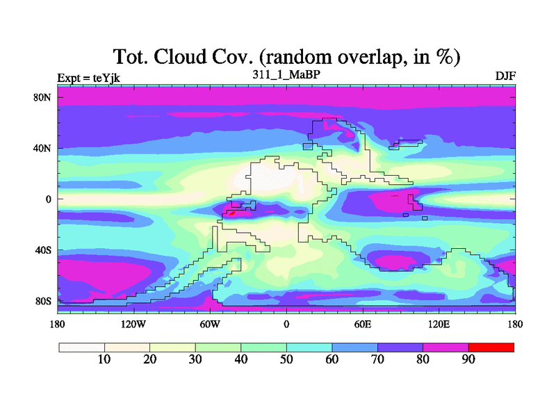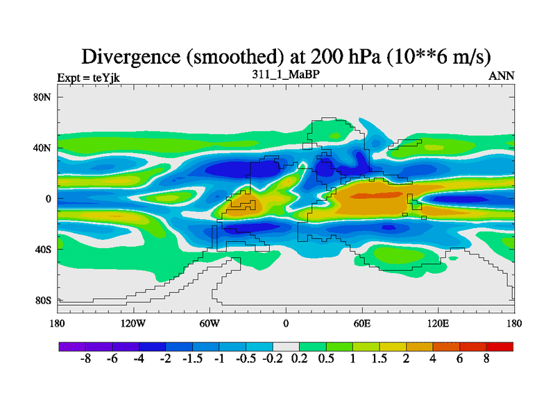 This is the 311.1 Ma simulation using the Scotese palaeogeographies and revised CCN etc. As teyfa3 but corrected orography problem over Antartartica. Now includes ocean biogeochemistry