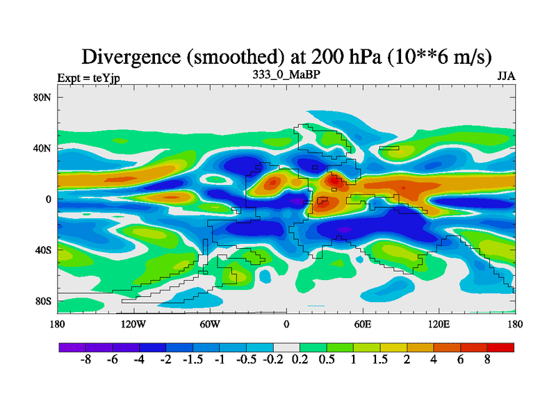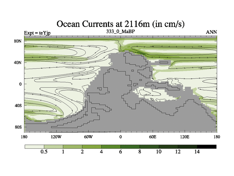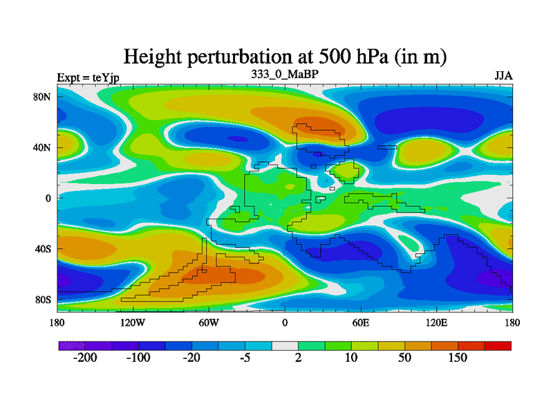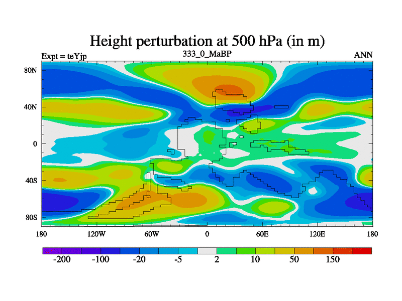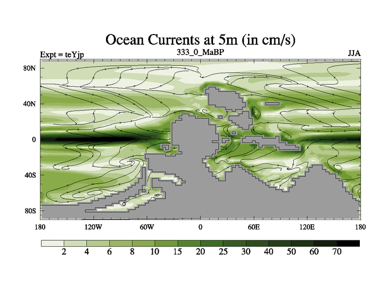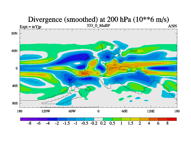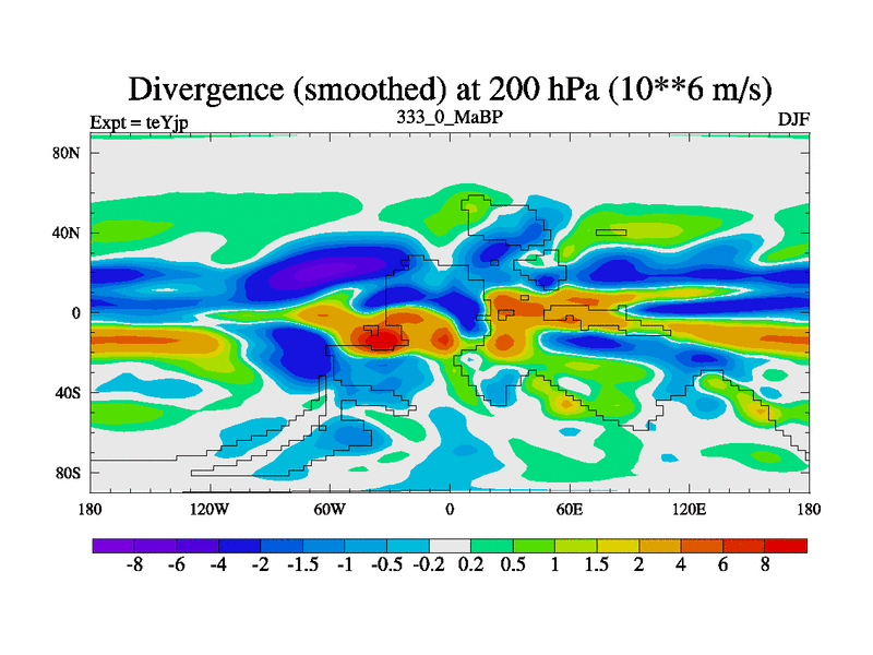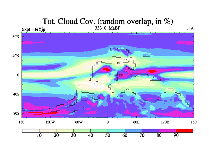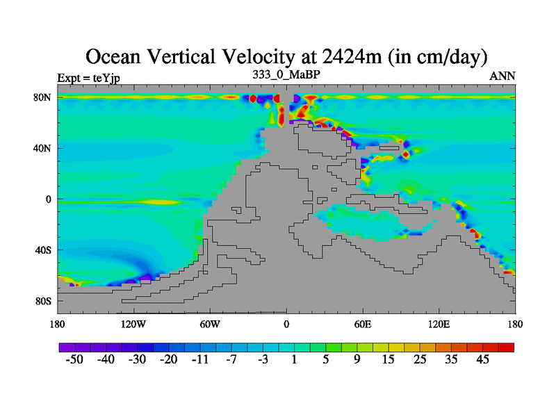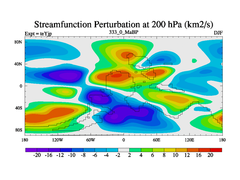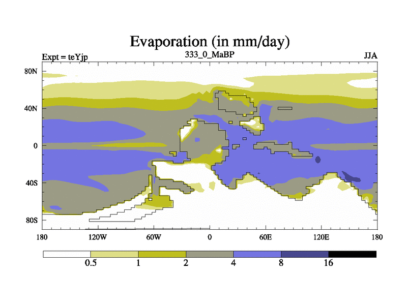 This is the 333.0 Ma simulation using the Scotese palaeogeographies and revised CCN etc. As teyfa3 but corrected orography problem over Antartartica. Now includes ocean biogeochemistry