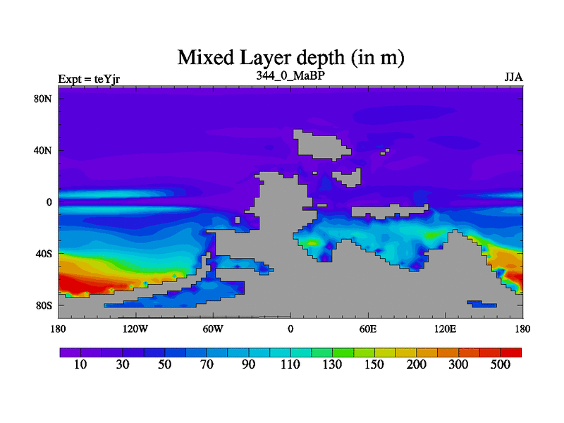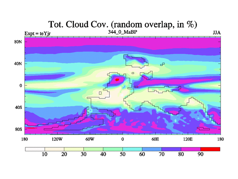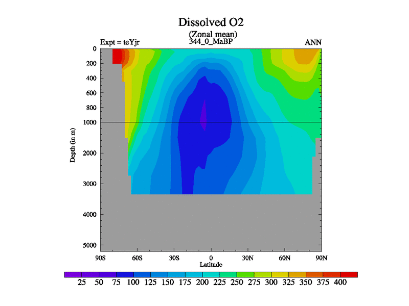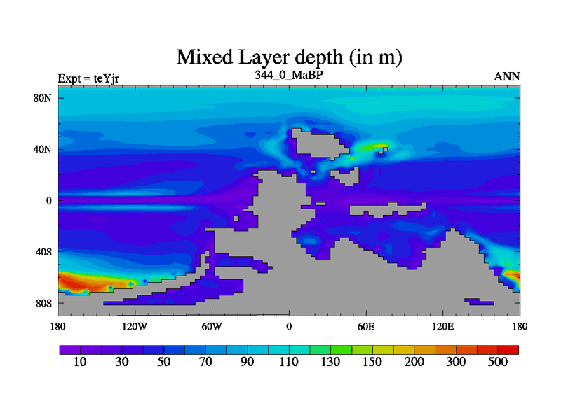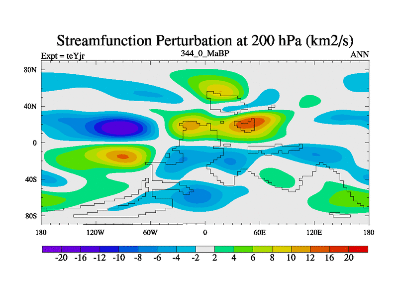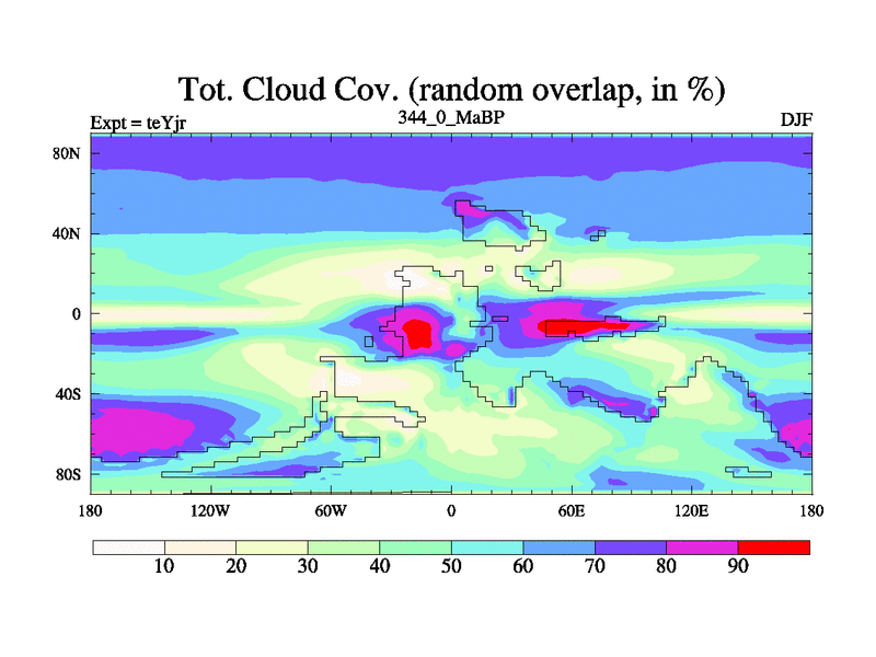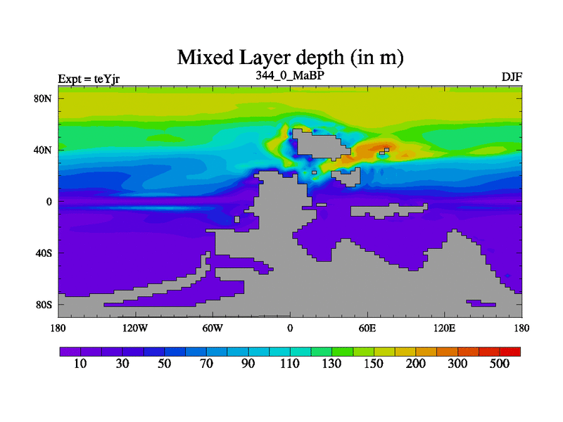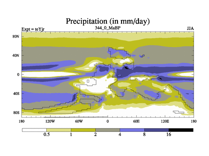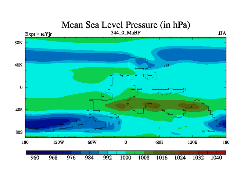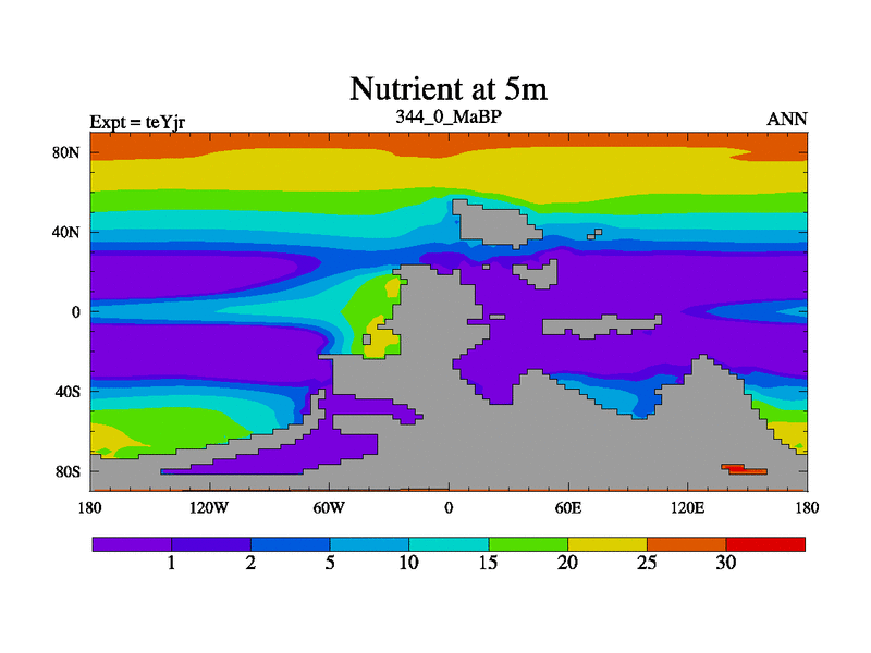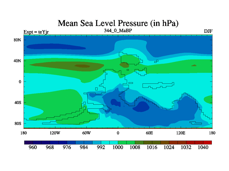 This is the 344.0 Ma simulation using the Scotese palaeogeographies and revised CCN etc. As teyfa3 but corrected orography problem over Antartartica. Now includes ocean biogeochemistry