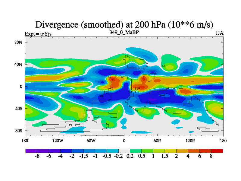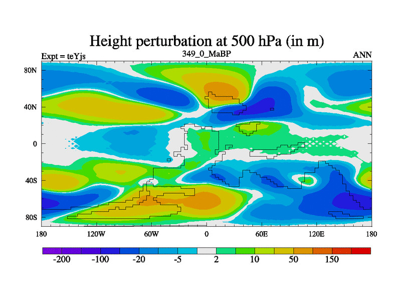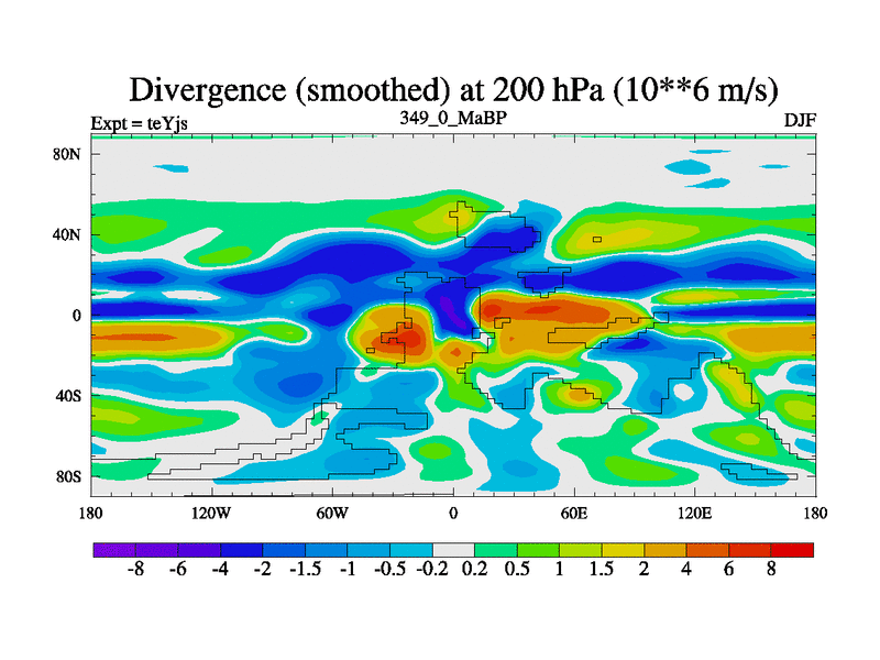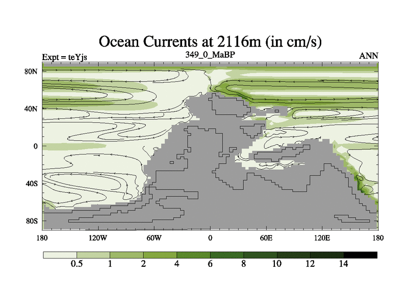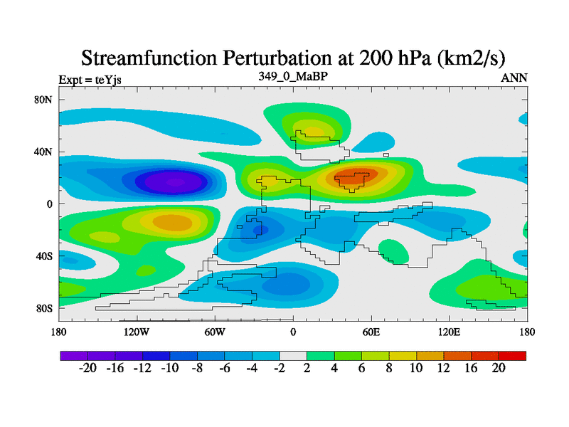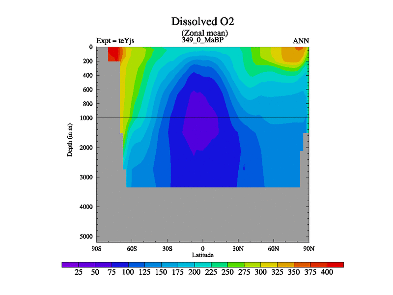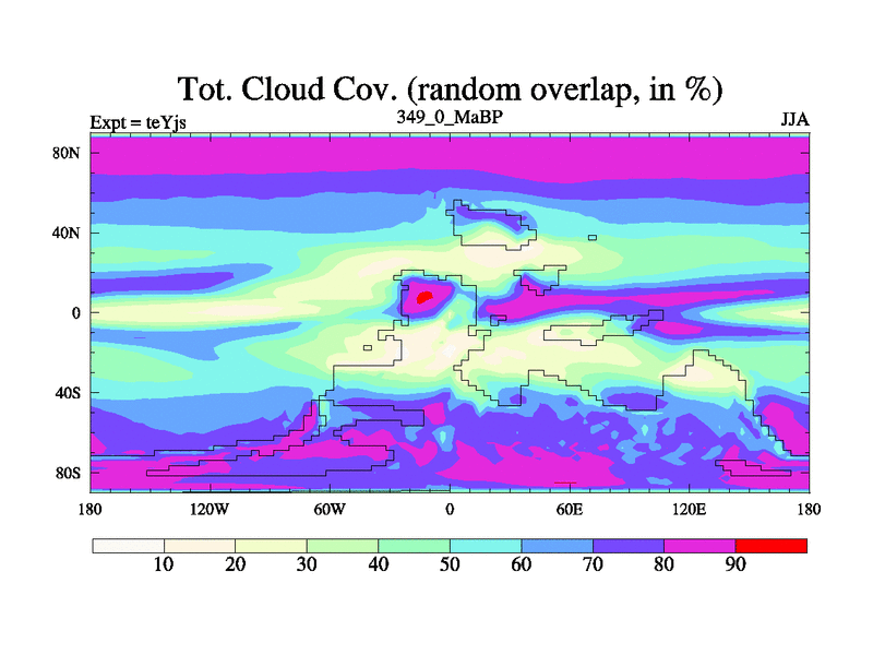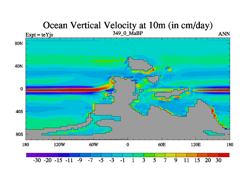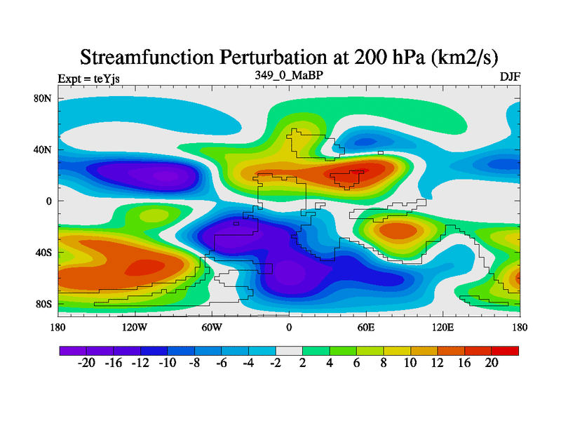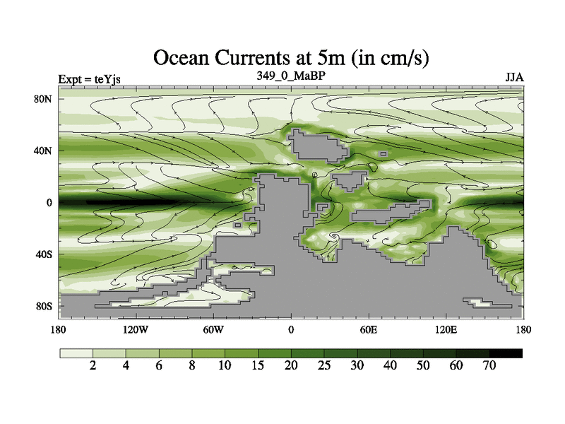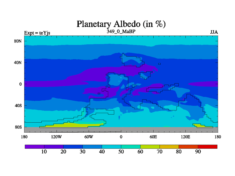 This is the 349.0 Ma simulation using the Scotese palaeogeographies and revised CCN etc. As teyfa3 but corrected orography problem over Antartartica. Now includes ocean biogeochemistry