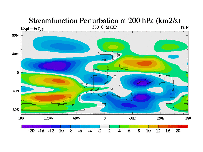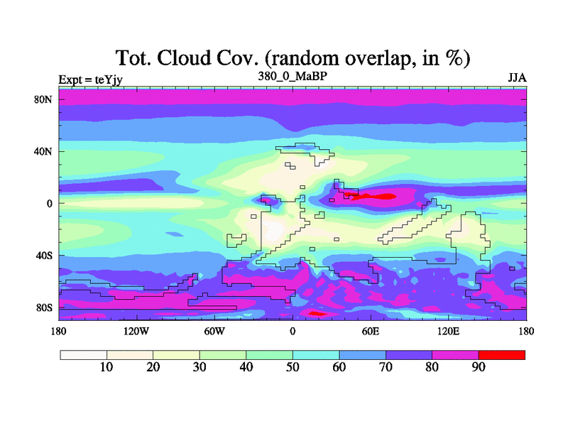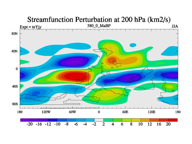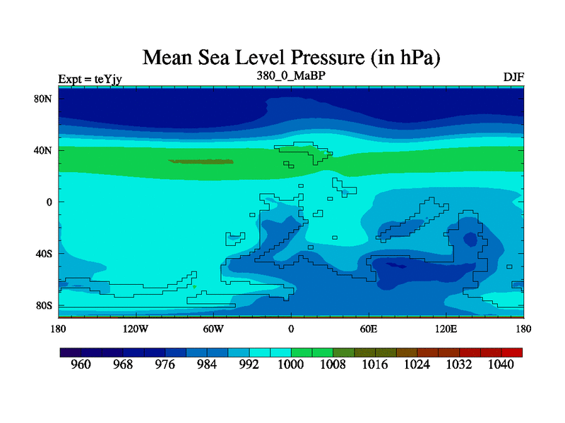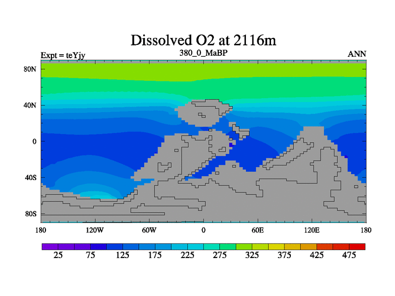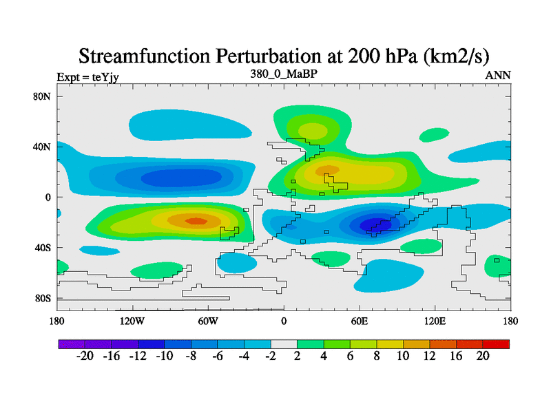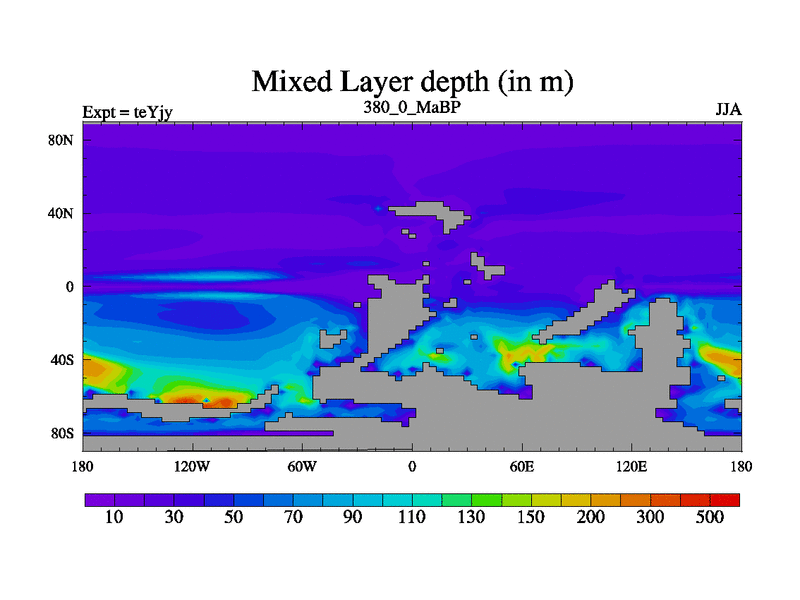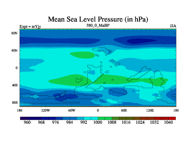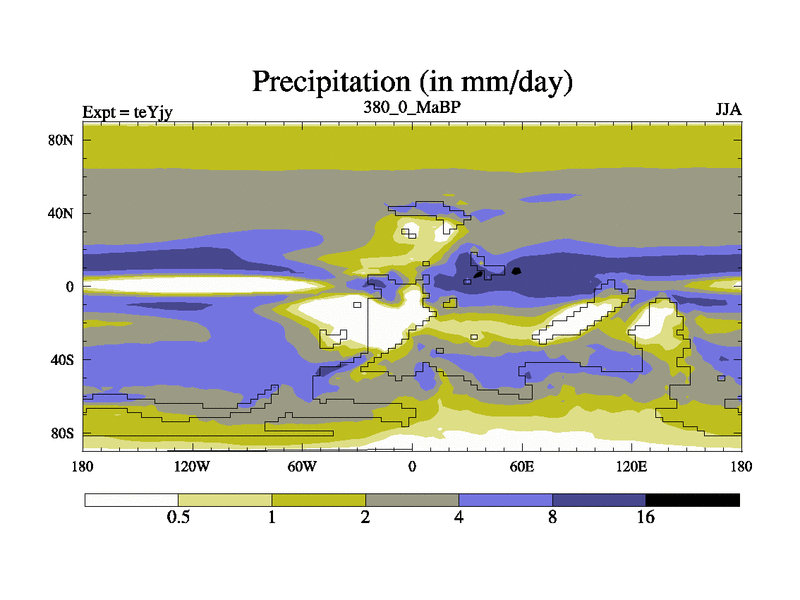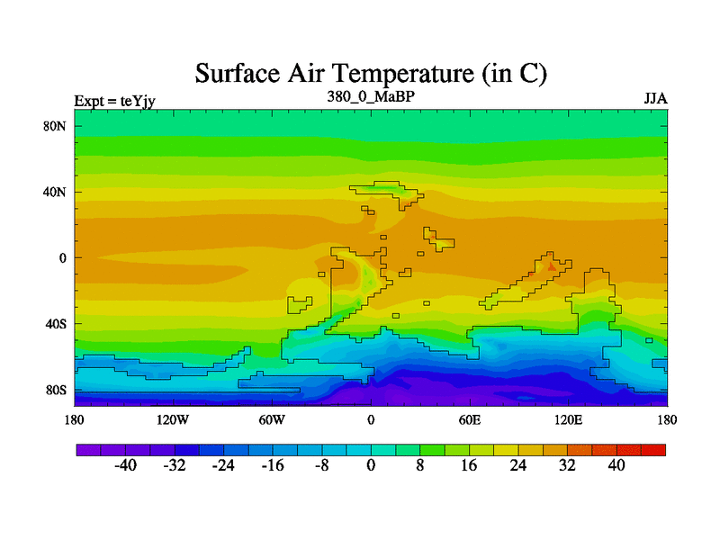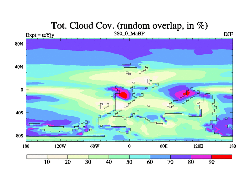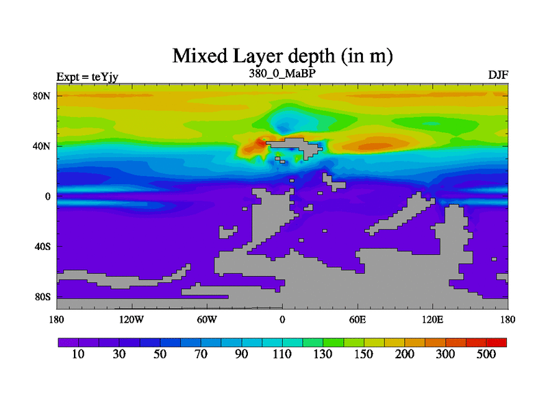 This is the 380.0 Ma simulation using the Scotese palaeogeographies and revised CCN etc. As teyfa3 but corrected orography problem over Antartartica. Now includes ocean biogeochemistry